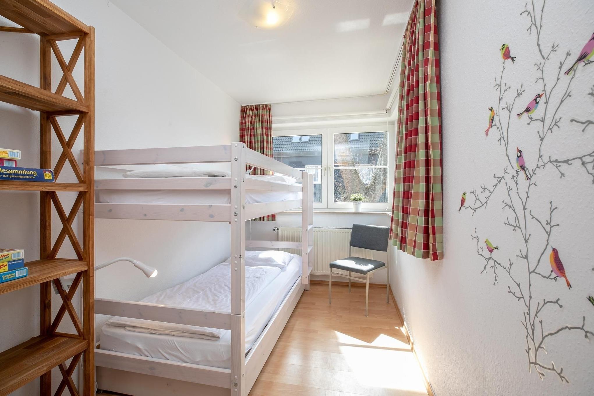 Schlafzimmer 2: 1 Etagenbett (2x 90x200 cm), Verdunkelungsmöglichkeit (Rollos, Vorhänge).