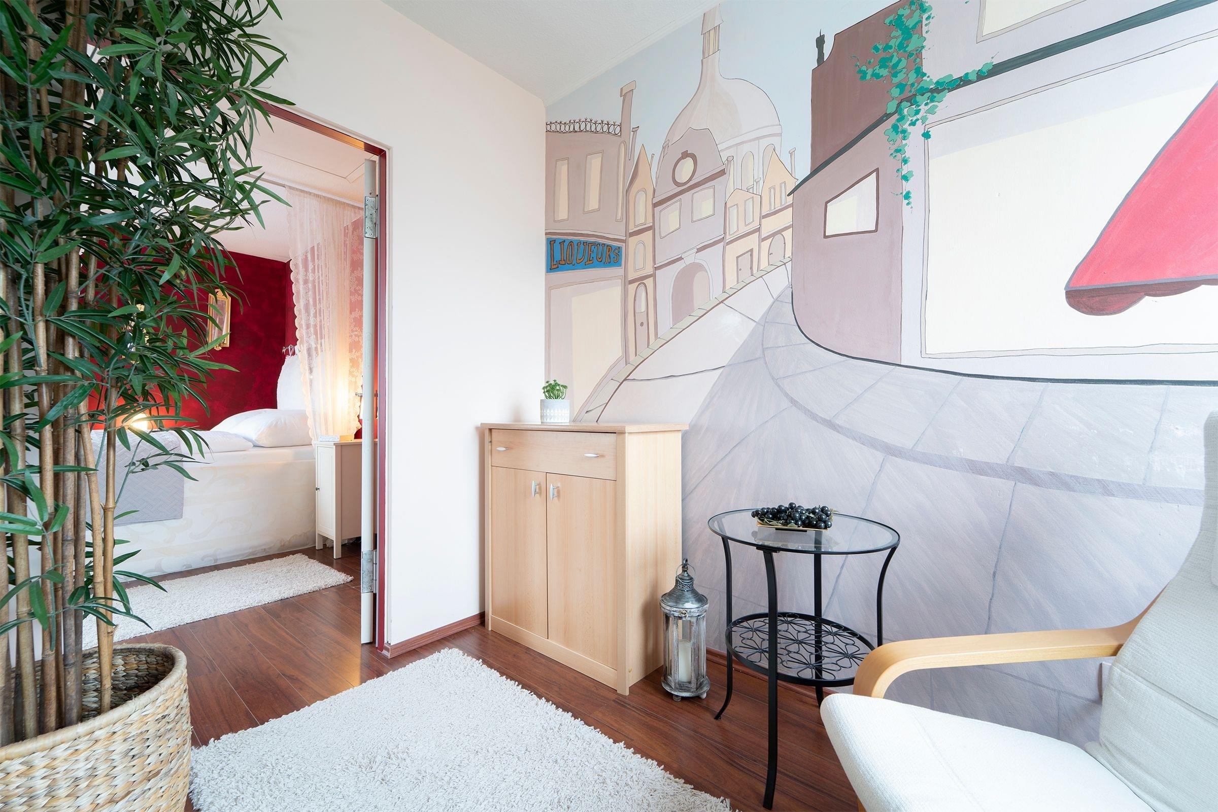 Sollten Sie zwischendurch etwas reinigen müssen, kein Problem! Eine gemeinschaftlich genutzte Waschmaschine sowie ein Trockner stehen Ihnen im Keller des Hauses gegen Gebühr zur Verfügung. Genießen Sie die mobile Freiheit mit kostenlosem W-LAN.