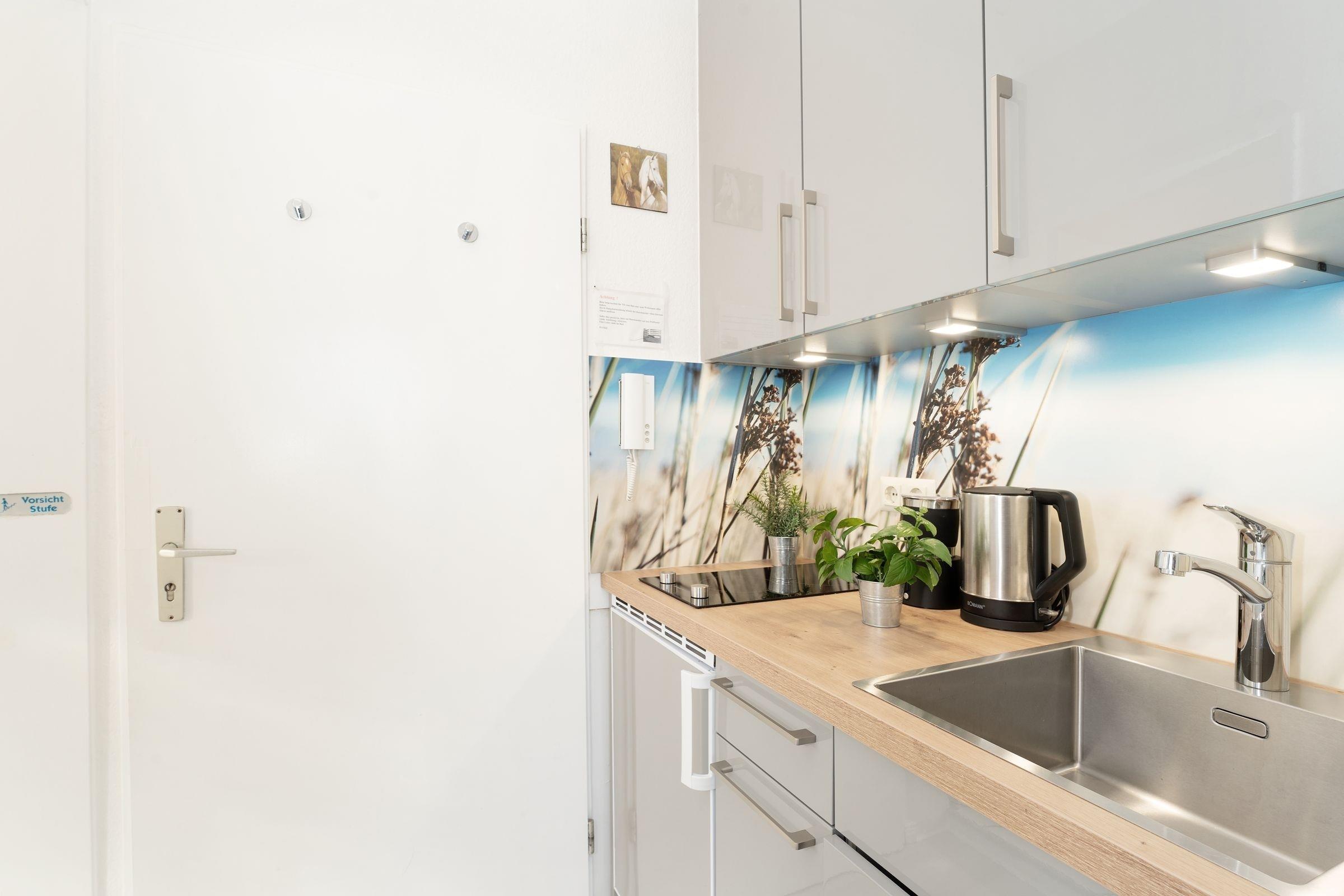 Herzlich willkommen in Steffis Vogelnest! Nach Betreten der Ferienwohnung finden Sie sich direkt in der kleinen Küche wieder, ausgestattet mit Espresso- und Milchaufschäummaschine sowie Kühlschrank mit Gefrierfach, Herd, Kaffeemaschine und Wasserkocher. Es erwartet Sie daraufhin ein modernes, liebevoll eingerichtetes Wohn- und Schlafzimmer mit einladendem Essplatz für 2 Personen. Das gemütliche Boxspring-Doppelbett (160x200 cm) sorgt für entspannte Nächte, in denen Sie sicher von der schönen Ostsee träumen. Das helle Badezimmer mit Fenster und komfortabler Dusche, WC und hochwertigem Föhn komplettiert diese schöne Ferienwohnung.