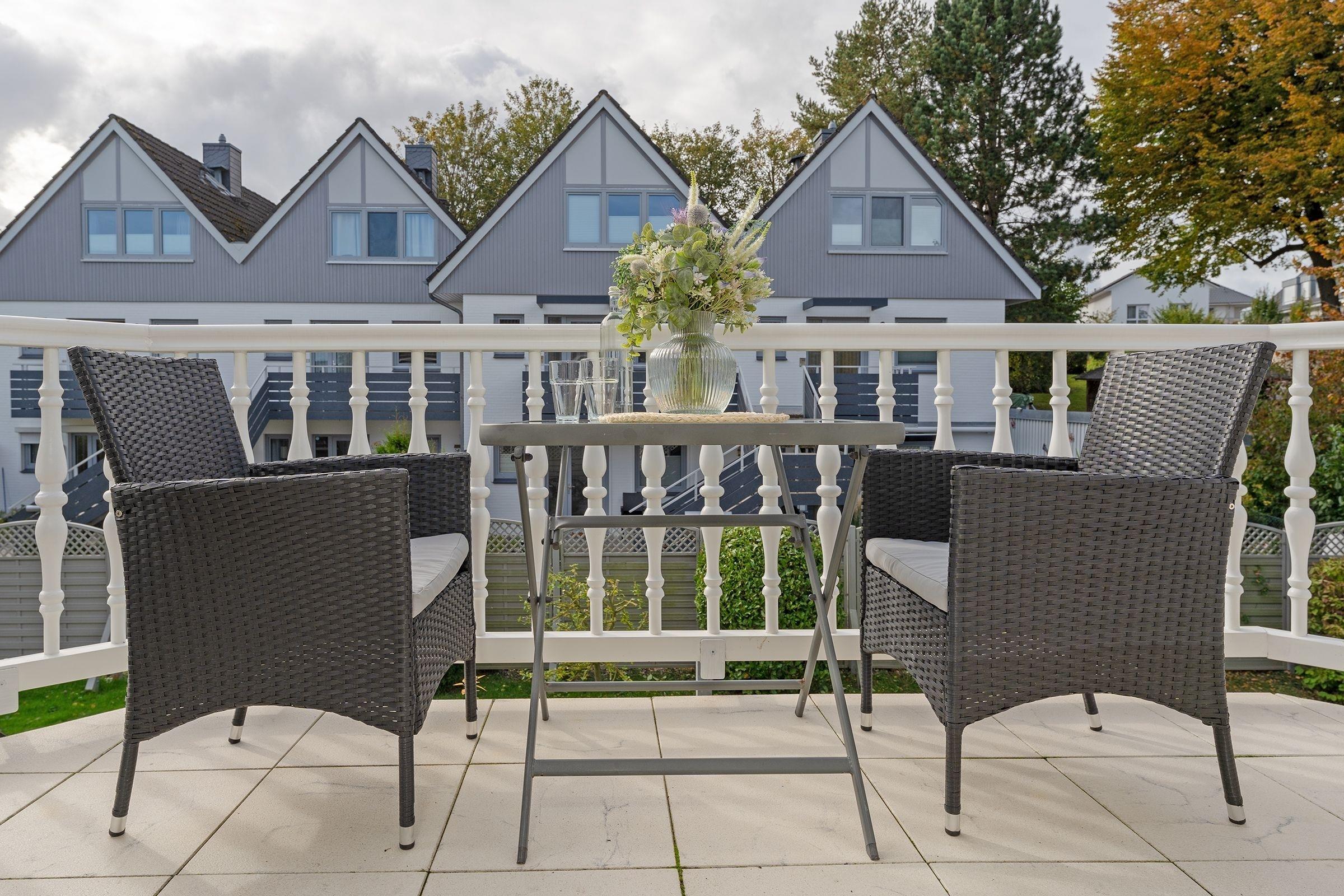 Sehr schöne Wohnung, direkt hinterm Kurpark! Der Balkon ist ideal, um dort mit zwei Personen zu frühstücken oder abends noch ein Glas Wein zu trinken.