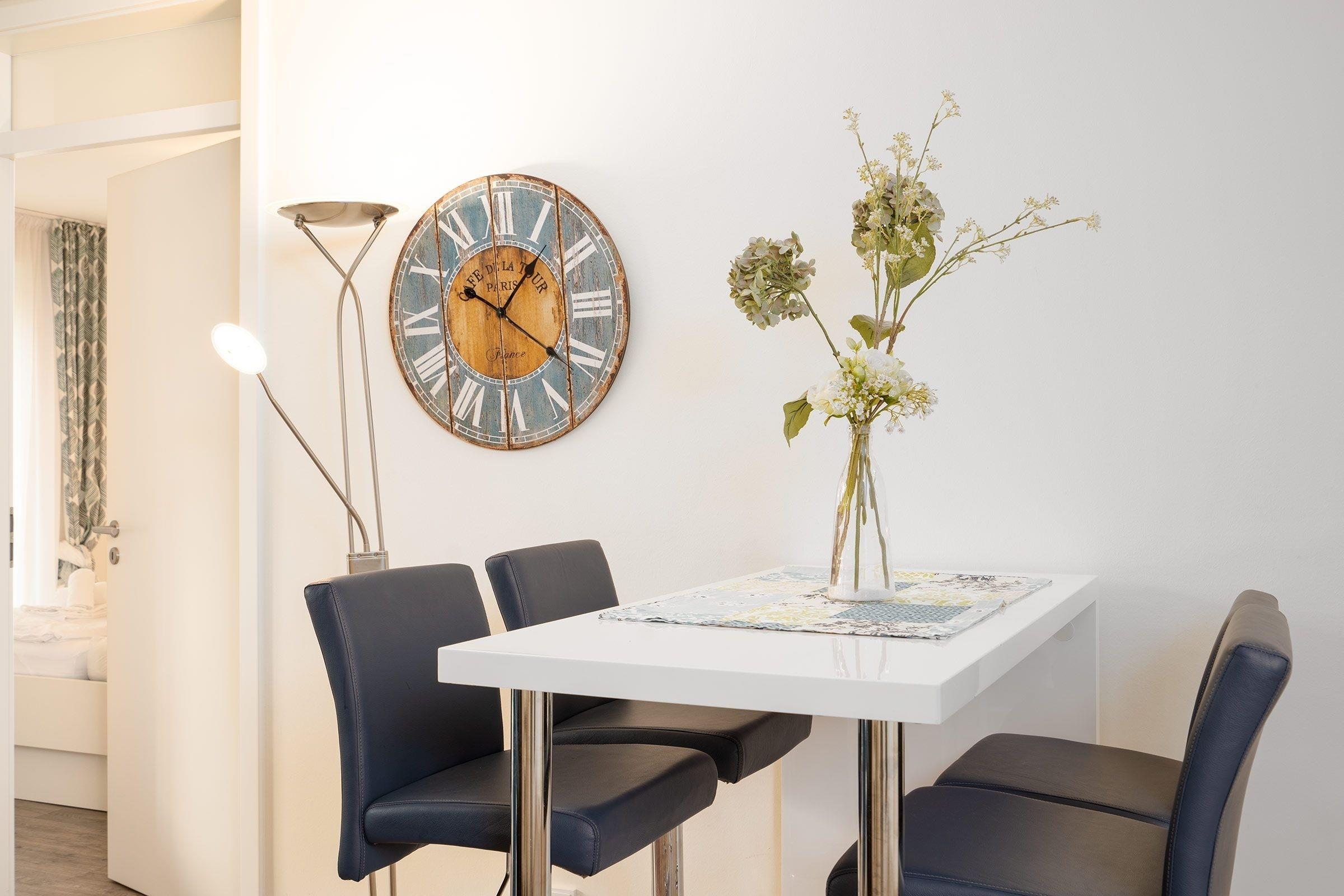 Hallo, die Wohnung befindet sich wirklich in einer super Lage. Nicht direkt im Trubel und trotzdem schnell an der Promenade womit sich das Brötchen holen und ein kurzer Spaziergang auch noch lohnt. Die Wohnung ist modern gehalten und dennoch durch ihre Ausstattung auch für Senioren geeignet. (Alles ist soweit barrierefrei und das Bett liegt höher. Evt. wird der hohe Tisch mit den Bistrohockern ja mal durch etwas Bequemes ausgetauscht. Aber das wussten wir ja vorher und ist geschmackssache.) Die Terasse konnte durch die Süd-/Westlage bis abends genutzt werden. Alles in einem wurden schöne Stunden und Tage in der Wohnung verbracht. Wir würden die Wohnung wieder buchen! Vielen Dank auch an das Kraushaar Team für den Service nach dem Urlaub.
