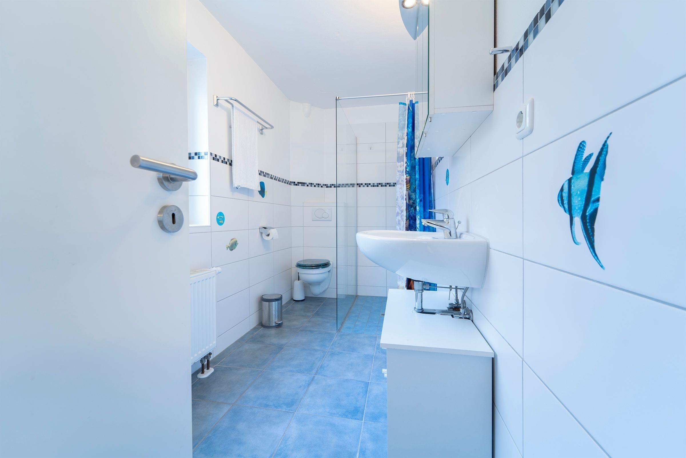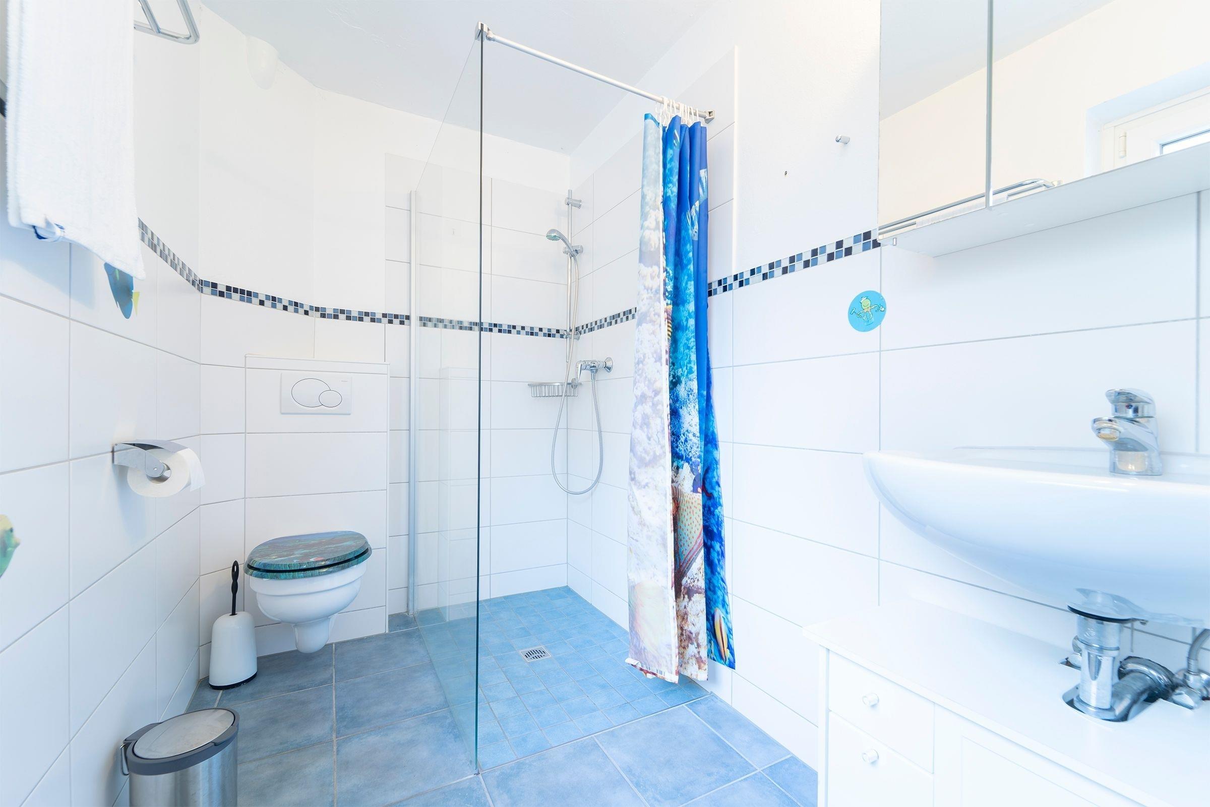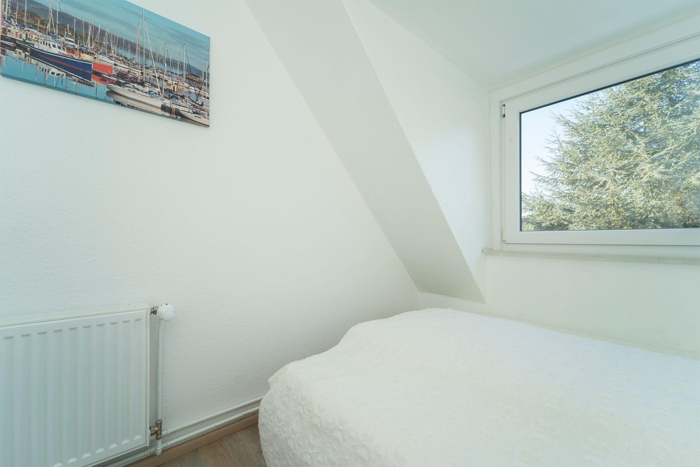 Ihr Auto parkt direkt am Ferienhäuschen. Praktisch ist der Eingangsflur mit Garderobe und Schuhschrank und Bänkchen. Treten Sie ein: rechts ist das helle Wohnzimmer mit 2 Sofas und Essplatz, TV und Musikanlage. Vom Wohnzimmer aus gelangen Sie in den schönen eingezäunten Garten mit Spielgeräten und Sandkasten. Ihre Kinder werden den großen Garten lieben – sie können dort unbeschwert spielen. Das Grillen ist hier auch erlaubt. Neben dem Wohnzimmer ist die separate vollausgestattete Küche. Hier können Sie kochen wie zu Hause und am liebsten Abends im Garten zusammen essen. Das große tageslichthelle Duschbad ist auch im Erdgeschoss. Für die schnelle Wäsche zwischendurch steht Ihnen hier eine Waschmaschine zur Verfügung. Eine Treppe hinauf führt Sie zu den beiden separaten Schlafzimmern. Gleich links ist ein kleines Schlafzimmer, mit Dachschrägen, einem Doppelbett (140x200 cm), Nachttischen und Kleiderschrank. Daneben ist das große Schlafzimmer mit Doppelbett (2x 90x200 cm), Nachttischen, Kleiderschrank, Kommode und TV. Herrlich hier können Sie morgens schon in Ruhe einen Kaffee auf dem Balkon genießen. Beide Schlafzimmer haben Außenrolladen zum Verdunkeln. Ein kleines WC ist ebenfalls auf der 1. Etage.