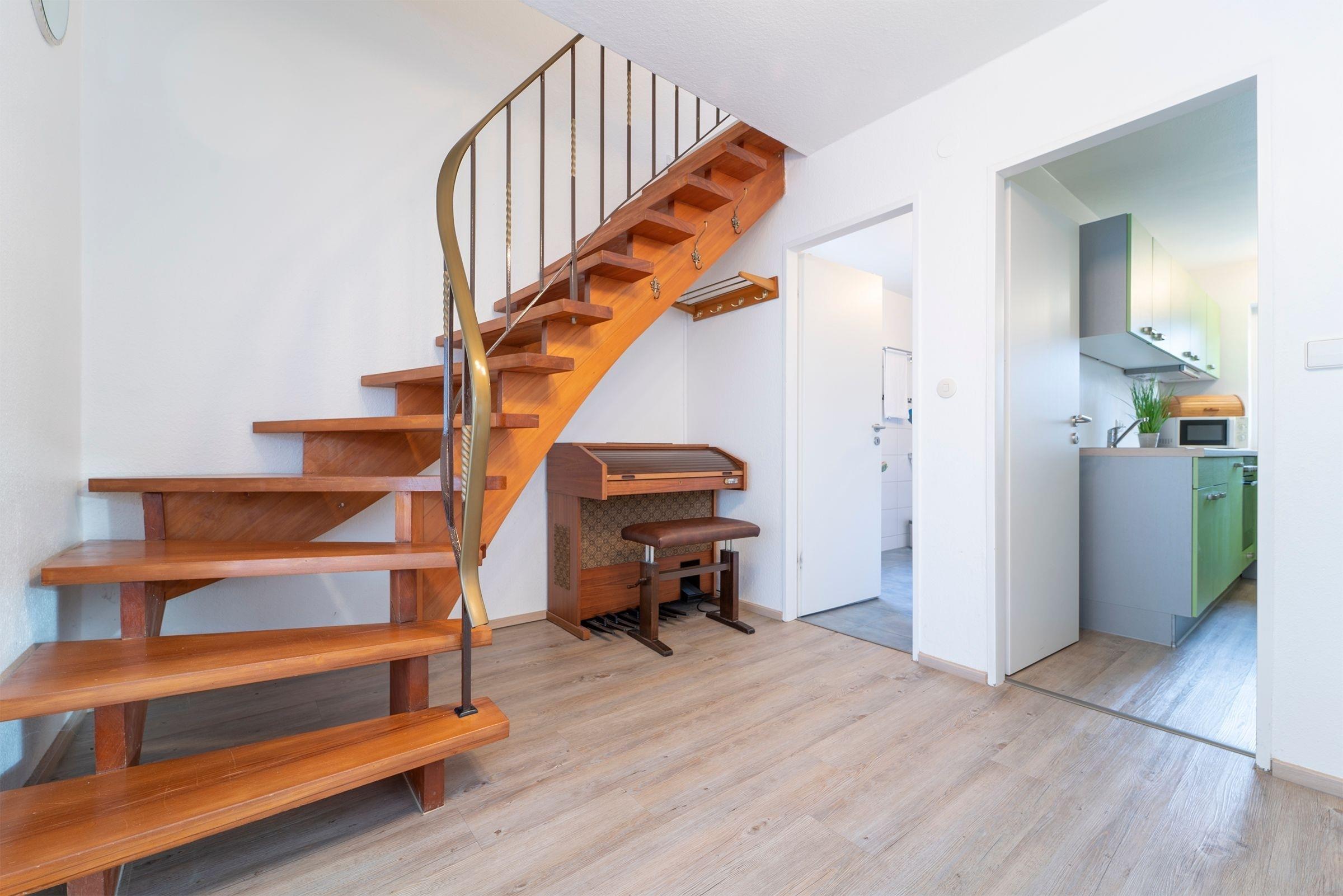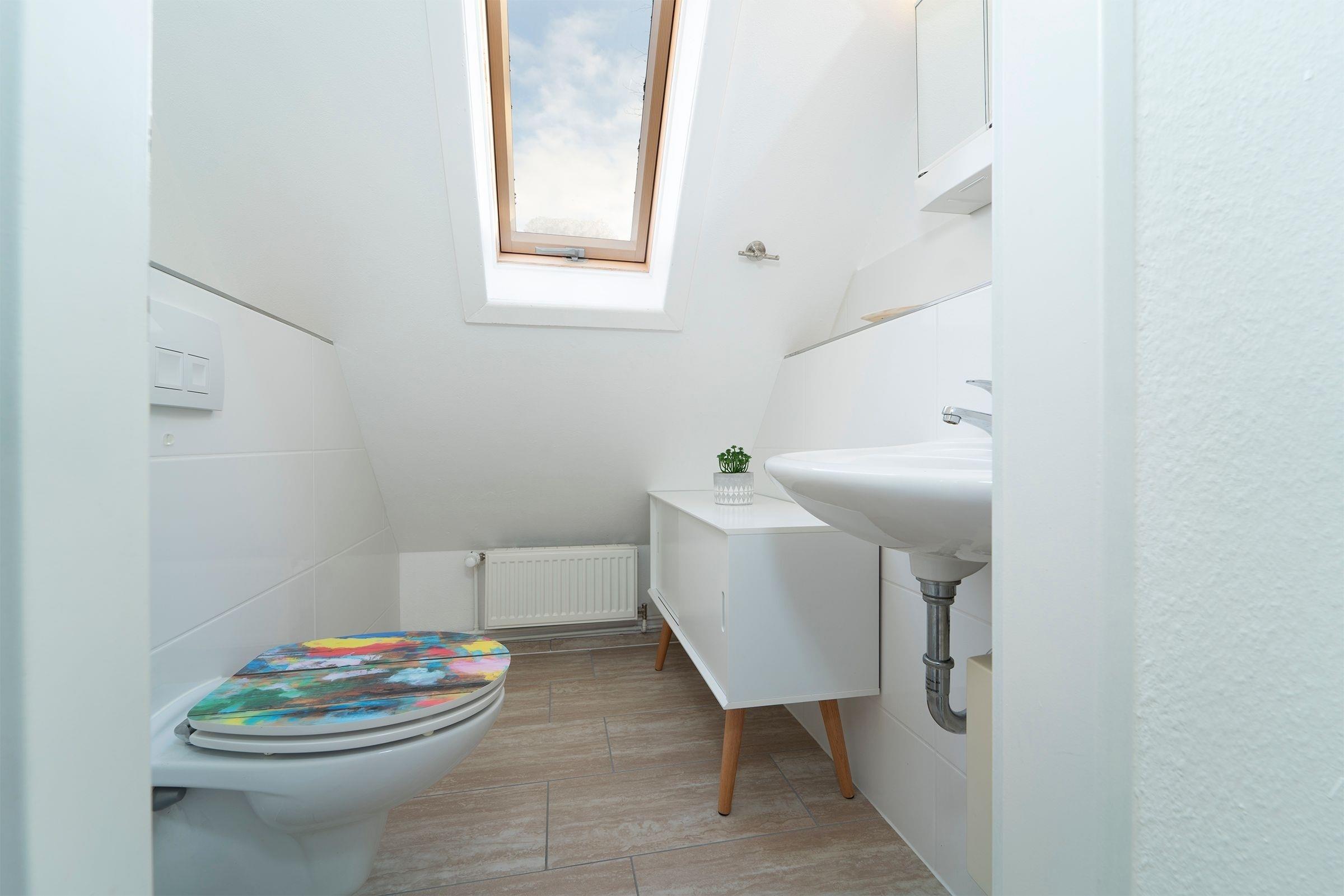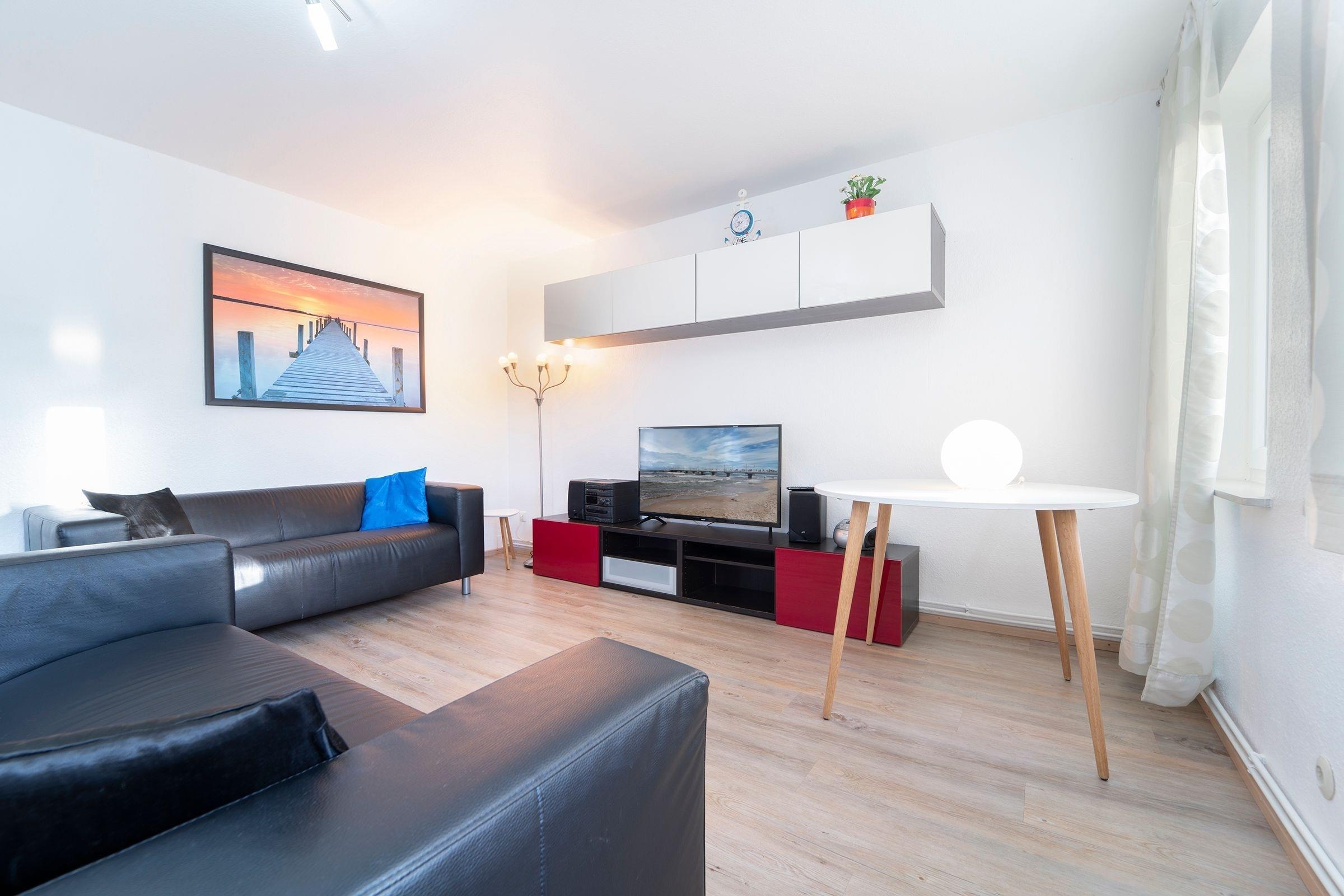 Ihr Auto parkt direkt am Ferienhäuschen. Praktisch ist der Eingangsflur mit Garderobe und Schuhschrank und Bänkchen. Treten Sie ein: rechts ist das helle Wohnzimmer mit 2 Sofas und Essplatz, TV und Musikanlage. Vom Wohnzimmer aus gelangen Sie in den schönen eingezäunten Garten mit Spielgeräten und Sandkasten. Ihre Kinder werden den großen Garten lieben – sie können dort unbeschwert spielen. Das Grillen ist hier auch erlaubt. Neben dem Wohnzimmer ist die separate vollausgestattete Küche. Hier können Sie kochen wie zu Hause und am liebsten Abends im Garten zusammen essen. Das große tageslichthelle Duschbad ist auch im Erdgeschoss. Für die schnelle Wäsche zwischendurch steht Ihnen hier eine Waschmaschine zur Verfügung. Eine Treppe hinauf führt Sie zu den beiden separaten Schlafzimmern. Gleich links ist ein kleines Schlafzimmer, mit Dachschrägen, einem Doppelbett (140x200 cm), Nachttischen und Kleiderschrank. Daneben ist das große Schlafzimmer mit Doppelbett (2x 90x200 cm), Nachttischen, Kleiderschrank, Kommode und TV. Herrlich hier können Sie morgens schon in Ruhe einen Kaffee auf dem Balkon genießen. Beide Schlafzimmer haben Außenrolladen zum Verdunkeln. Ein kleines WC ist ebenfalls auf der 1. Etage.