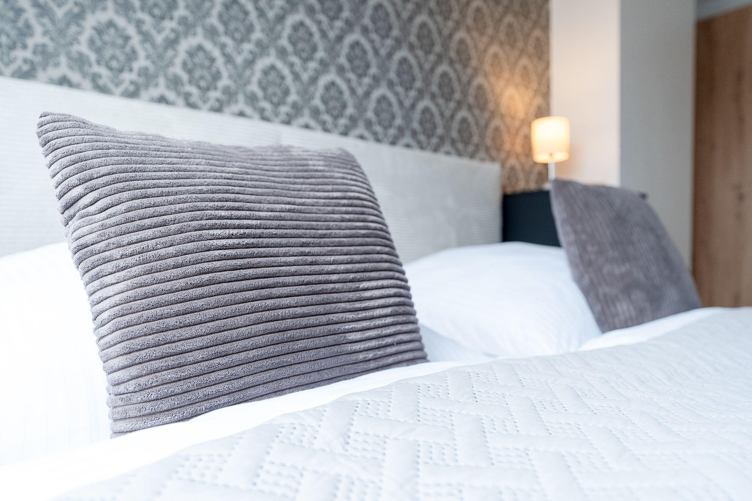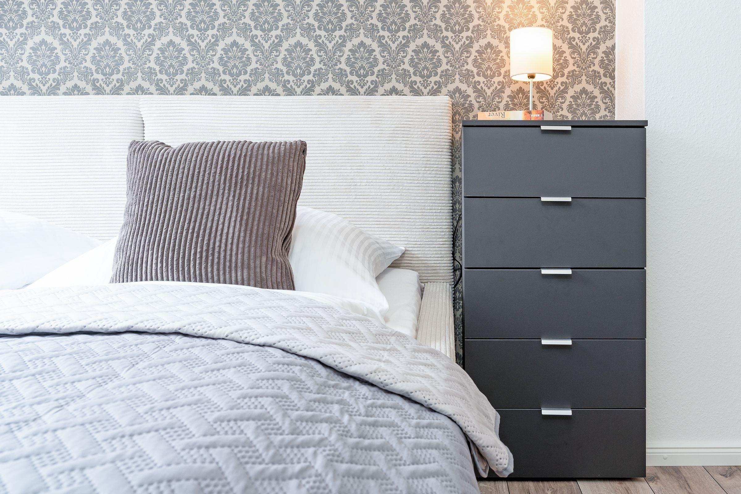 Schlafzimmer: 1 Doppelbett (2x 90x200 cm), Kleiderschrank, Verdunkelungsmöglichkeit (Vorhänge)