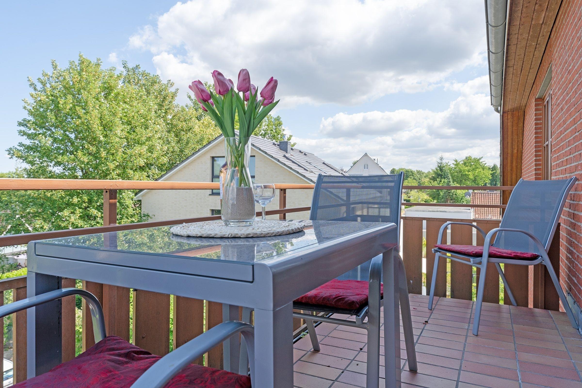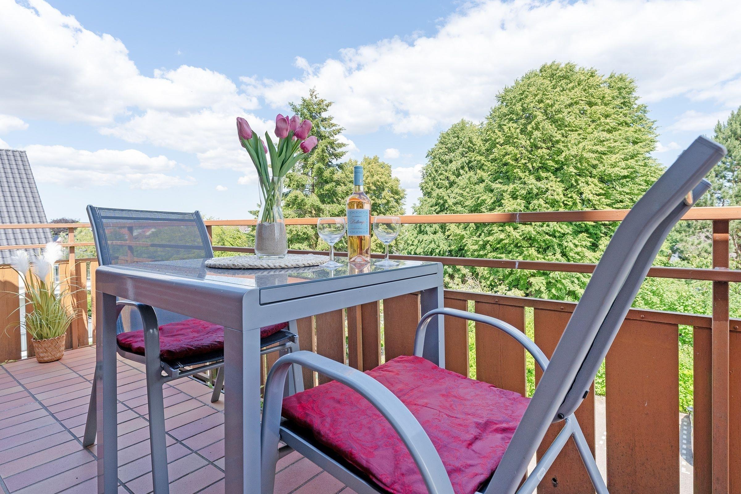 Charmante Ferienwohnung mit zwei Balkonen nahe dem Strand in Scharbeutz, ideal für erholsame Urlaubstage am Meer.