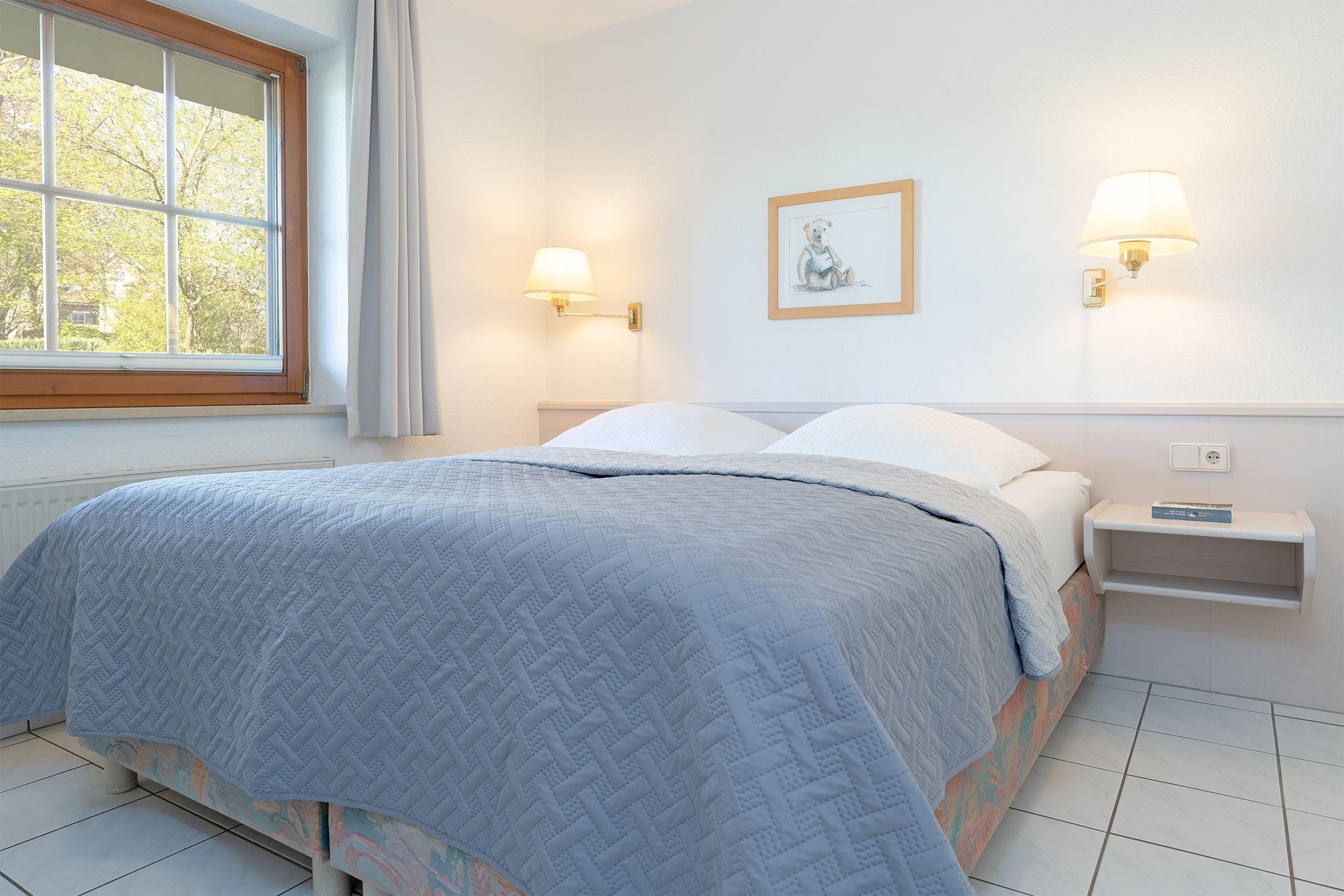 Schlafzimmer: 1 Doppelbett (2x 90x200 cm), Kleiderschrank, Verdunkelungsgardinen