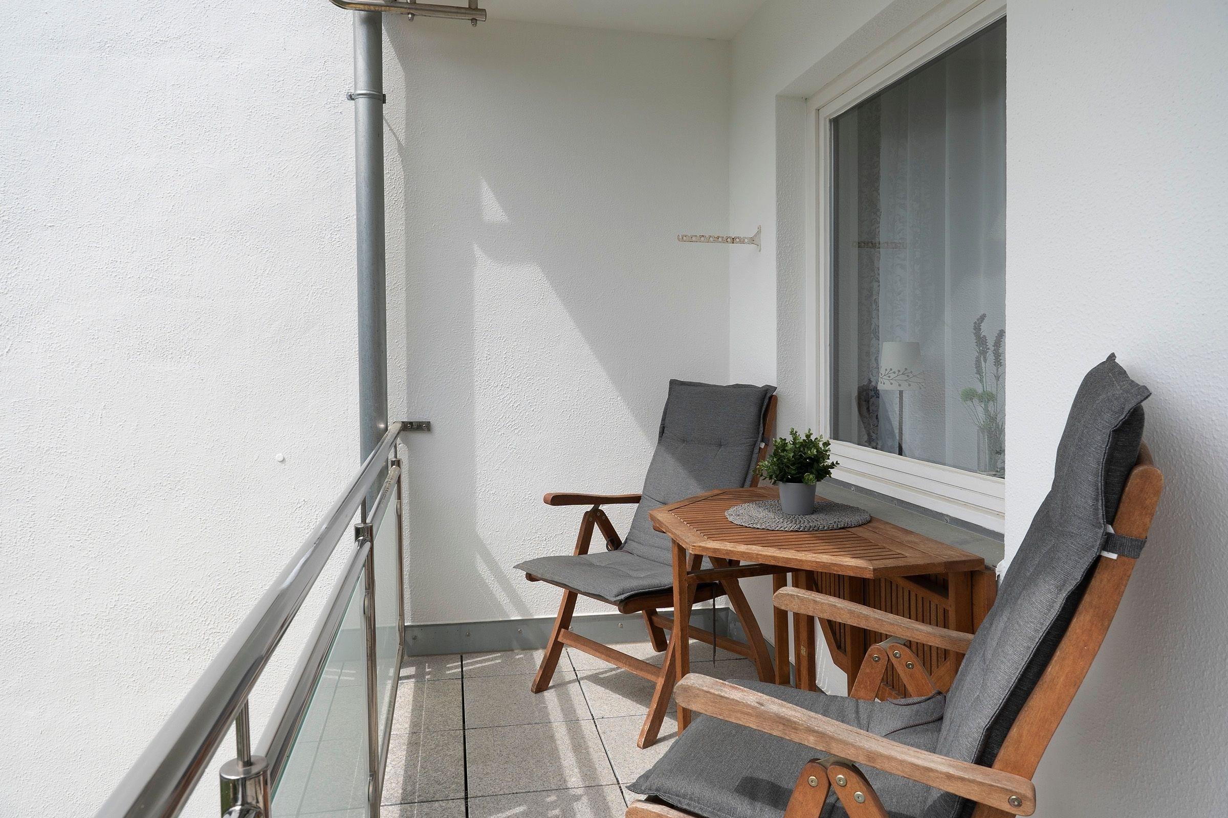 Die Ferienwohnung ist stilsicher eingerichtet und bietet Platz für 3 bis 4 Personen: Der Wohn- und Schlafbereich wurde mit hochwertigen Bodenfliesen in Dielenoptik ausgestattet. Die moderne Schlafcouch lädt zum Entspannen ein und bietet weitere Schlafmöglichkeiten (140x200 cm). Neue Möbel und liebevoll ausgesuchte Accessoires verleihen dem Ganzen einen maritimen Flair mit Wohlfühlatmosphäre. Im separaten Schlafzimmer mit Doppelbett (160x200 cm) können Sie nach einem aufregendem Urlaubstag erholsame Stunden verbringen. Auf dem großzügigen Balkon kann man durch die süd-westliche Ausrichtung Sonne bis in den Abend genießen.