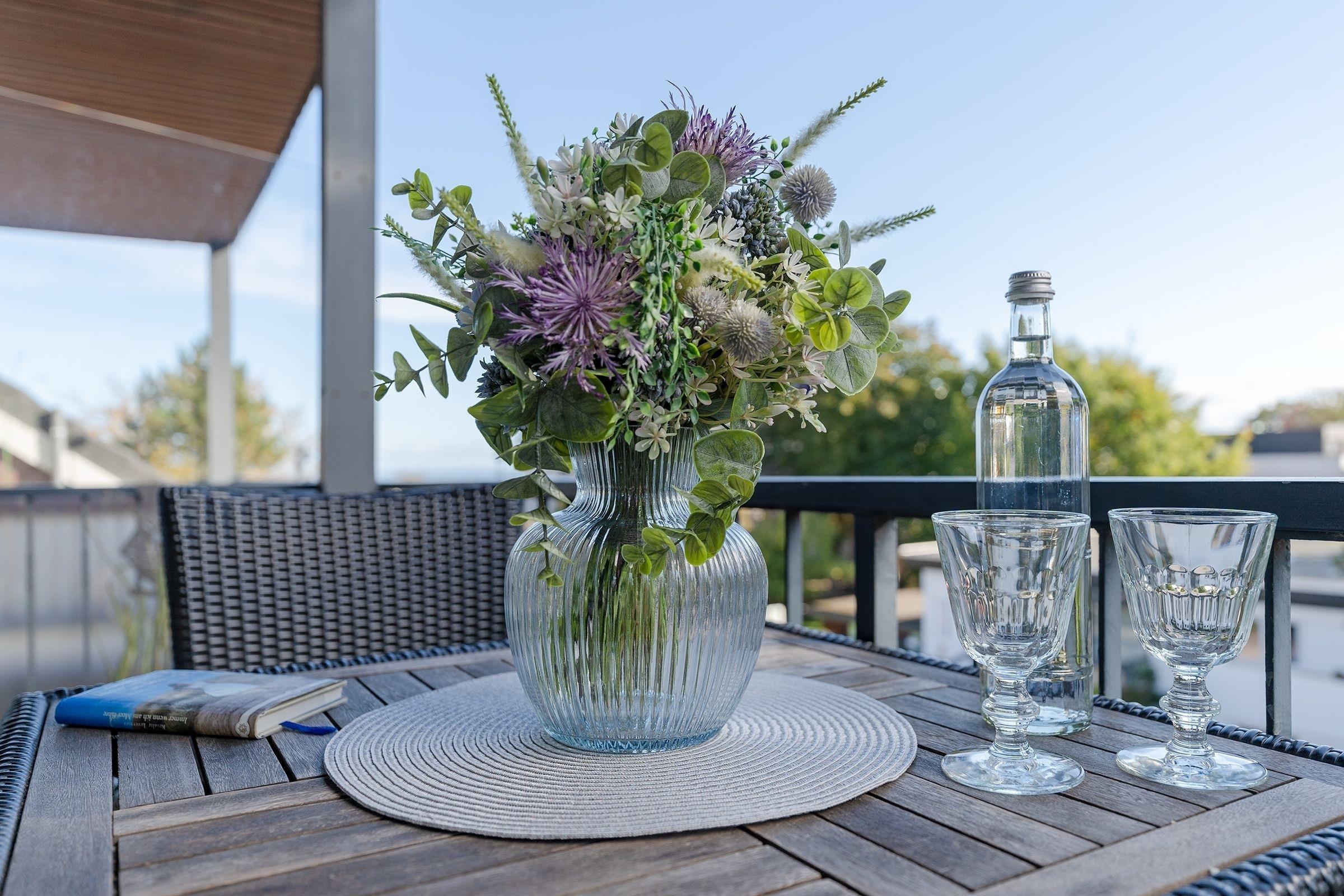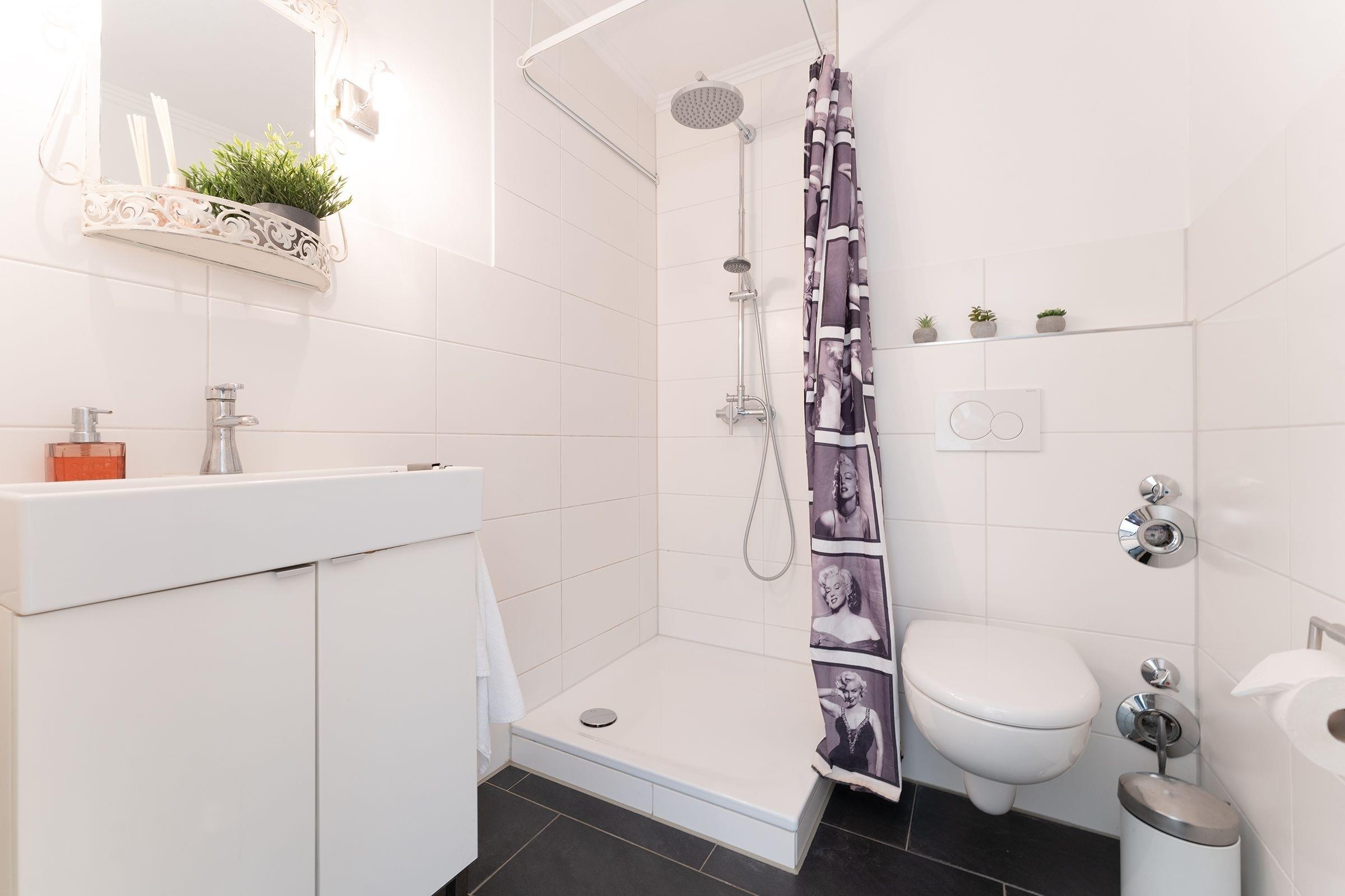Die moderne Küchenzeile ist in den Wohnraum integriert und erfreut im Urlaub mit Alltagshelfern wie Ceranherd, Backofen und Mikrowelle. Genießen Sie die erste Tasse Kaffee am geselligen Esstresen mit Platz für zwei. Das kleine, aber feine Badezimmer ist geschmackvoll gestaltet und sorgt mit Regendusche, Fön und beleuchtetem Spiegel für gute Laune.