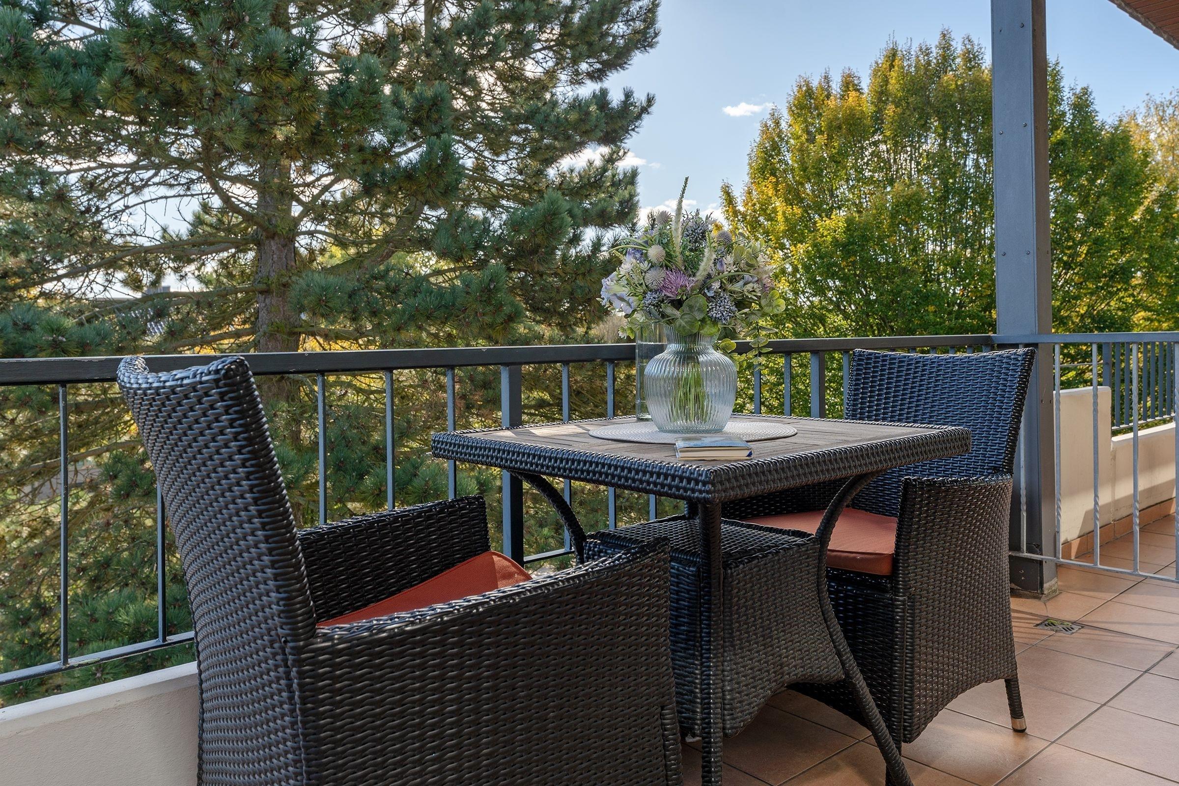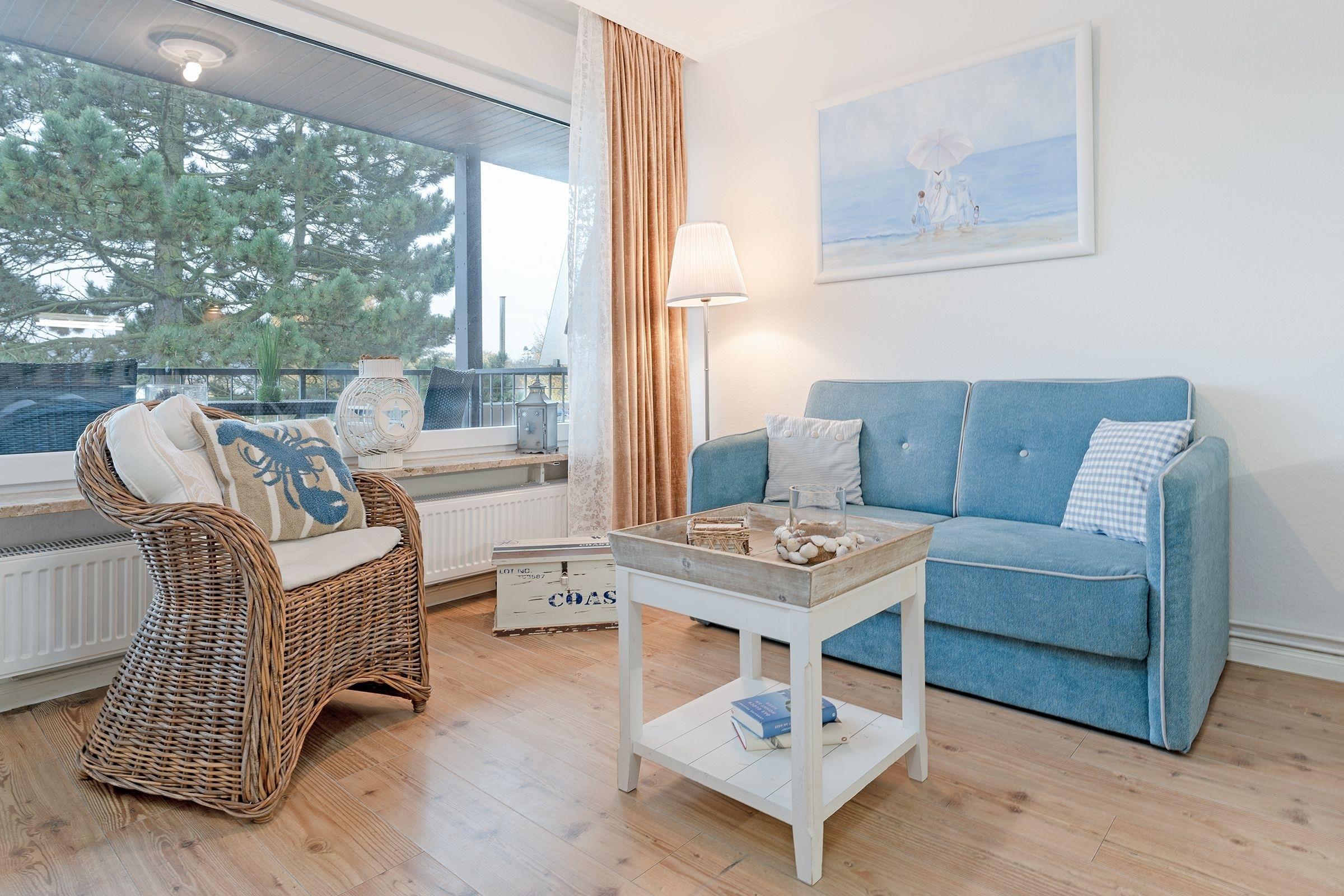 Lichtdurchflutet, hell und rundherum gemütlich begrüßt Sie dieses Kleinod in unmittelbarer Ostseenähe. Hochwertiges Laminat in schöner Holzoptik sorgt für ein angenehmes Wohnambiente. Damit Sie auch im Urlaub immer auf dem Laufenden bleiben, steht ein WLAN-Anschluss zur kostenlosen Nutzung bereit, Kabel-TV bietet zusätzliche Unterhaltung. In dem hochwertigen Schrankbett (160x190 cm) schlafen Sie so gemütlich wie zuhause. Machen Sie es sich abends auf dem Sofa bequem oder lassen Sie Ihre Urlaubstage entspannt auf dem großzügigen Balkon in Südlage mit Blick über Baumwipfel und seitlichem Meerblick ausklingen. Die blau glitzernde Ostsee ist hier zum Greifen nah!