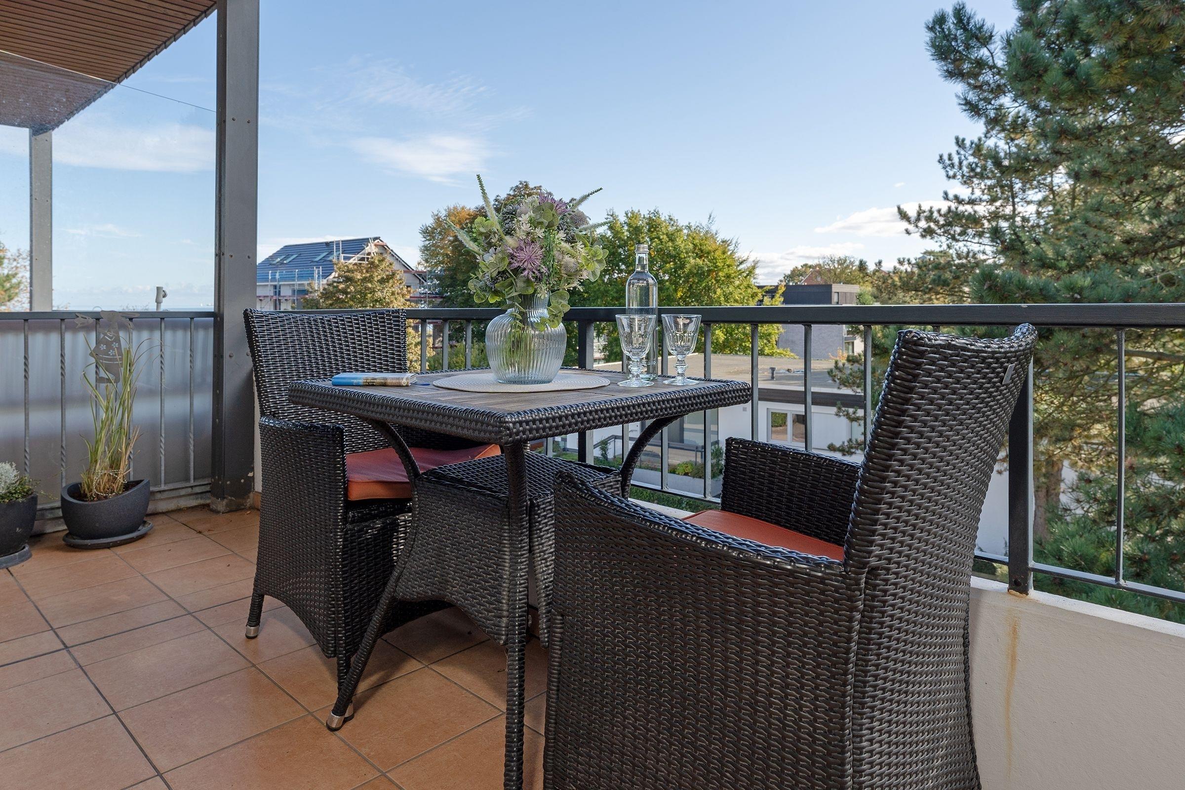 Gemütliche Ferienwohnung mit Balkon und Meerblick in Scharbeutz, nur wenige Schritte vom Strand entfernt.
