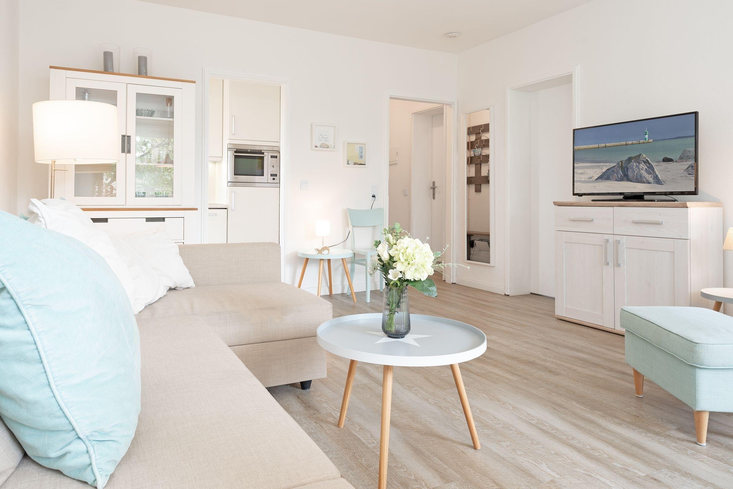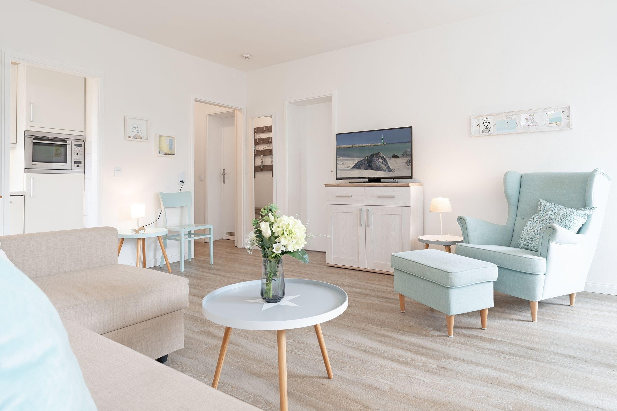 Diese liebevoll eingerichtete Ferienwohnung liegt im 1. Stock (Aufzug vorhanden) und nur wenige Meter vom Strand und der Dünenmeile entfernt.