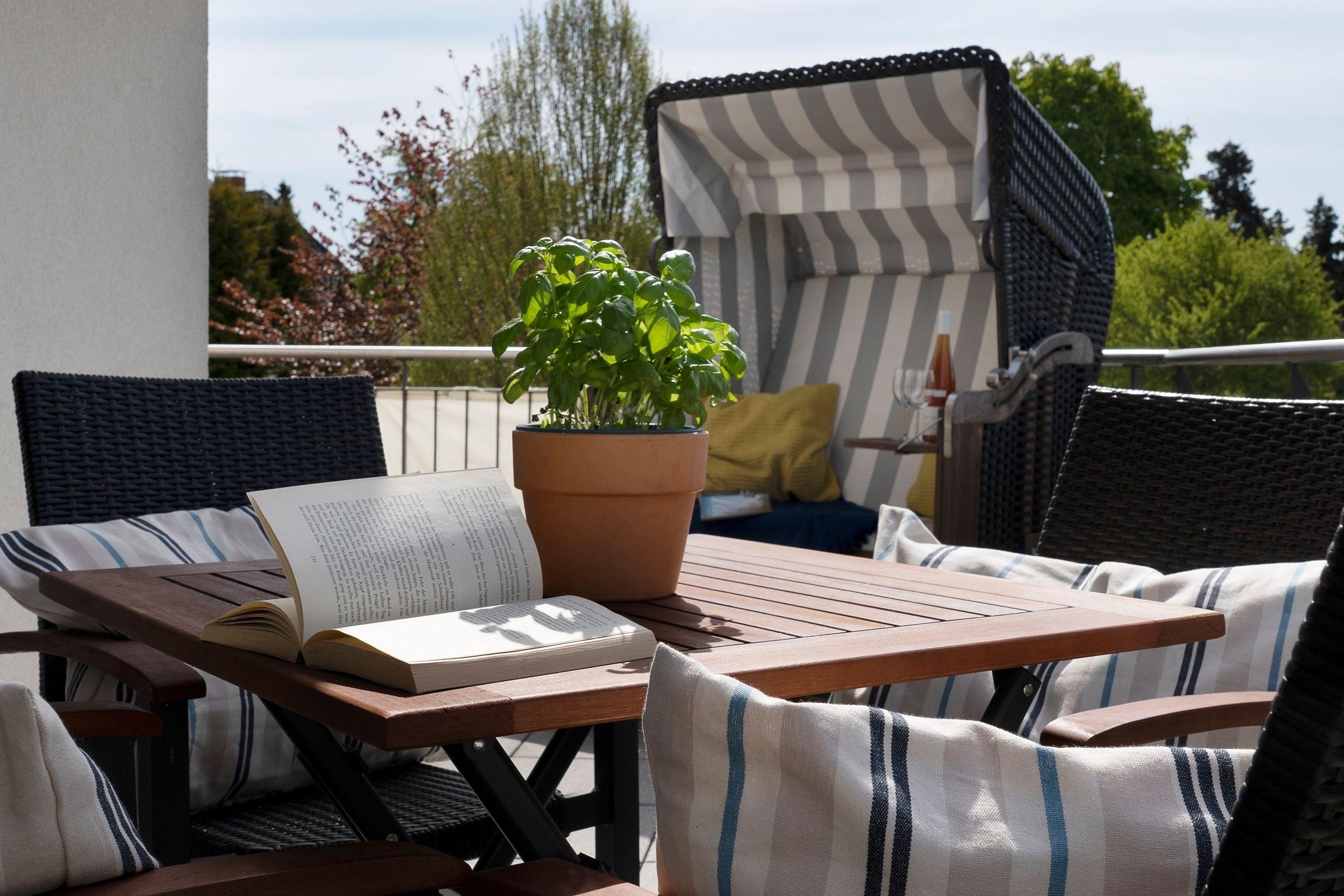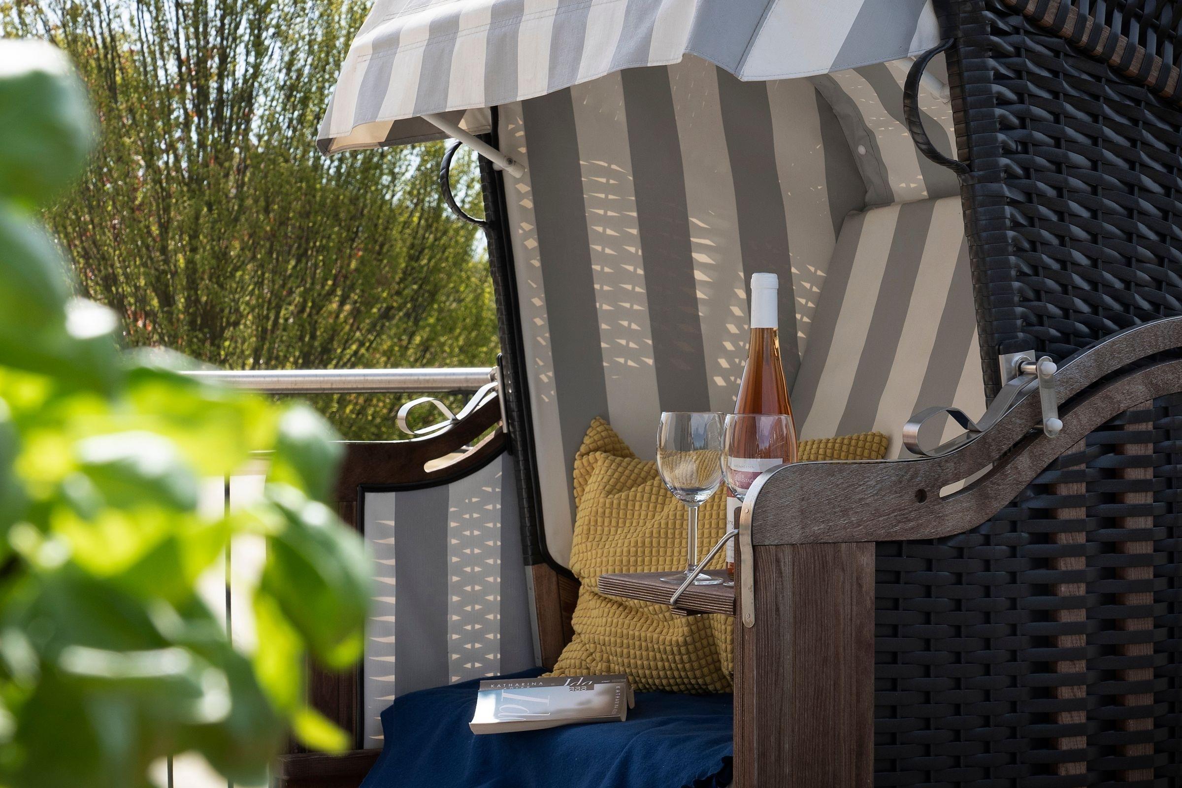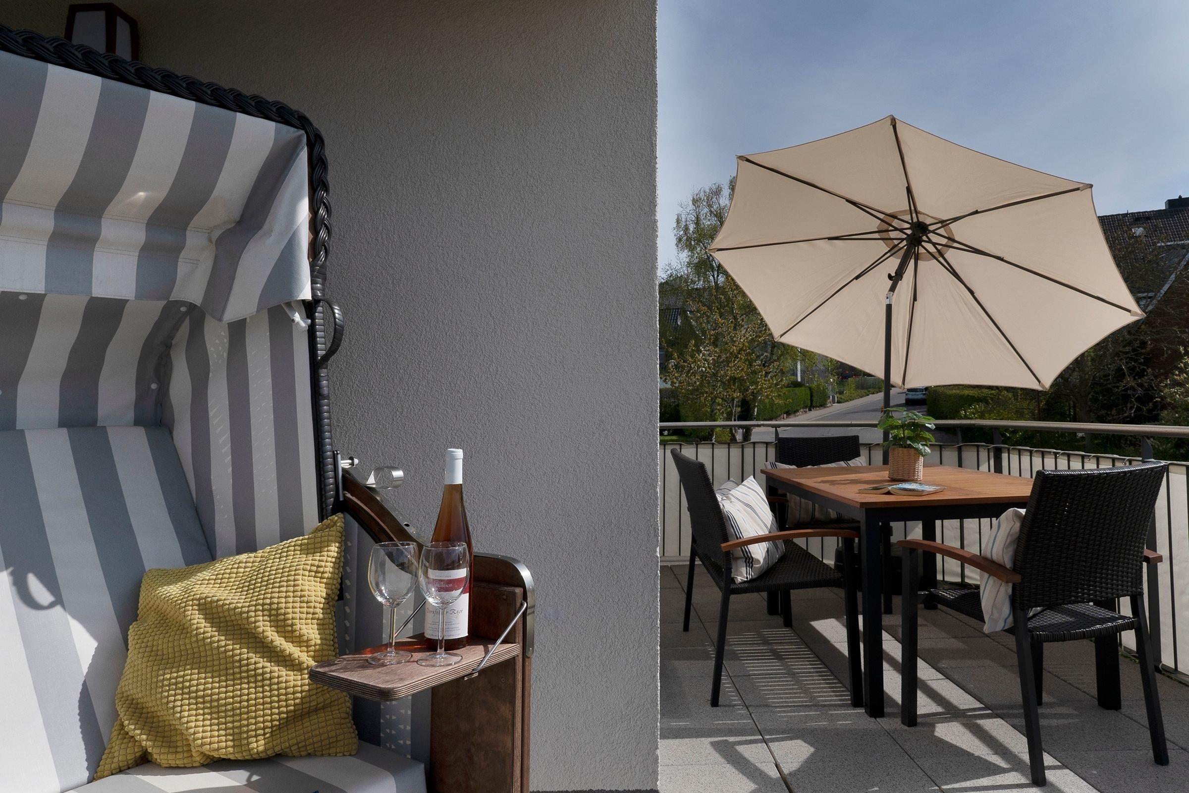 Moderne Ferienwohnung mit Balkon und Strandkorb