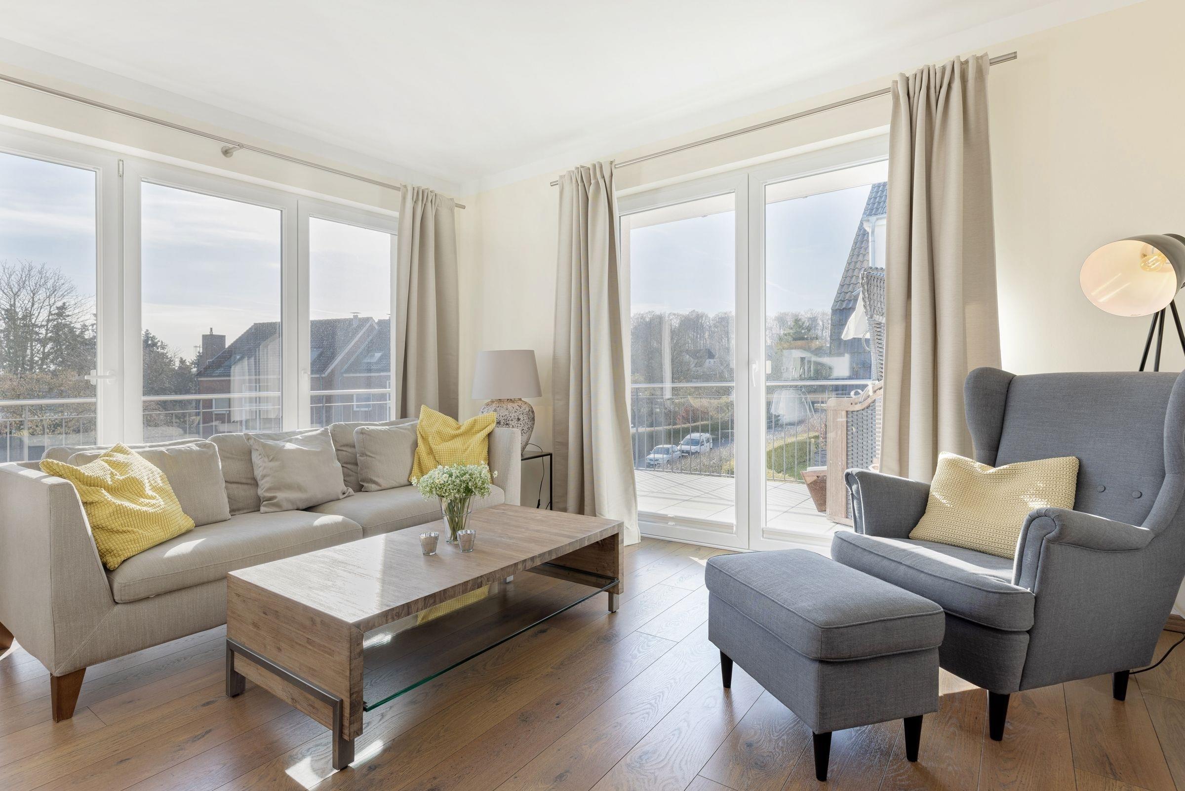 Moderne Ferienwohnung Küstenglanz mit Balkon, Strandkorb und WLAN in Scharbeutz, nur 850 m vom Strand entfernt.