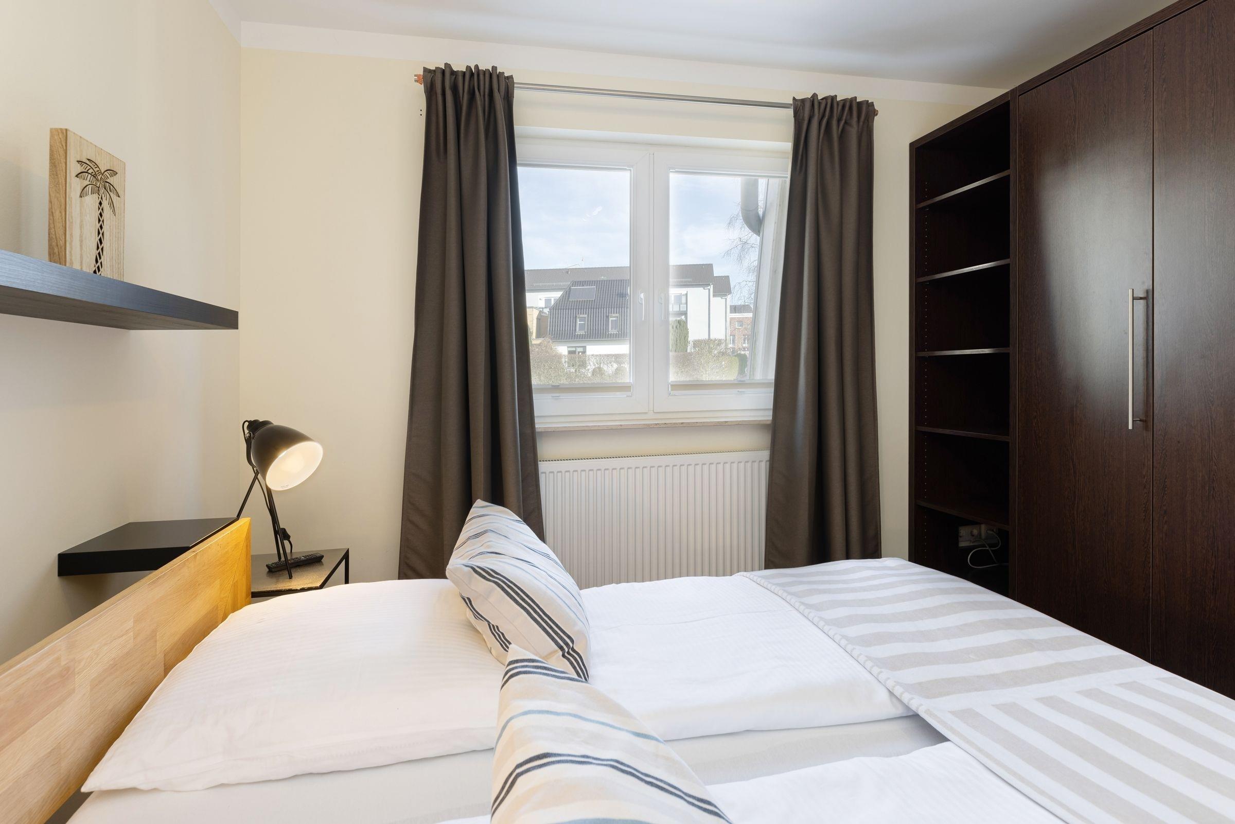 Schlafzimmer 2: 2 Einzelbetten (2x 90x200 cm), Kleiderschrank, Verdunkelung (Plissees).