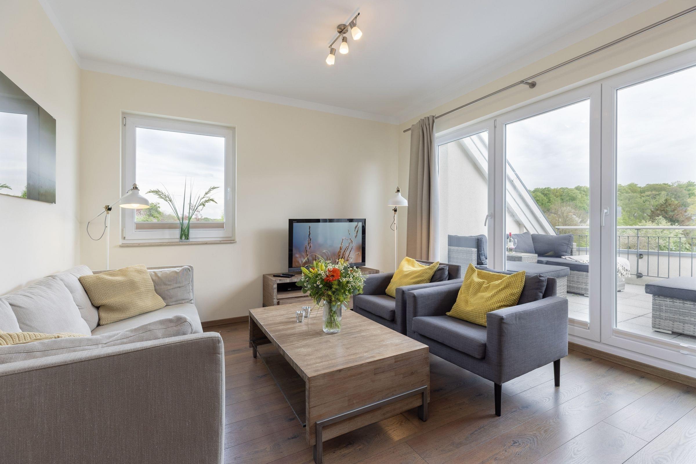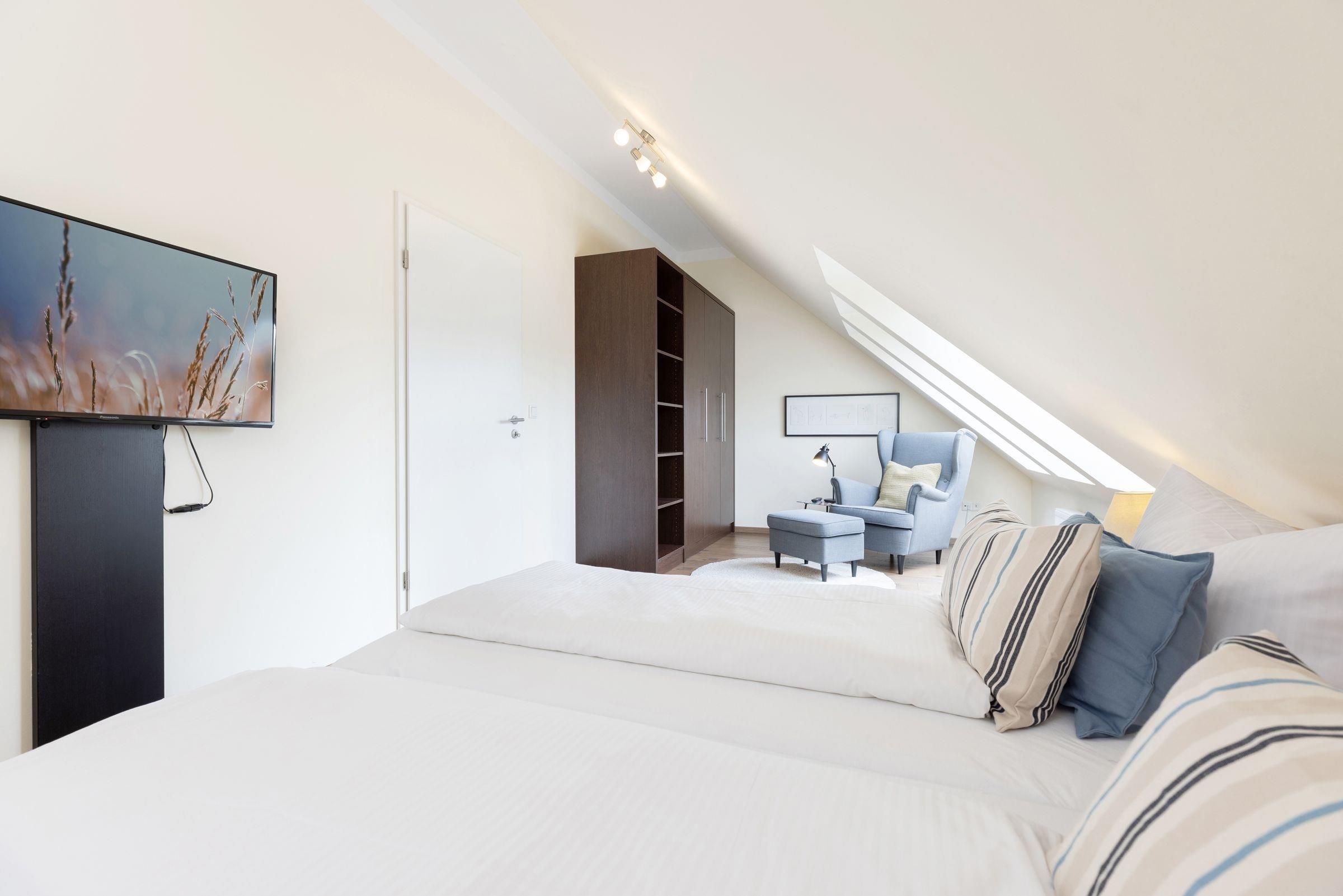 Dieses komfortable 4-Zimmer-Appartement erstreckt sich über 2 Etagen, hat ca. 90 m² und bietet Platz für bis zu 6 Personen. Es ist modern, geschmackvoll und stilsicher eingerichtet.