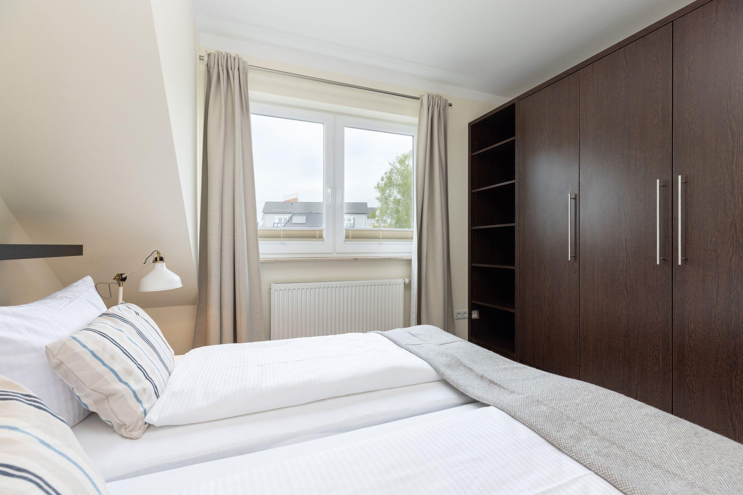 Schlafzimmer 2: 1 Doppelbett (2x 90x200 cm), Kleiderschrank, Verdunkelung (Plissees)