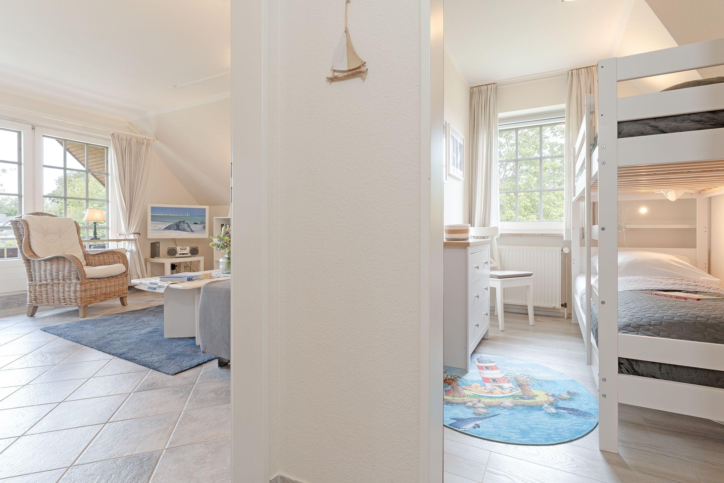 Schlafzimmer 2: 1 Etagenbett (2x 90x200 cm), nur für Kinder geeignet