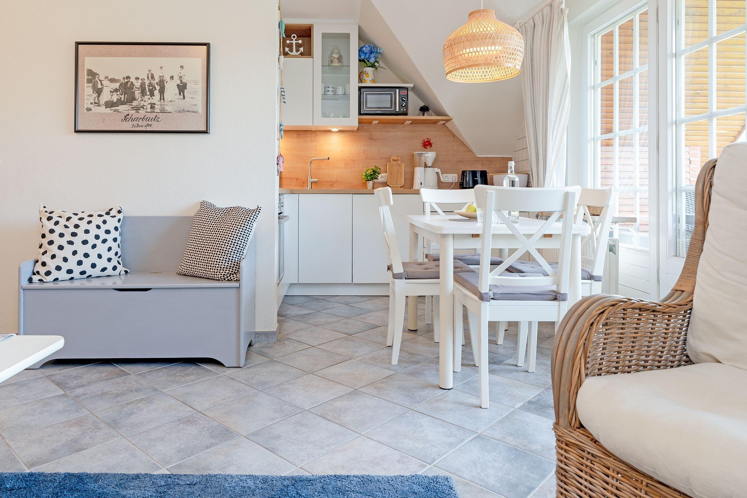 Eine Traumwohnung - nur rund 200 Meter vom Ostseestrand entfernt und geschmackvoll eingerichtet. Hier fühlt man sich sofort wohl! Im Wohnraum befinden sich eine Couchgarnitur mit Ausziehfunktion (140x200 cm), ein Sessel, eine kleine Sitzbank sowie eine Musikanlage und ein LCD-TV. Die moderne Küchenzeile ist gut ausgestattet und verfügt zum Beispiel über einen Geschirrspüler. Direkt an der Fensterfront steht ein gemütlicher Esstisch - hier haben Sie auch Zutritt auf den möblierten Balkon, auf dem Sie die gute Seeluft genießen können. Für die Nacht stehen Ihnen zwei Schlafzimmer zur Verfügung, eins mit einem Doppelbett (2x 90x200 cm) und eins mit einem Doppelstockbett (je 90x200 cm). Das schicke Bad ist hell gefliest.