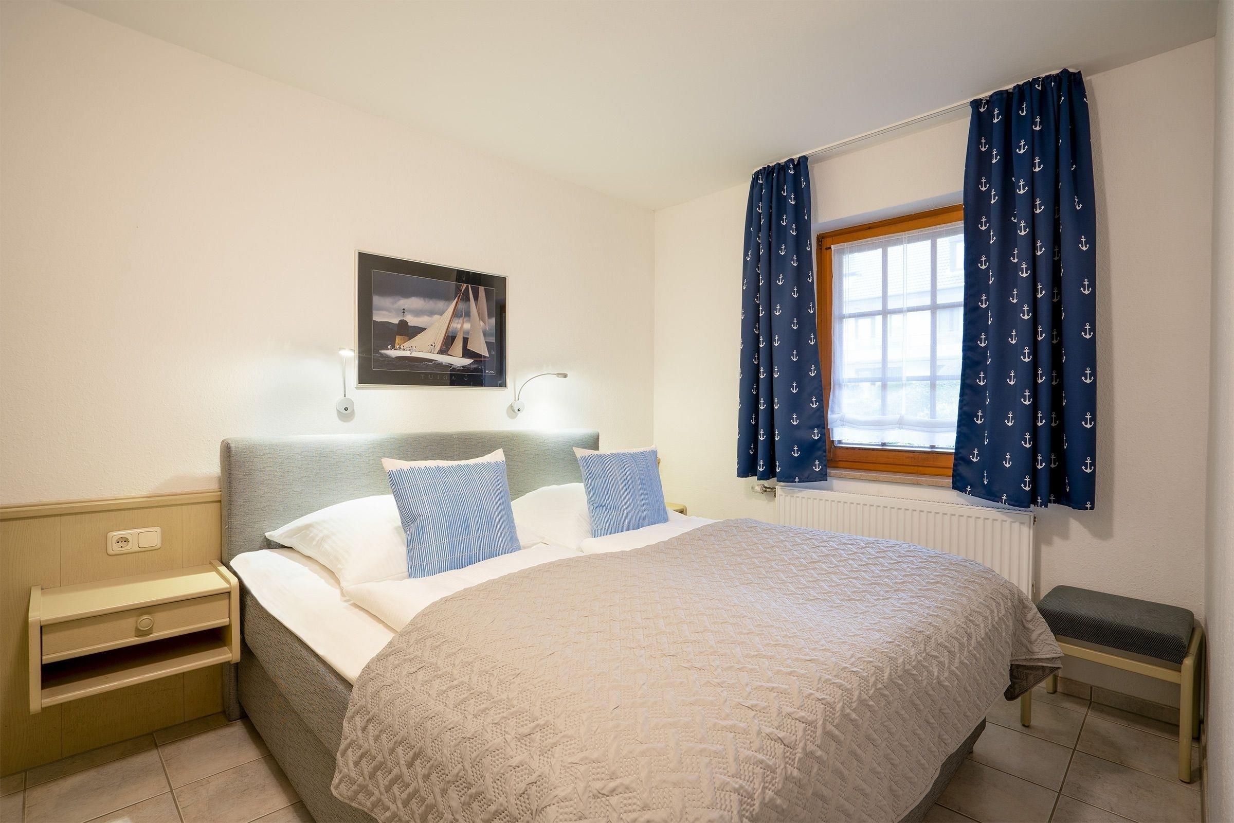 Das Schlafzimmer ist mit einem Boxspringbett (180x200 cm) und einem geräumigen Kleiderschrank ausgestattet. Der Wohnraum verfügt über eine sehr komfortable Schlafcouch (140x210 cm), einem TV-Gerät mit SAT-Empfang und einer Stereoanlage. Ein gemütlicher Essplatz grenzt an die integrierte und hochwertige Küchenzeile, die mit Alltagshelfern wie Geschirrspülmaschine, Backofen, Kühlschrank mit Gefrierfach, Cerankochfeld, Kaffeemaschine, Wasserkocher und Toaster ausgestattet ist. Die großzügige Südterrasse ist mit Gartenmöbeln, 2 Liegen und einem großen Sonnenschirm möbliert. Das tageslichthelle Bad überzeugt mit geschmackvollen Annehmlichkeiten wie Dusche mit tiefem Einstieg, Handtuchheizung und beleuchtetem Spiegelschrank.