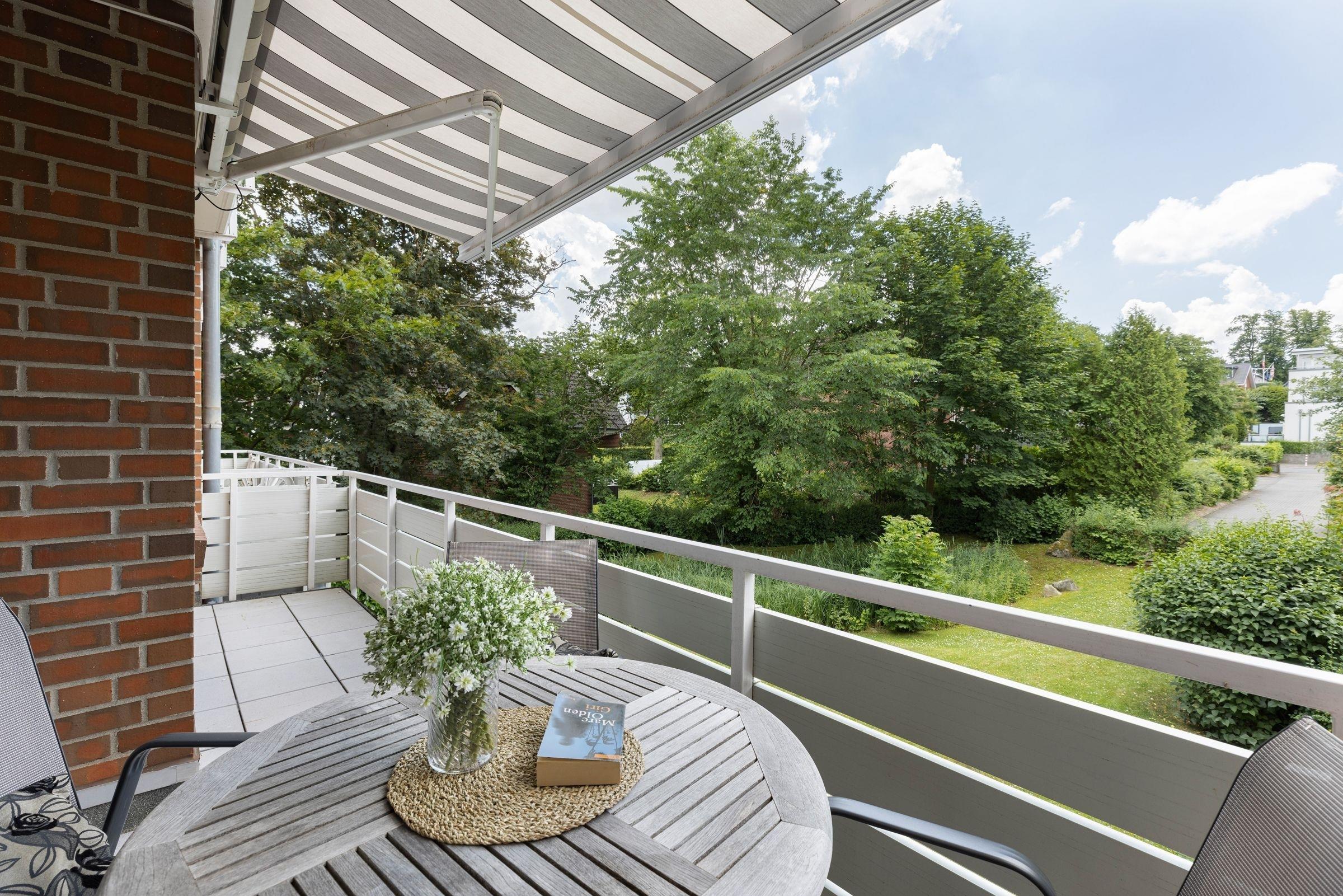 Moderne Ferienwohnung mit Balkon nahe dem Strand in Scharbeutz, ideal für erholsamen Ostseeurlaub.