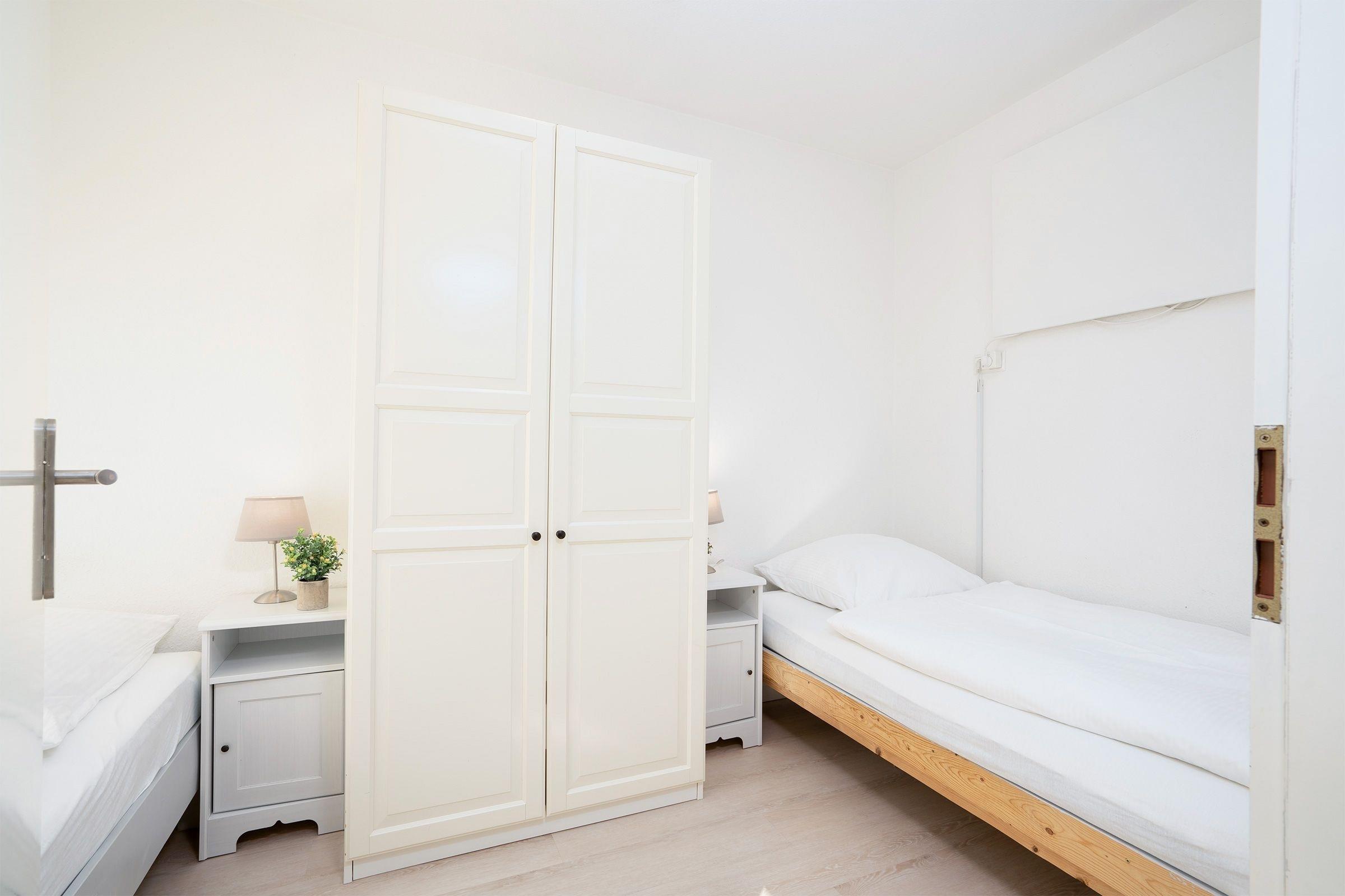 Schlafzimmer 2: 2 Einzelbetten (2x 90x190 cm), Kleiderschrank, Verdunkelungsmöglichkeit.