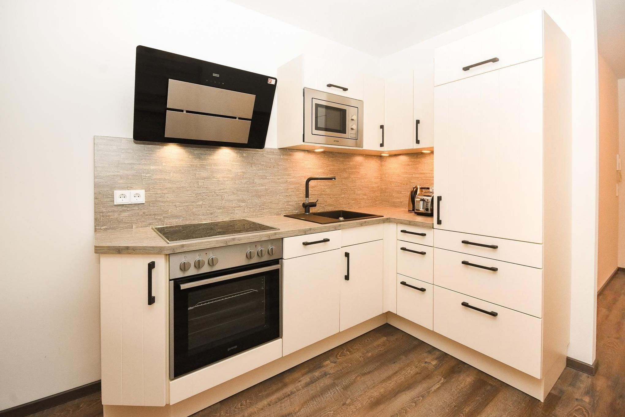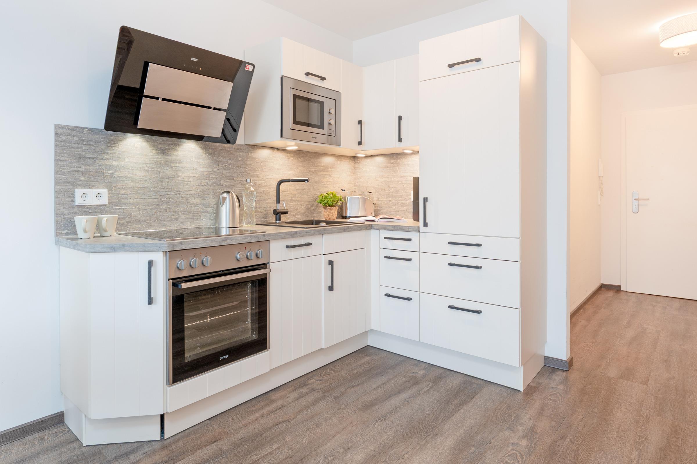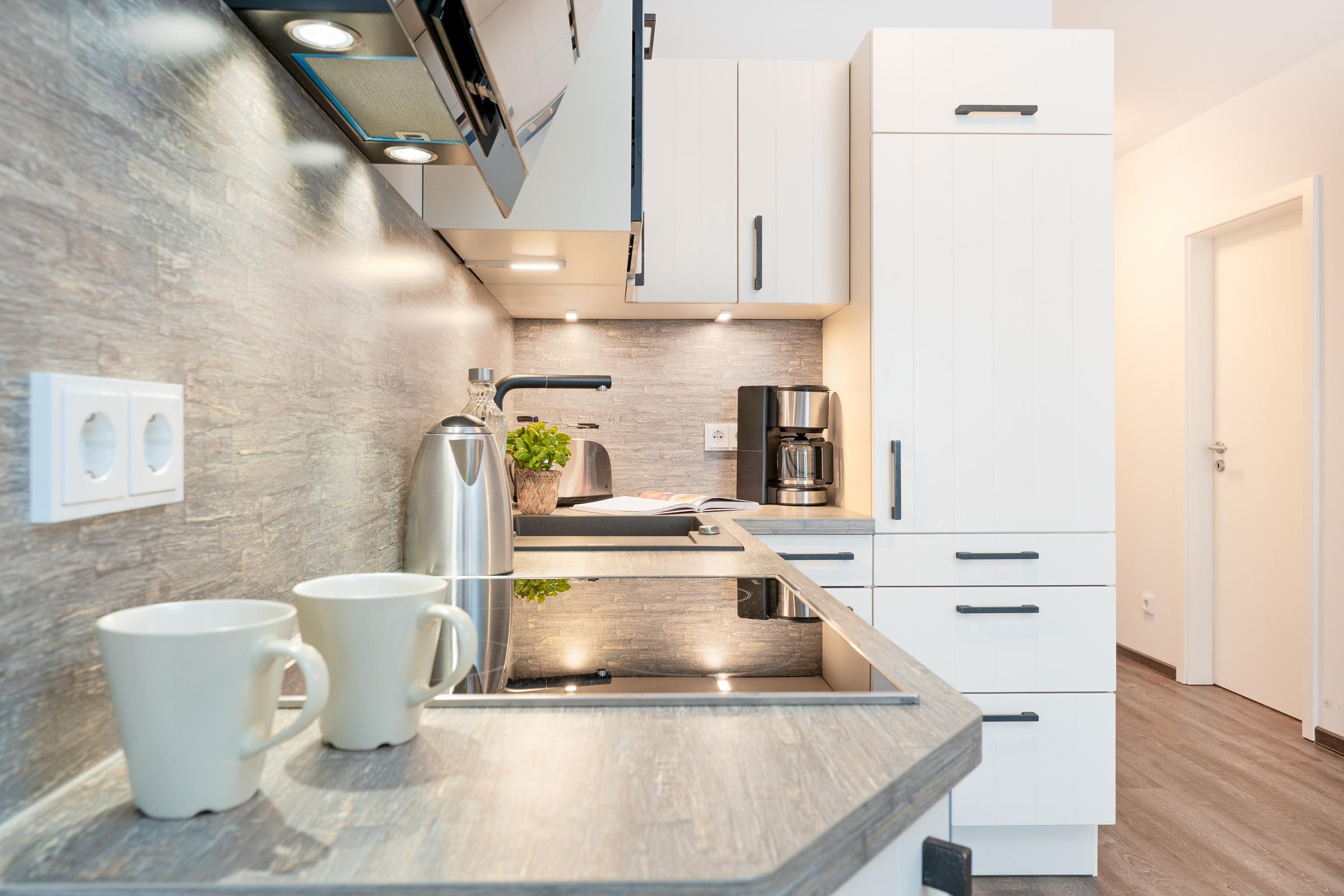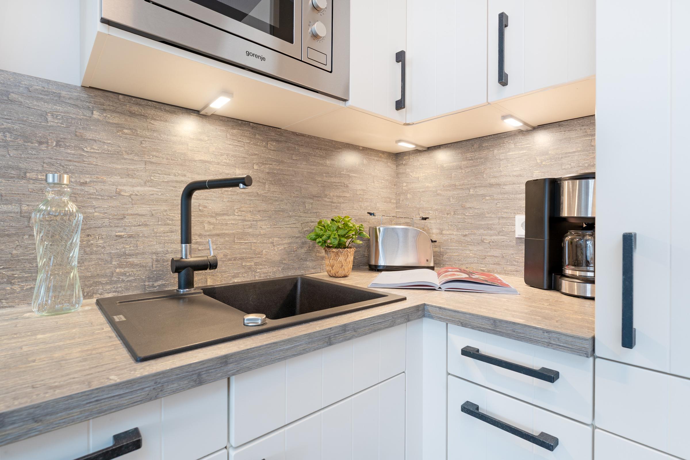Ein heller Flur mit Garderobe empfängt Sie und führt in das modern eingerichtete Wohnzimmer. Hier können Sie loungige Abende auf Ihrer Couch genießen, um z.B. in Ruhe ein Buch zu lesen. Die Couch lässt sich mühelos zu einer Schlafgelegenheit (160x200 cm) verwandeln. Für gemütliche Abende sorgt eine Docking Station, Soundsystem Philips BM50B im Wohnzimmer und Badezimmer, Playstation 4 sorgt für Abwechslung und gemeinsame Spieleabende. Die offene Küche ist komplett ausgestattet und macht das Kochen zum Genuss. Ihr Bad ist eine Wellness-Wohlfühloase mit schöner Dusche, Handtuchwärmer, WC und Föhn. Im Bad steht Ihnen sogar eine Waschmaschine für die Wäsche zwischendurch zur Verfügung. Das Schlafzimmer ist mit einem Doppelbett (2x 90x200 cm) und einem weiteren Schrank für Ihre Garderobe versehen. Auch hier wurde an einen weiteren Flat- Screen-TV gedacht. Hier werden Ihre Urlaubsträume wahr und Sie wachen am Morgen erholt und gestärkt für das nächste Ostsee-Abenteuer auf. Ihre Wohlfühltemperatur können Sie über das Einstellen der Fußbodenheizung bestimmen. Die Terrasse, lädt dazu ein bei gutem Wetter das Frühstück zu genießen oder den Abend bei einem Glas Wein ausklingen zu lassen.