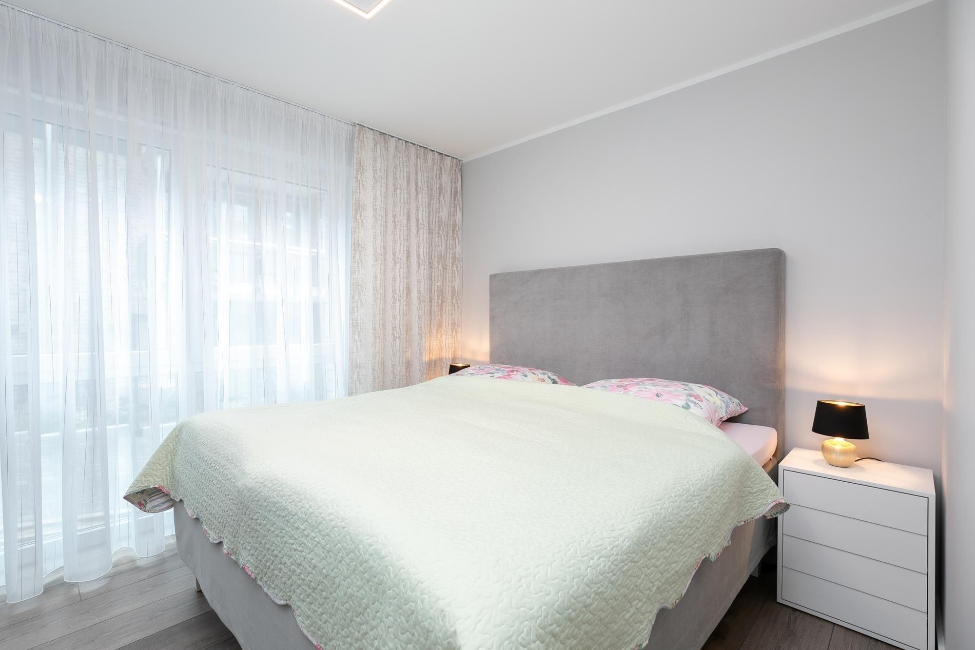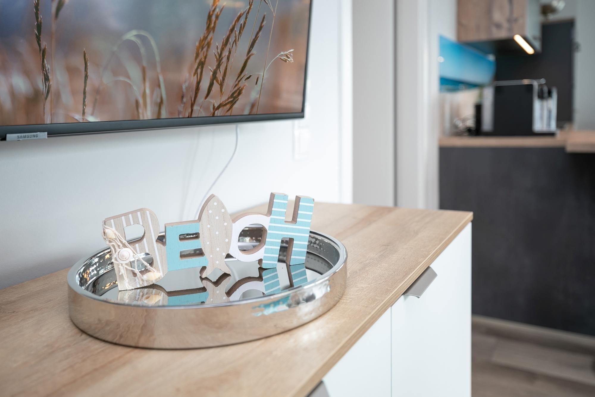 Das Herzstück dieses Domizils bildet der offene Wohnbereich, hier lassen sich erholsame Stunden zum Lesen oder Fernsehen auf dem Sofa verbringen. Eine automatische Belüftung sorgt für ein ausgeglichenes Klima. Zur Nachtruhe können Sie ziehen Sie sich ins separate Schlafzimmer mit modernem Boxspringbett (2x90x200cm) zurückziehen, die gesamte Wohnung lässt sich über Außenjalousien verdunkeln. Sollte es erforderlich sein, besteht die Möglichkeit auf das Schlafsofa ins Wohnzimmer auszuweichen. Eine offene Küche mit 4-Platten-Ceran Kochfeld mit integrierter Dunstabzugshaube, Mikrowellen-/Backofenkombi, Spülmaschine, Kühlschrank, Gefrierfach, Kaffeemaschine, Toaster und Wasserkocher bietet alles für den begeisterten Hobbykoch. Die Fußbodenheizung im Badezimmer sorgt für wohligen Komfort, die bodentiefe Dusche, Handtuchheizung und ein Fön komplettieren die Ausstattung. Ein Abstellraum mit Garderobenschrank verschafft zusätzlichen Stauraum. Ihre Tasse frischen Morgenkaffee können Sie auf dem 12 m² großen möblierten überdachten Eckbalkon genießen.
