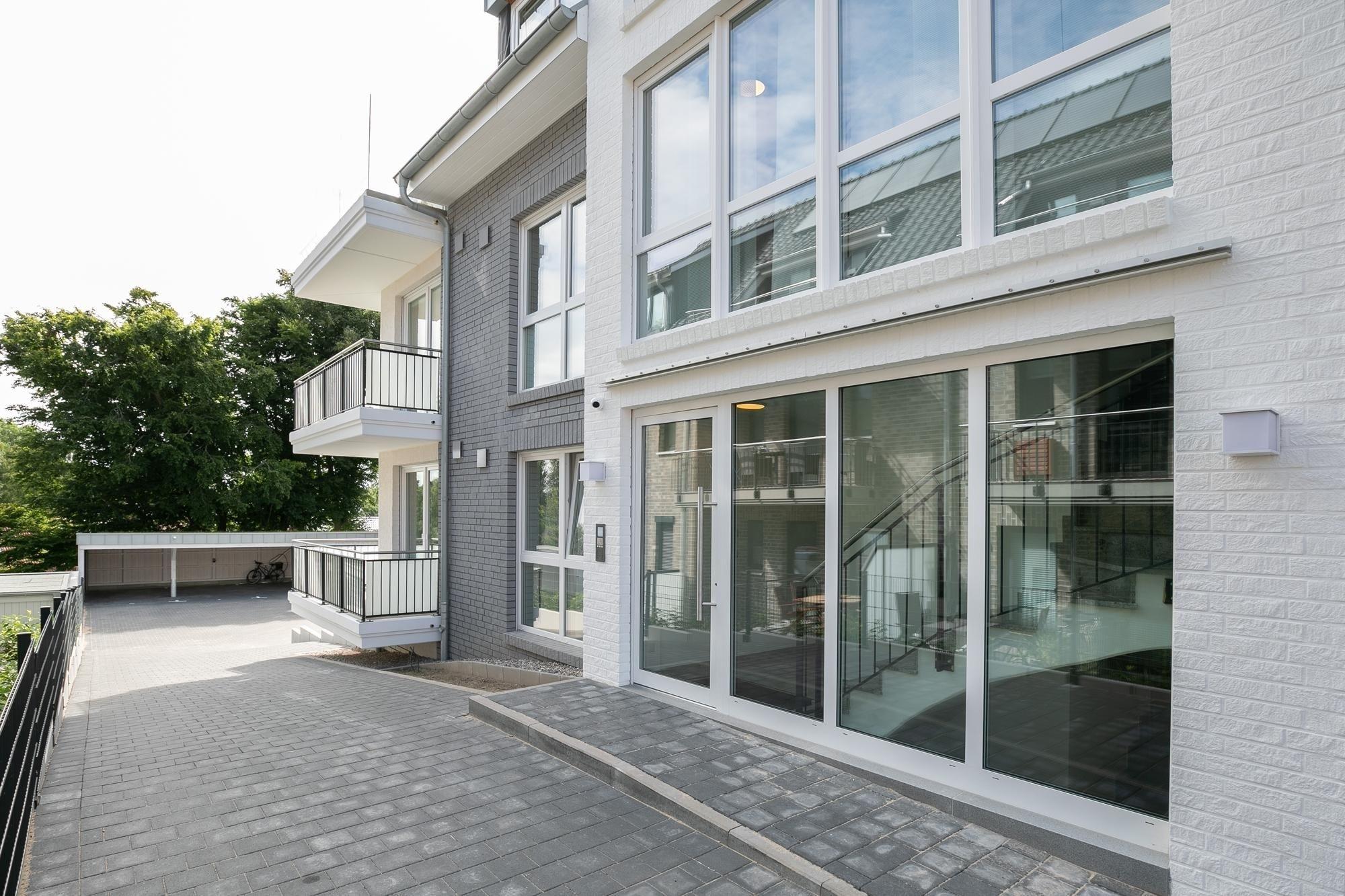 Moderne Ferienwohnung mit Balkon und grünem Ausblick in Scharbeutz, nahe Ostsee und Strand.