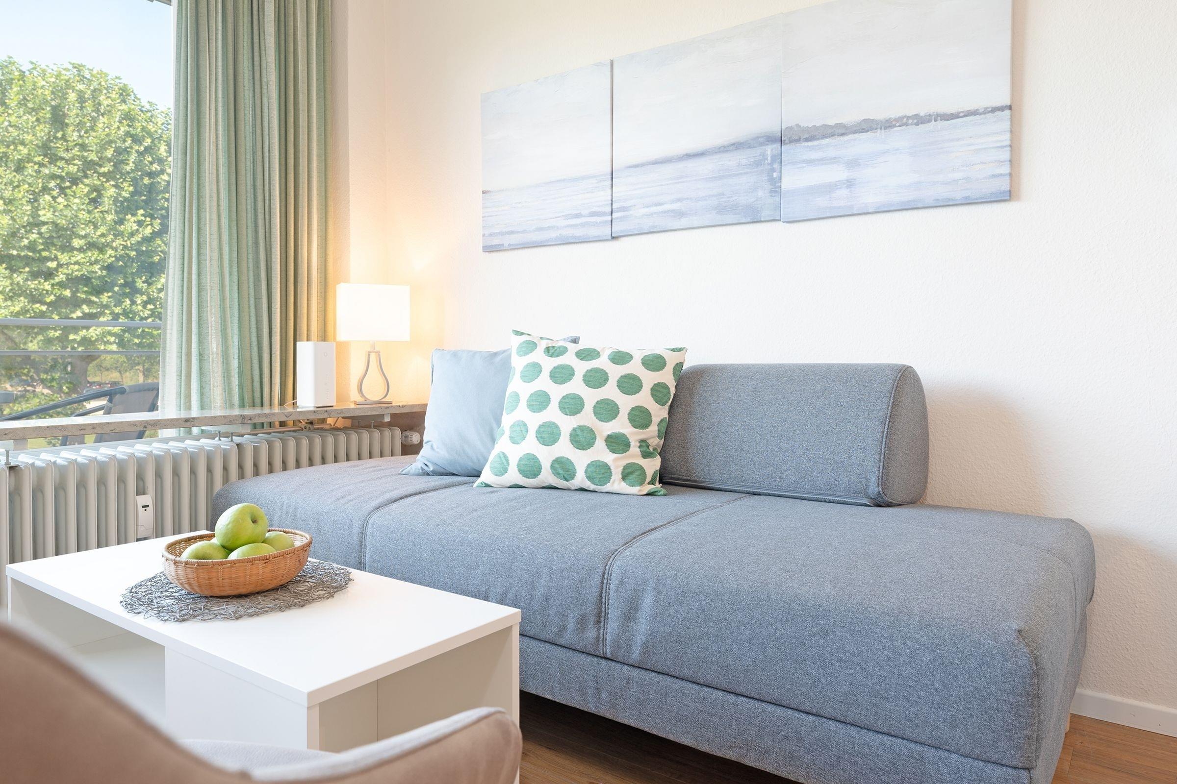 Moderne Ferienwohnung Möwensuite mit Balkon, nur 50 m vom Strand und 150 m vom Ortskern Scharbeutz entfernt.