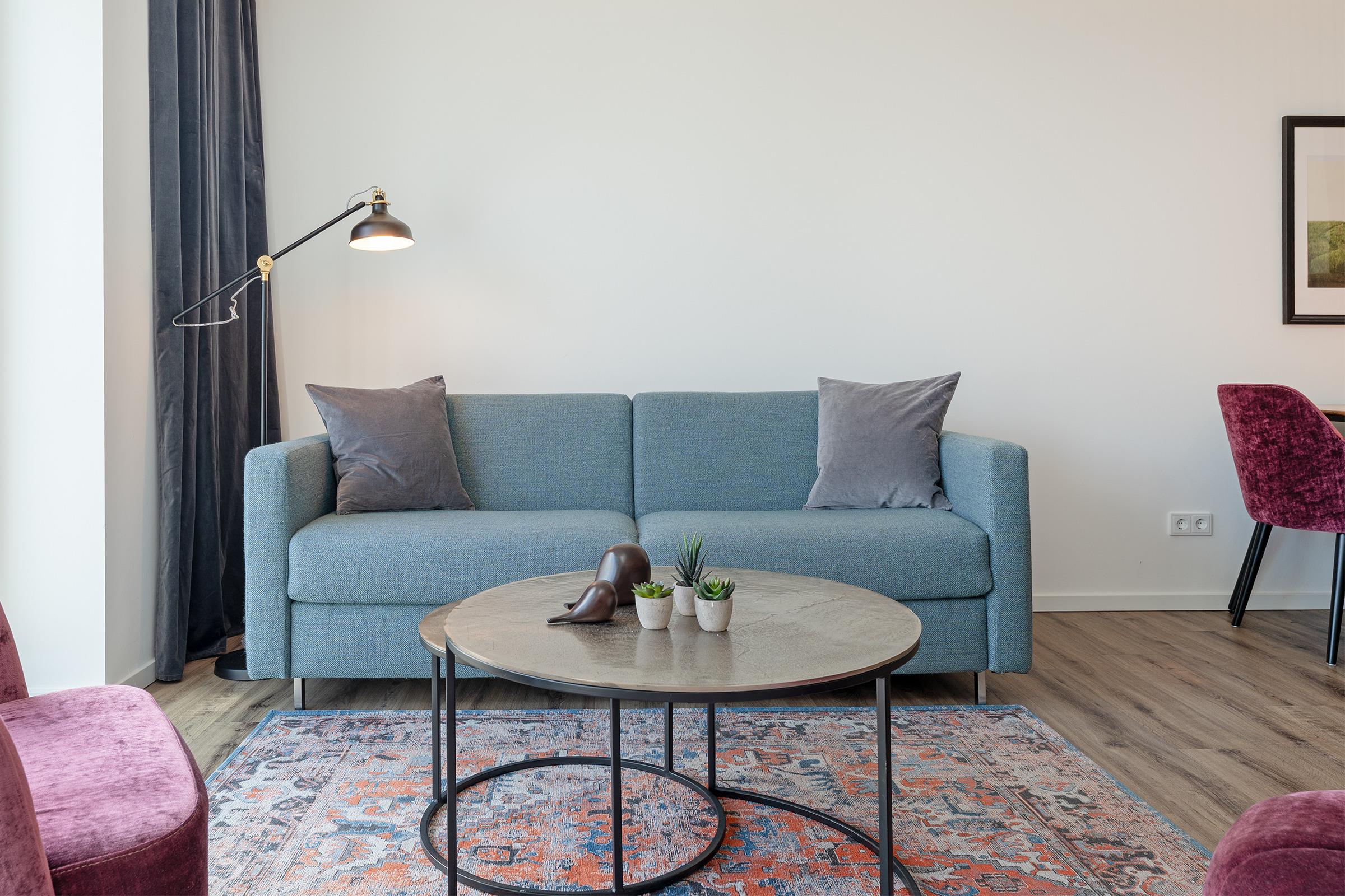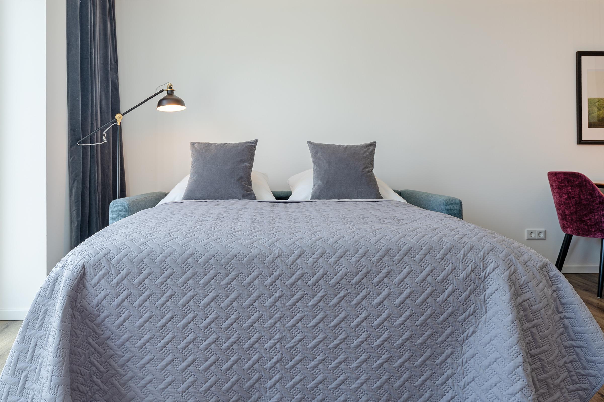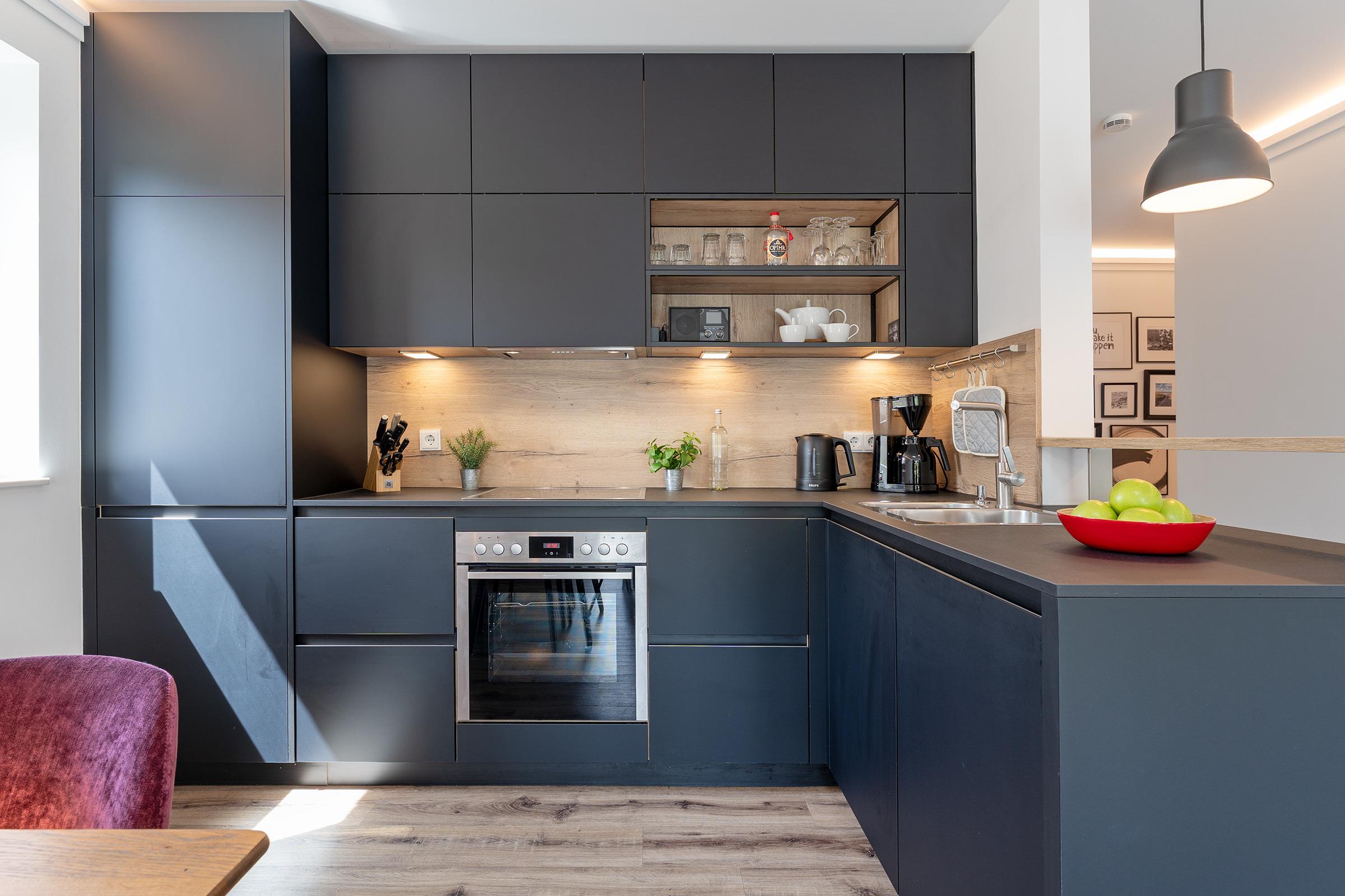 Durch die harmonischen Wandfarben und das dimmbare Voute Lichtkonzept wirken Flur und Wohnbereich besonders großzügig. Eine Schlafcouch (160x200 cm) und Smart-TV laden im Wohnzimmer zu gemütlichen Abenden ein. Eine offene moderne Küchenzeile mit 4-Feld-Induktionsherd und Backofen, Kühlschrank mit Gefrierfach, Spülmaschine, Kaffeemaschine, Toaster, Wasserkocher und hinter einer Küchenfront verstecktem Waschtrockner sowie eine Essecke runden diesen Mittelpunkt der Wohnung ab. Vom Wohnzimmer aus gelangen Sie auch auf den möblierten Balkon in Süd-Ost Ausrichtung, auf dem Sie die Sonnenstunden optimal ausnutzen können. Im Schlafzimmer mit Smart-TV verlockt ein Doppelbett (2x 90x200 cm, 2 unterschiedliche Härtegrade) zu erholsamen Nächten. Für Ihre Urlaubsgarderobe ist im Schiebetürenschrank genug Platz vorhanden. Auch das Tageslicht-Bad kann in dieser Wohnung mit Design punkten und verfügt über eine bodentiefe Dusche, Fön, WC und Schminkspiegel. In der gesamten Ferienwohnung sorgt eine Fußbodenheizung für wohlige Wärme. Zur Nachtruhe verdunkeln Sie die Wohnung mit elektrischen Außenjalousien.