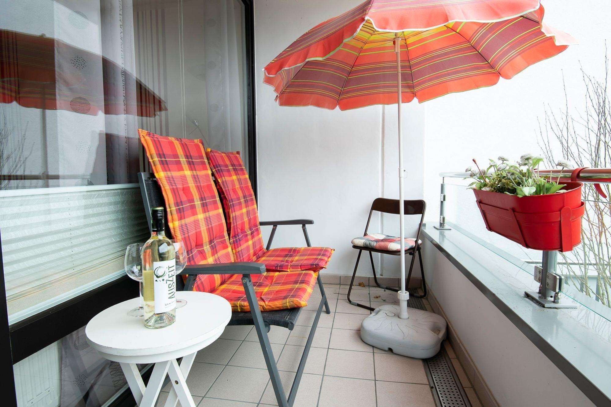 Moderne Ferienwohnung mit Balkon, Meerblick und beheiztem Pool in Scharbeutz, ideal für Familien und Strandurlaub.