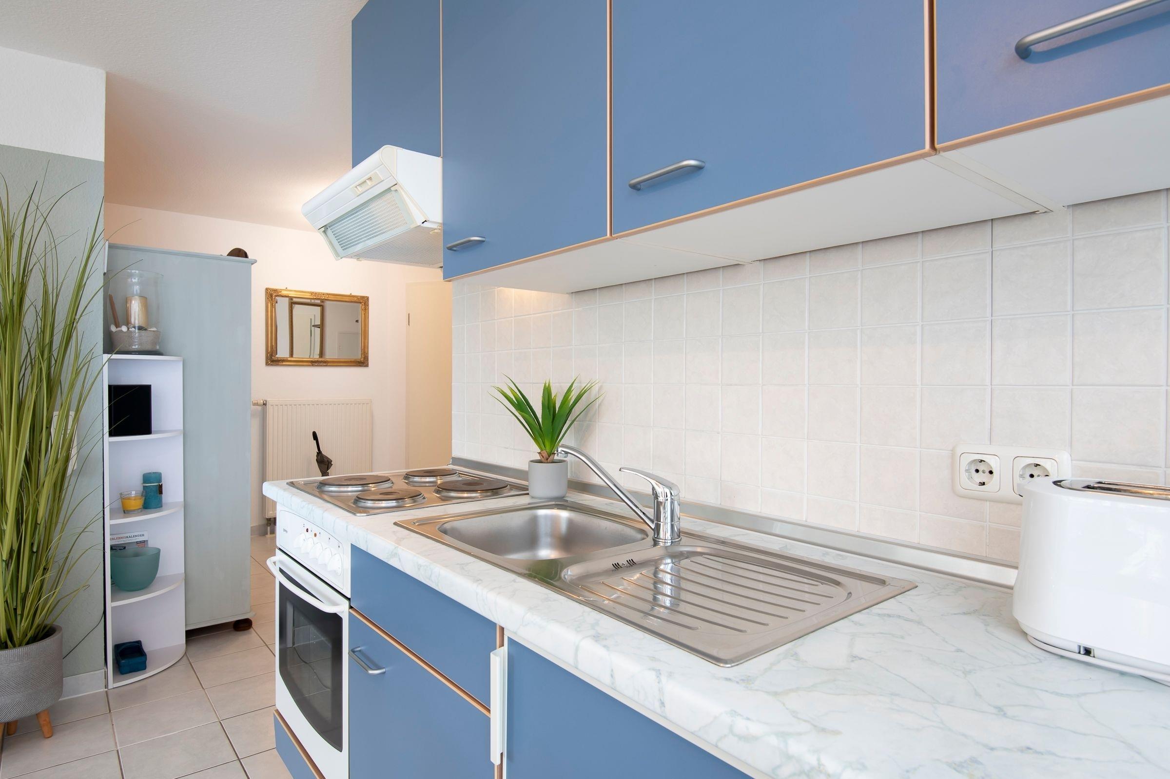 Im geschmackvoll eingerichteten Wohn-/Ess- und Kochbereich ist an alles gedacht worden, um Ihnen einen angenehmen Urlaub zu bescheren. Auf der kuscheligen Couch können Sie es sich vor dem Fernseher gemütlich machen. Diese können Sie im Handumdrehen in zwei weitere Schlafplätze (2x 80x200 cm) verwandeln. Direkt daneben bietet der rustikale Holztisch Platz zum Essen oder Spielen. Sollte Ihnen einmal nichts auf den Speisekarten der umliegenden Restaurants finden, können Sie sich in der kleinen gut ausgestatteten Küche selbst verwöhnen. Genießen Sie die gute Ostseeluft auf dem überdachten, möblierten Eckbalkon, der Sie zu lauschigen Abenden einlädt. Gleich nebenan im separaten Schlafzimmer verbringen Sie erholsame Nächte im bequemen Doppelbett (2x 80x200cm). Zur täglichen Körperpflege steht Ihnen ein Tageslichtbad mit Dusche (Duscheinstieg: ca. 35 cm) zur Verfügung.