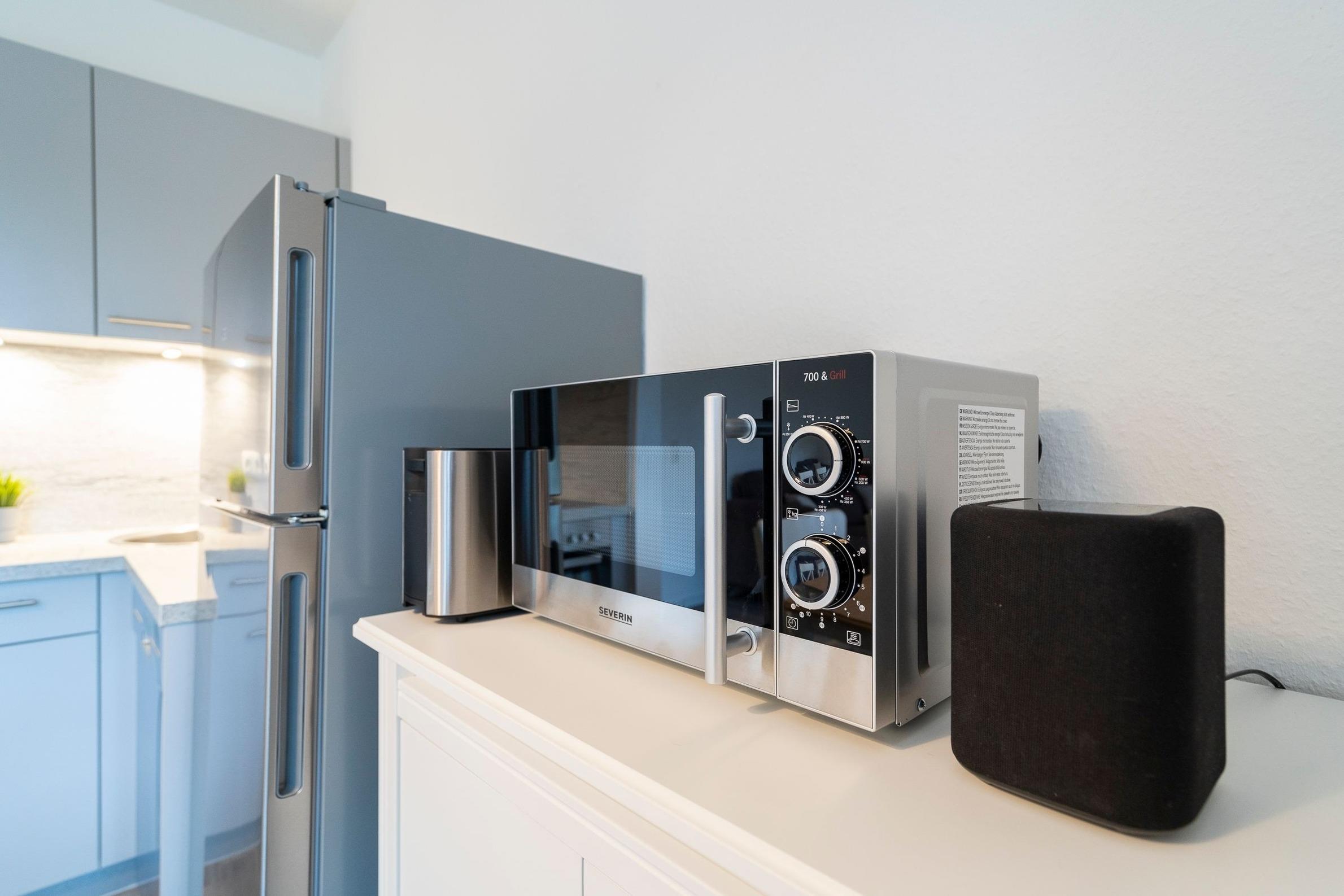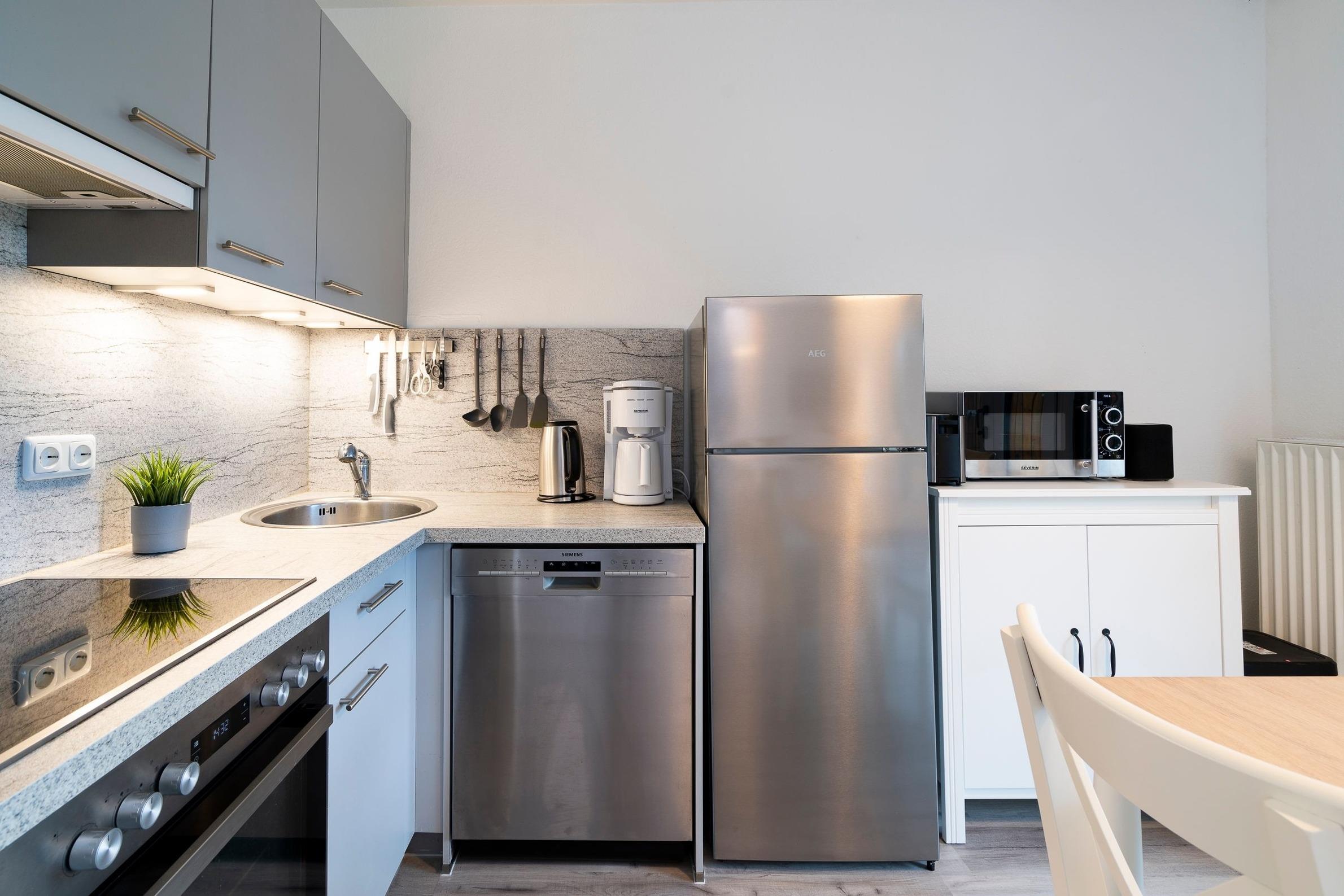 Die ca. 41 m² große Wohnung begrüßt Sie mit maritimem Flair. Im offenen, lichtdurchfluteten Wohn-, Ess- und Kochbereich erwarten Sie ein kuscheliges Sofa, das sich abends mit wenigen Handgriffen in eine komfortable Schlafstätte (135x180 cm) verwandeln lässt, sowie ein Esstisch und eine modern ausgestattete Küche. Durch die große Fensterfront mit Schiebetür gelangen Sie auf die Terrasse mit kleinem Garten, die an lauschigen Sommerabenden zu einem guten Glas Wein einlädt. Im Schlafzimmer finden Sie im Doppelbett (2x 80x200 cm) Ruhe und Erholung und starten nach einer erfrischenden Dusche im angrenzenden Bad am Morgen ausgeruht in den neuen Urlaubstag. Gleich 2 Smart-TVs in Wohn- & Schlafzimmer sorgen für ausreichende Unterhaltung. Der Smart-TV im Schlafzimmer besitzt keinen TV-Anschluss und kann zur Selbstanmeldung bei Streaming-Diensten genutzt werden.