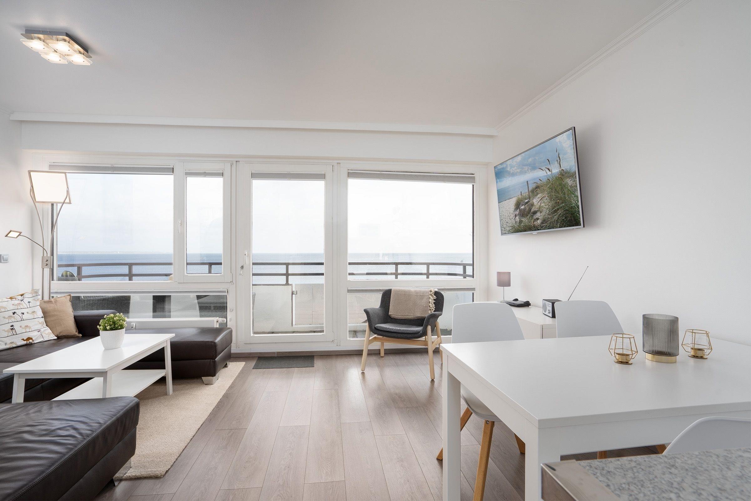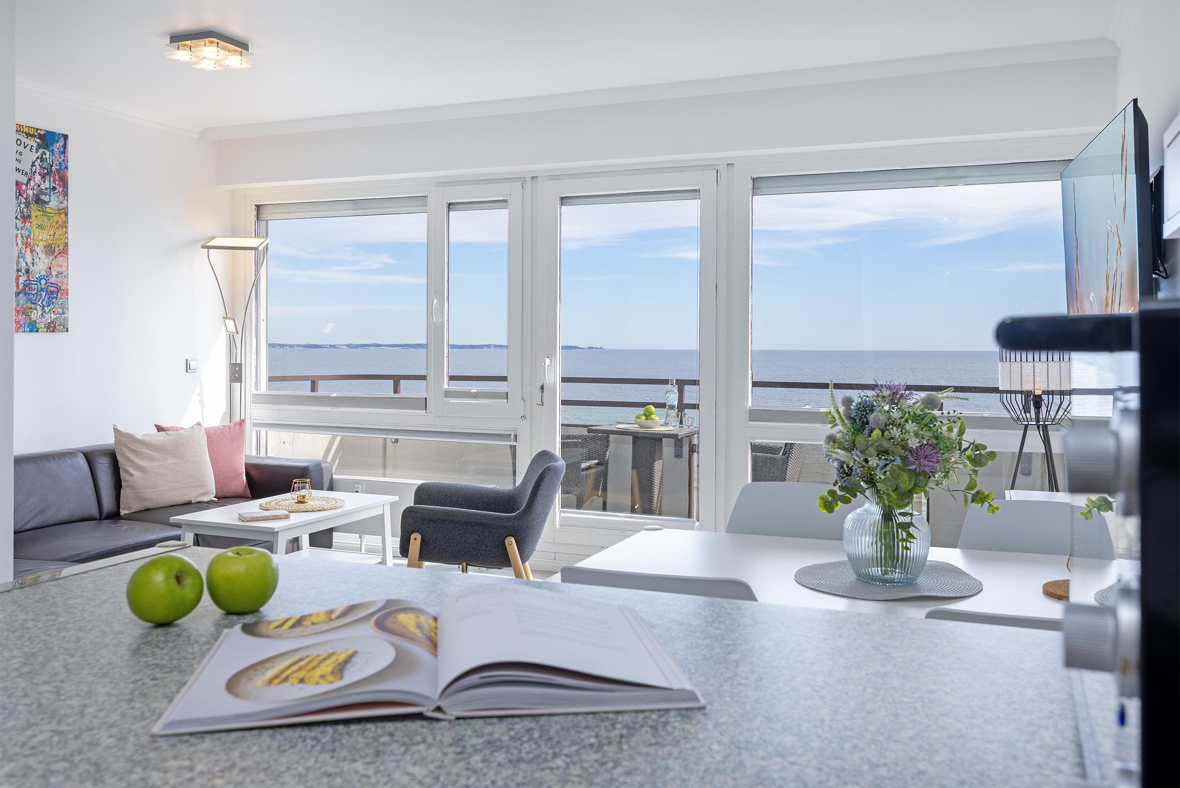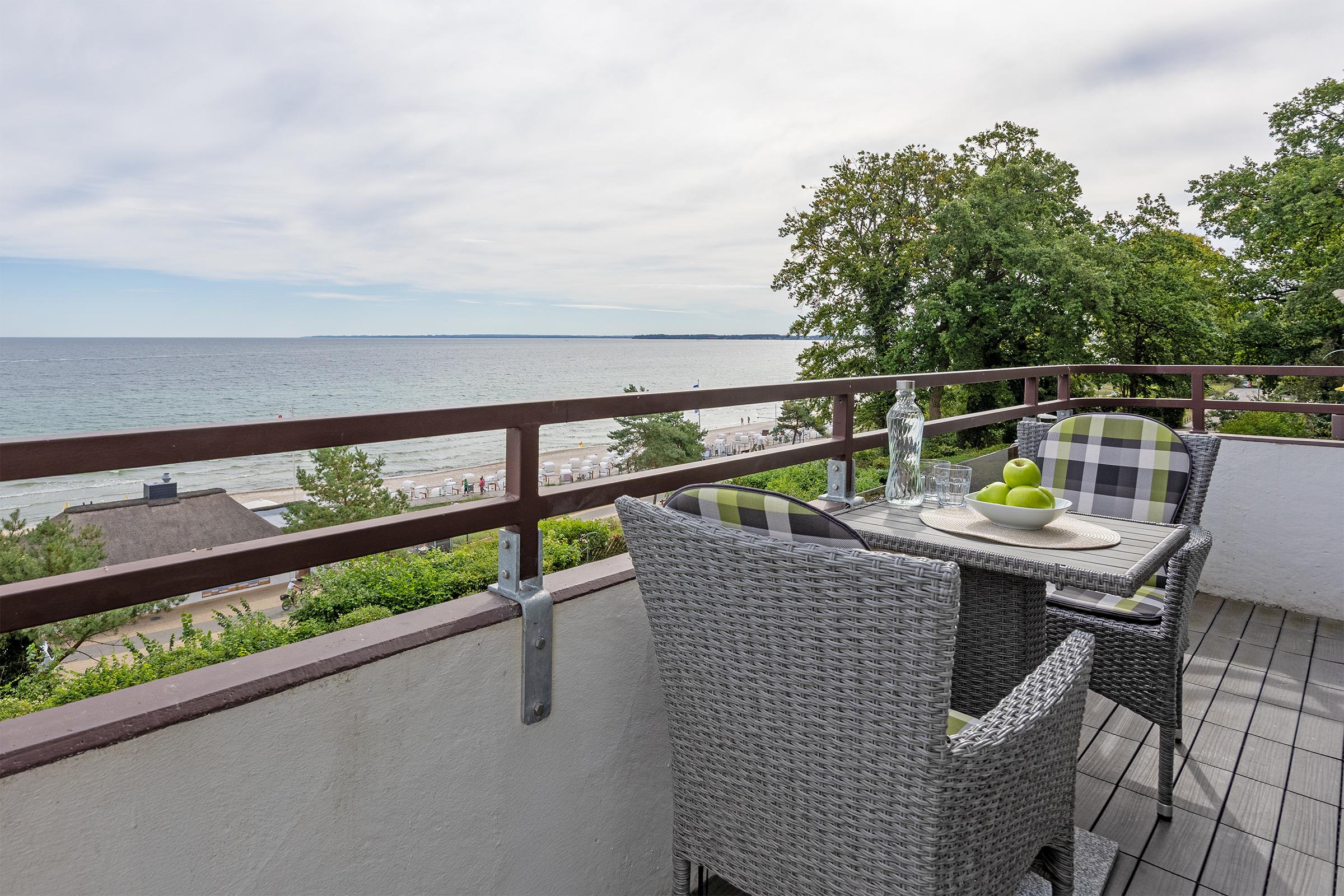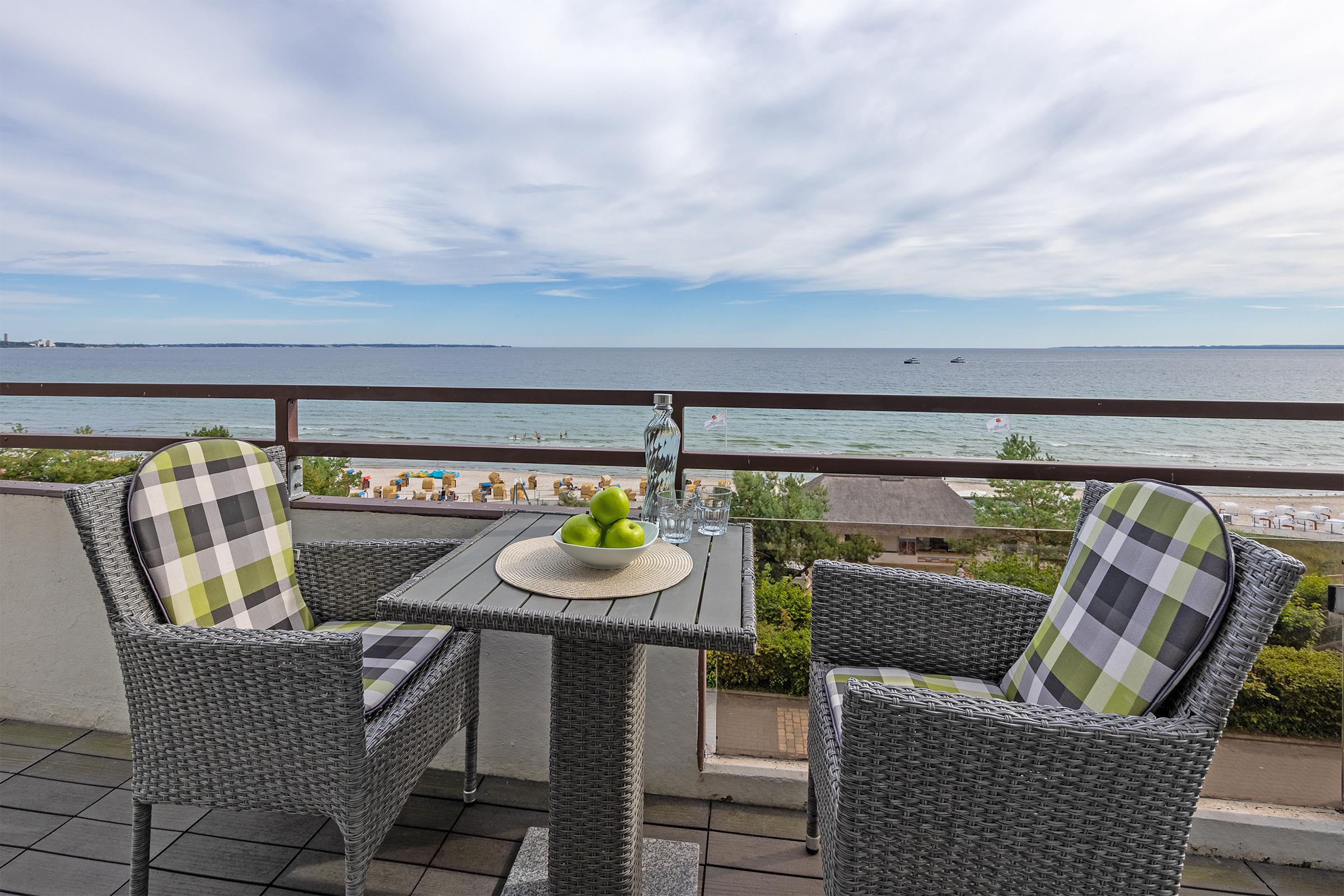 Moderne Ferienwohnung in Scharbeutz mit Meerblick, Balkon und Sauna, ideal für einen entspannten Strandurlaub.