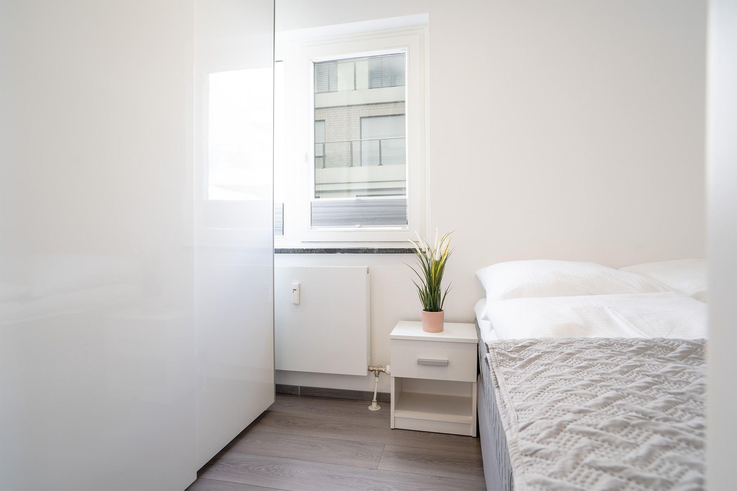 Schlafzimmer 2: 1 Boxspring-Doppelbett (140x200 cm), TV, Kleiderschrank, Verdunkelung (Plissee)