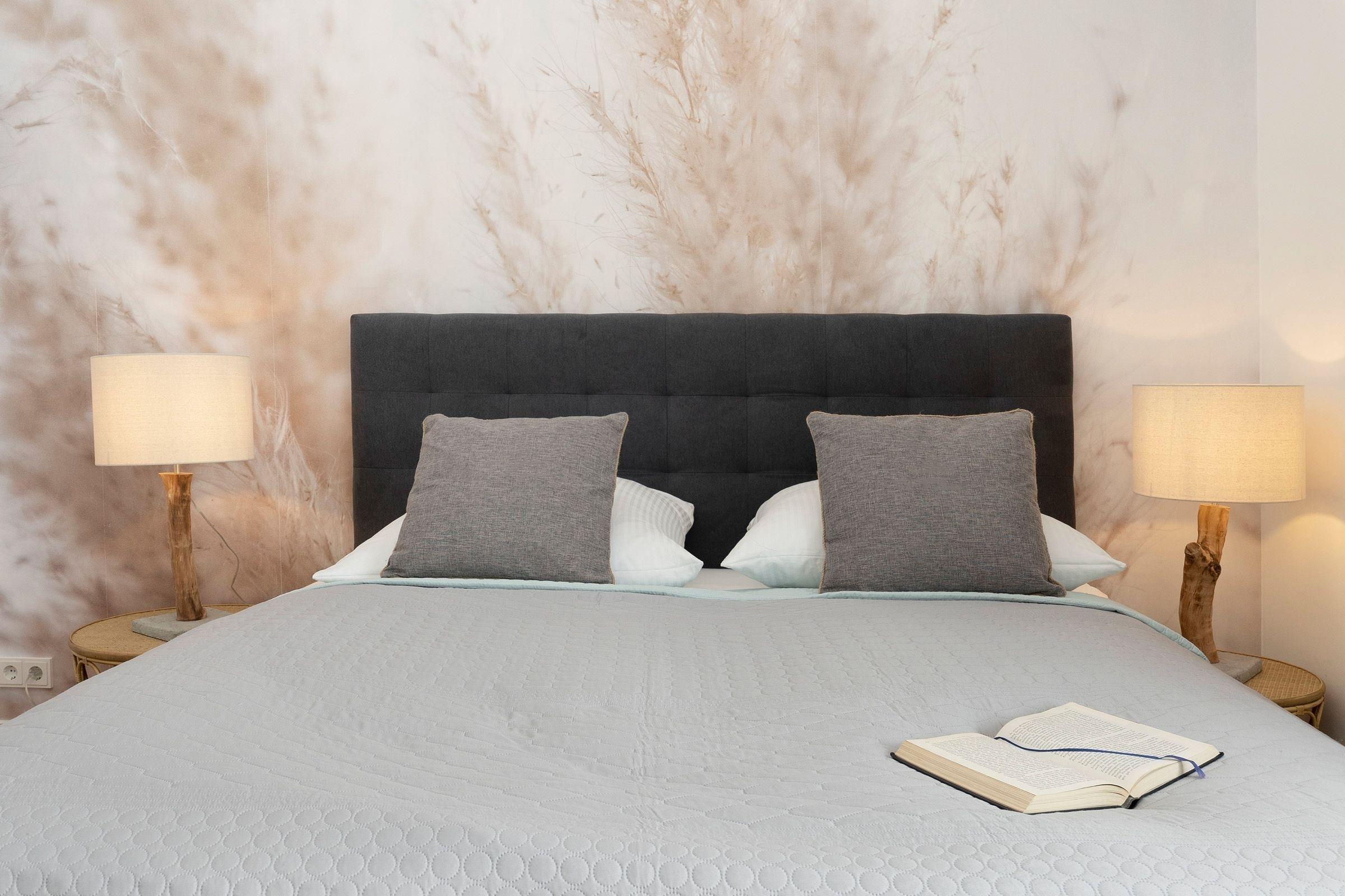 Schlafzimmer (2. OG): 1 Boxspring-Doppelbett (180x200 cm), TV, Platz für Babybett, Verdunkelung (Verdunklungsgardinen), Bad en suite