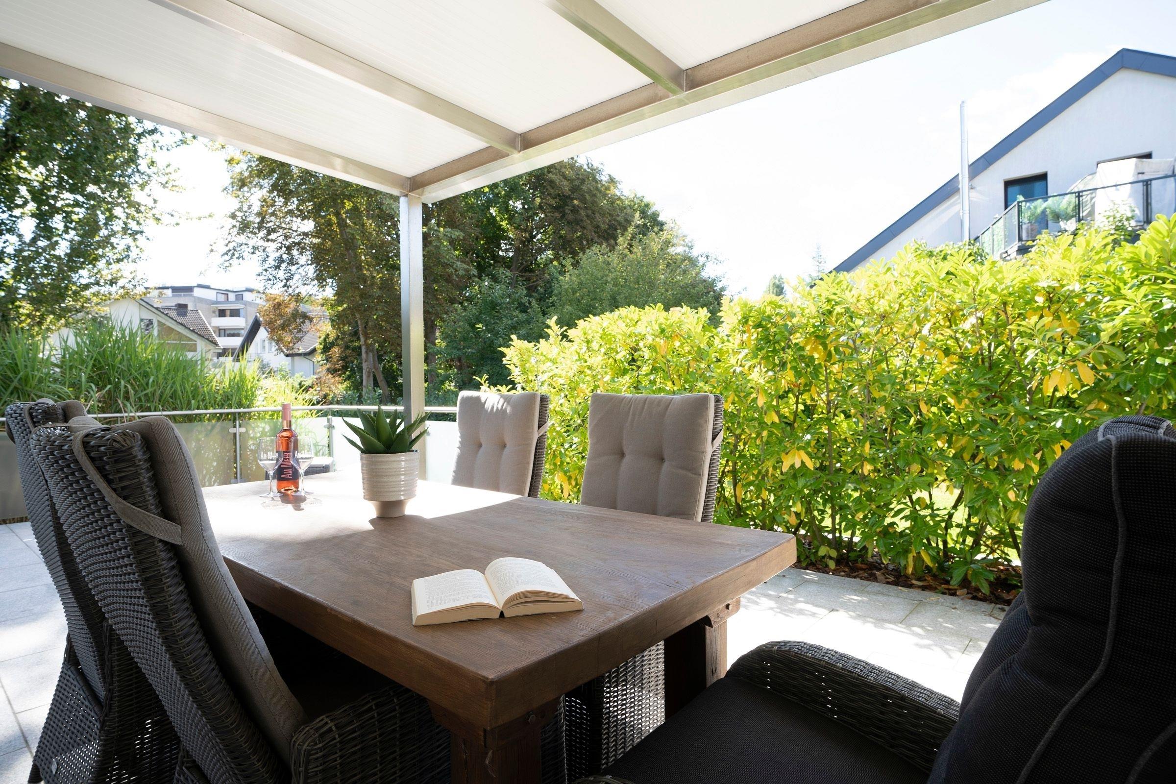 Gemütliche Ferienwohnung mit Sauna und Terrasse in Scharbeutz, nur 500 m vom Strand entfernt.