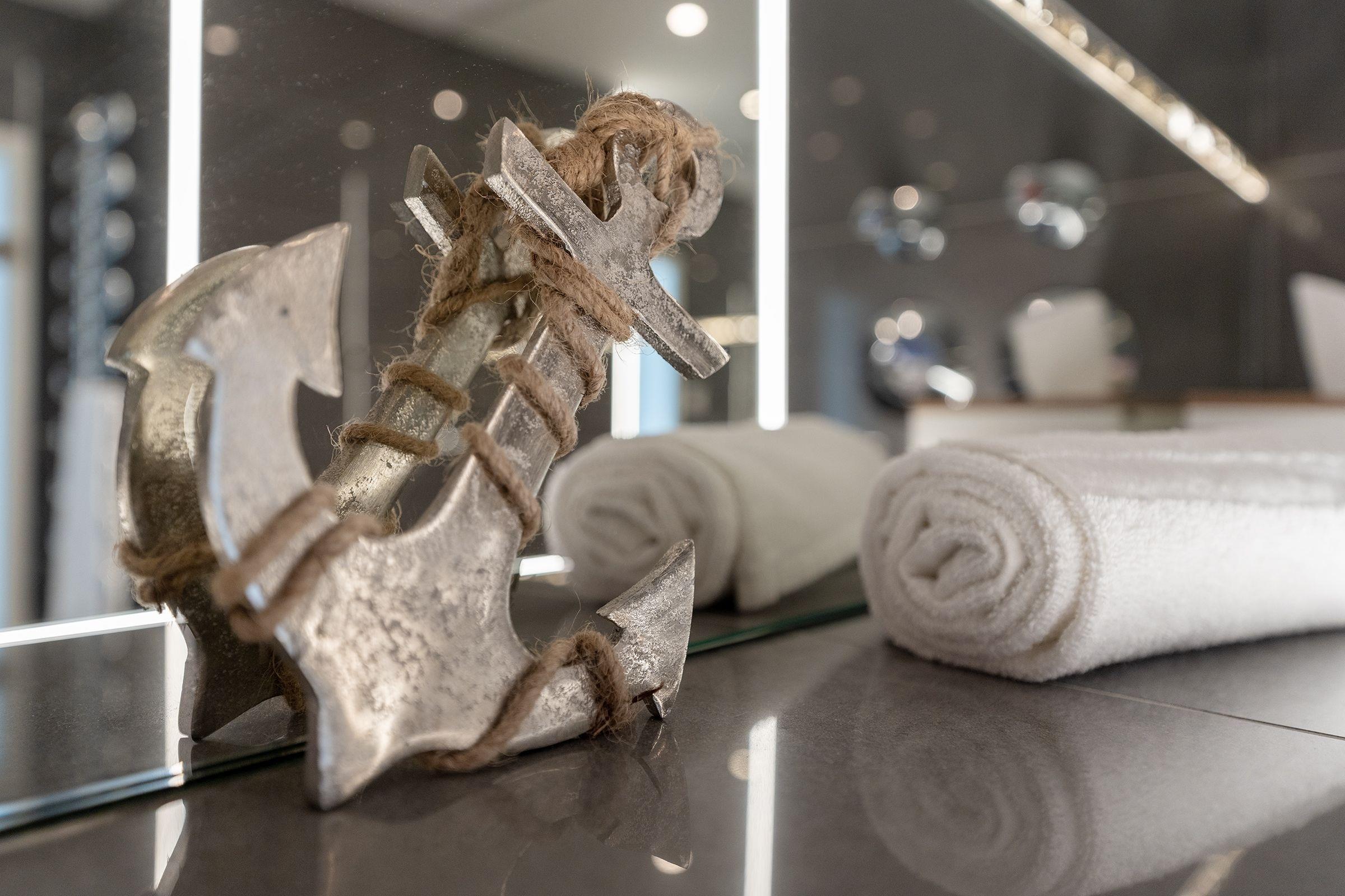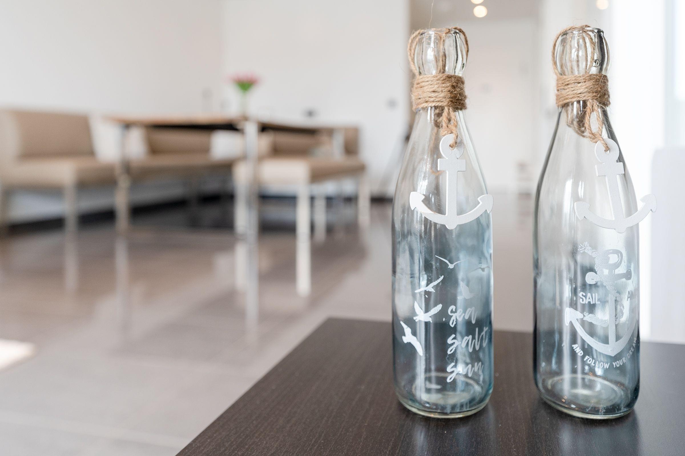 Stellen Sie sich vor, Sie könnten von Ihrem Balkon aus die Ostsee sehen – wäre das nicht wundervoll? Die Ferienwohnung mit dem zauberhaften Namen Meerverliebt erfüllt genau diesen Wunsch. Hier werden Sie sich sicher sofort ins Meer verlieben ... Ein Fahrstuhl bringt Sie bequem in Ihr Zuhause auf Zeit und ein gemütliches Sofa empfängt Sie im Wohnbereich. Nehmen Sie Platz und spannen Sie vor dem TV-Gerät aus – oder genießen Sie Ihre Auszeit auf dem möblierten Balkon, mit diesem wunderbaren Panorama. Stoßen Sie auf Ihren Urlaub an oder nehmen Sie sich ein gutes Buch. Ein Sonnenschirm schütz Sie vor zu viel Sonne. Die zum Wohnbereich hin offene Küche ist gut ausgestattet. Vielleicht haben Sie sich von Ihrem Urlaubsort inspirieren lassen und möchten hier neue Rezepte ausprobieren? Für die Nacht lässt sich das Sofa im Wohnzimmer in ein Doppelbett (ca. 144x192 cm) verwandeln. Zusätzlich erwartet Sie im separaten Schlafzimmer ein Doppelbett (2x 90x200 cm) zum Träumen. Für Ihre Urlaubsgarderobe steht hier ein Kleiderschrank bereit. In beiden Räumen ist genug Platz vorhanden, um ein Babybett aufzustellen. Das Badezimmer bietet mit einer offenen Dusche, einer Badewanne sowie einem Handtuchwärmer eine Menge Komfort. Eine Fußbodenheizung in den Wohnräumen sowie im Badezimmer sorgt insgesamt für eine wohlige Atmosphäre.