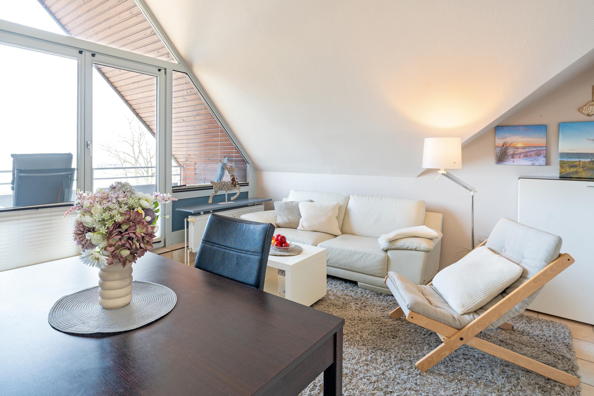 Die Ostsee vor der Tür! Verbringen Sie Ihren nächsten Scharbeutz-Urlaub in dieser strandnahen 2-Zimmer-Dachgeschoss-Ferienwohnung mit Balkon. Mit 44 qm Wohnfläche ist dieses Feriendomizil ideal für 2 Urlaubsgäste geeignet.