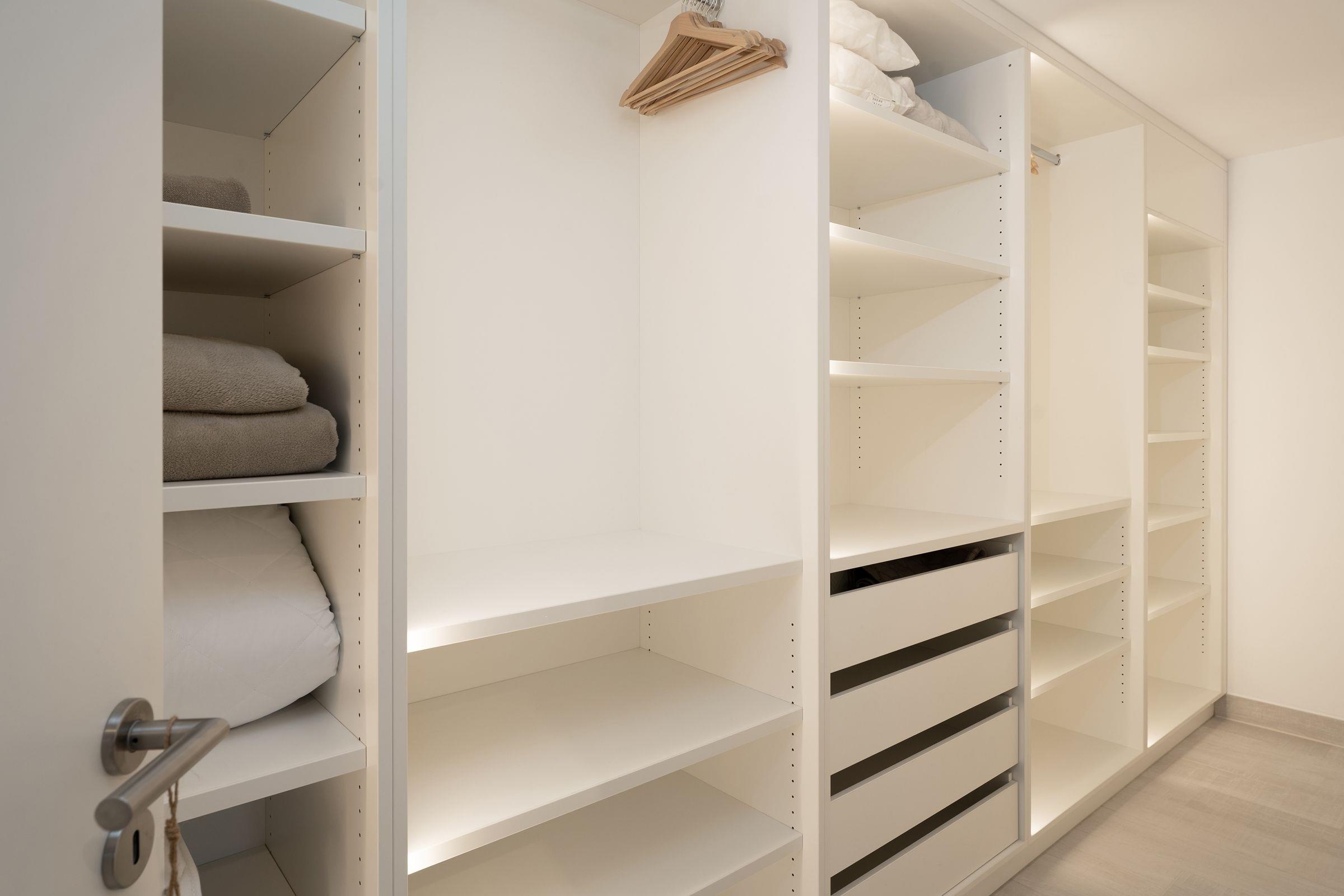 Schlafzimmer 1: 1 Boxspring-Doppelbett (200 x 220cm), Kleiderschrank, TV, Verdunkelung: Rollo, Platz für Babybett
