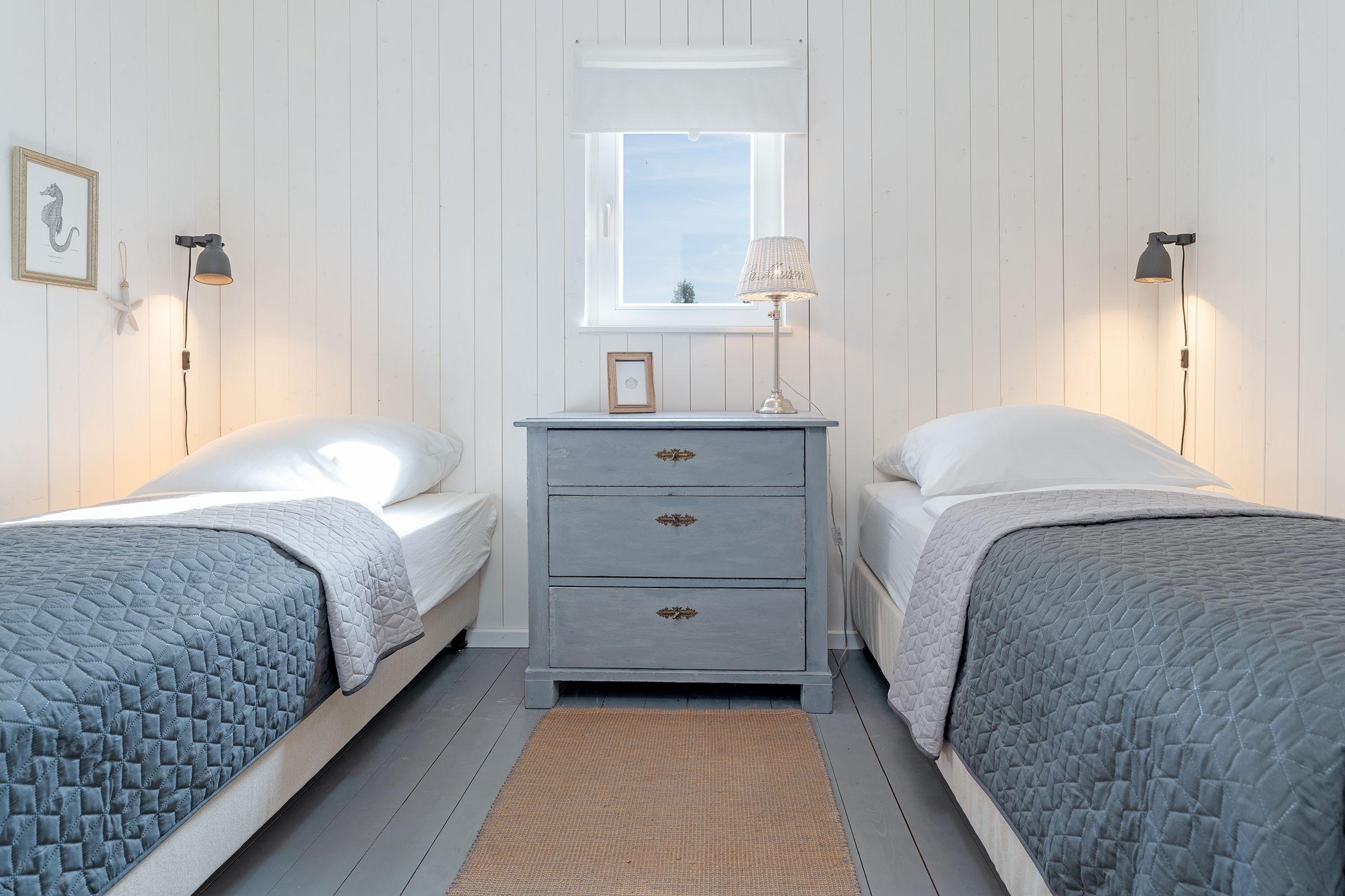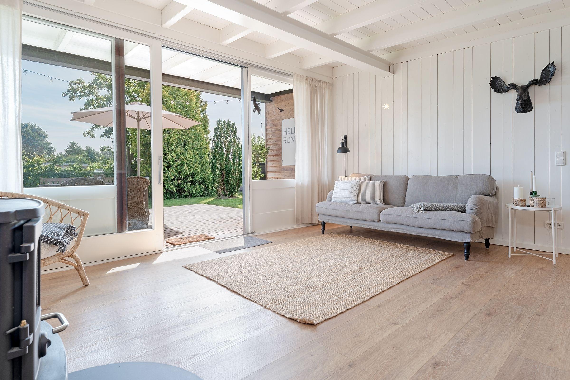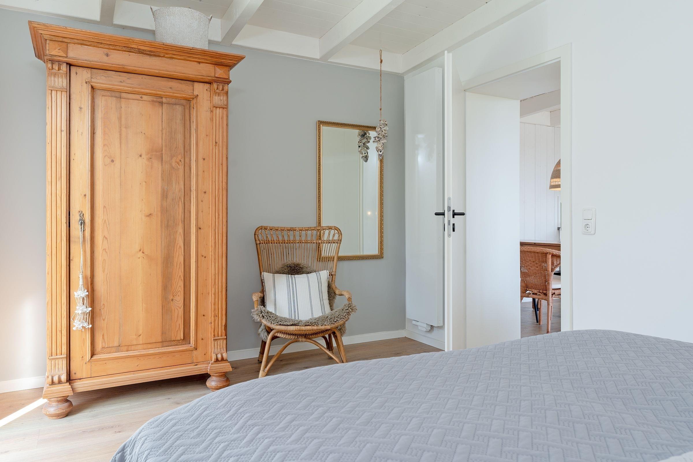 Dieses liebevoll eingerichtete Feriendomizil verfügt über eine moderne Küche inklusive 4-Platten-Induktionskochfeld, Spülmaschine, Kaffeefiltermaschine, Kühlschrank sowie einen separaten Gefrierschrank. Auch ein Kombigerät mit Backofen- und Mikrowellenfunktion steht Ihnen für das Zubereiten von warmen Speisen zur Verfügung. Der fließende Übergang von der Küche in den lichtdurchfluteten Wohn- und Essbereich wird ergänzt durch einen Ofen, der dazu einlädt, gemütliche Stunden mit seinen Liebsten zu verbringen. Darüber hinaus ist der Wohnbereich mit einer Bluetooth-Box, die Sie bequem mit ihrem mobilen Endgerät verbinden können, und einem Smart-TV ausgestattet. In direktem Anschluss an den Wohnbereich erwartet Sie eine große, teilweise überdachte Holzterrasse. Von hier aus gelangen Sie in den großen, eingewachsenen und nicht einsehbaren Garten. Das erste Schlafzimmer bietet neben einem geräumigen Kleiderschrank, Platz für 2 Personen in 2 Einzelbetten (je 90 x 200cm), die je nach Belieben nebeneinander oder separat gestellt werden können. Im zweiten Schlafzimmer befinden sich 2 weitere Einzelbetten (je 90 x 200cm), sowie eine Kommode für Ihre Urlaubsgarderobe. Ihr Urlaub in diesem Ferienhaus wird abgerundet durch eine Wohlfühloase bestehend aus einem Badezimmer mit Waschbecken und Dusche, sowie einem weiteren Bad, ausgestattet mit Waschbecken und WC. An allen Fenstern in diesem Ferienhaus ist Sichtschutz vorhanden, bestehend aus Rollos oder Gardinen.