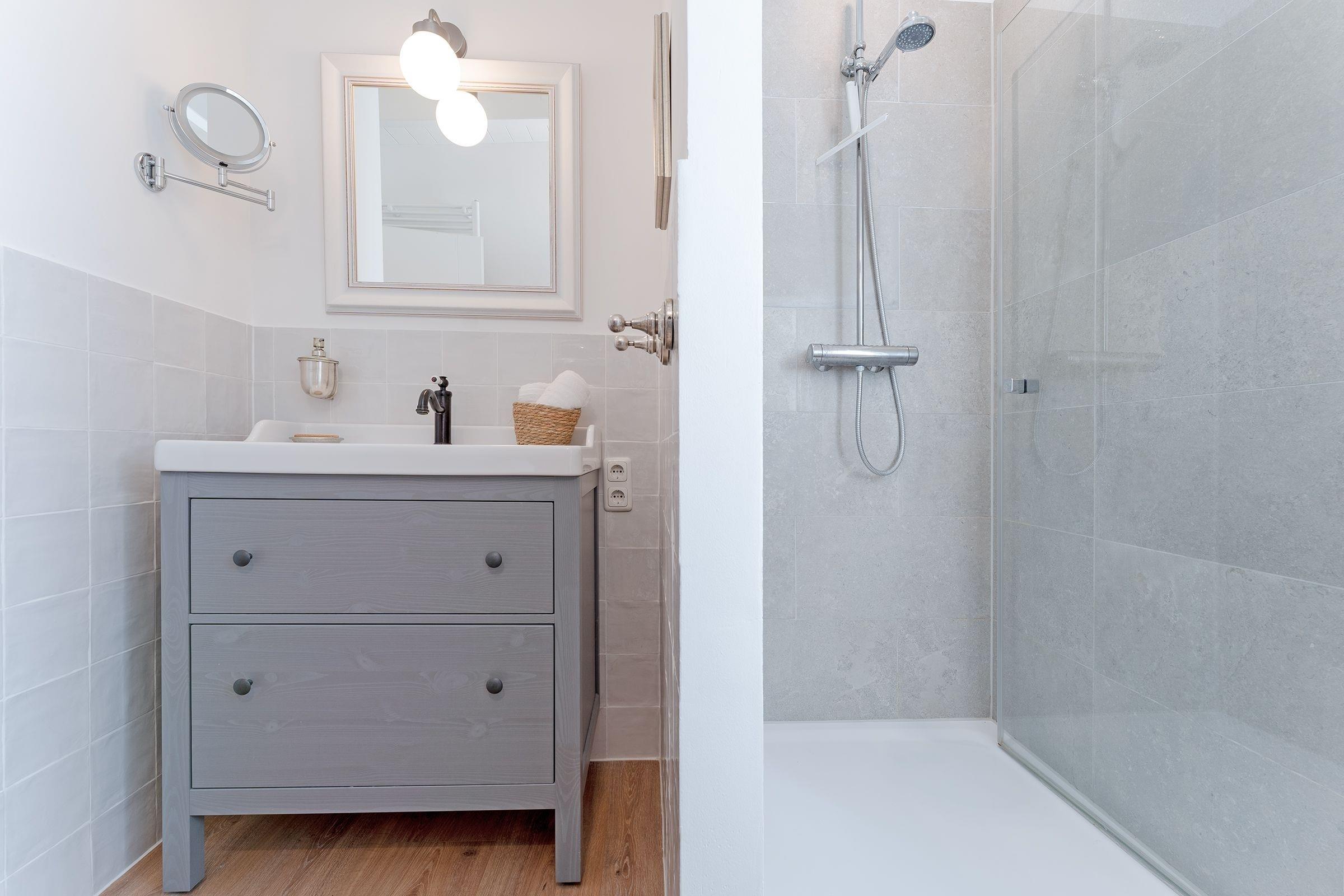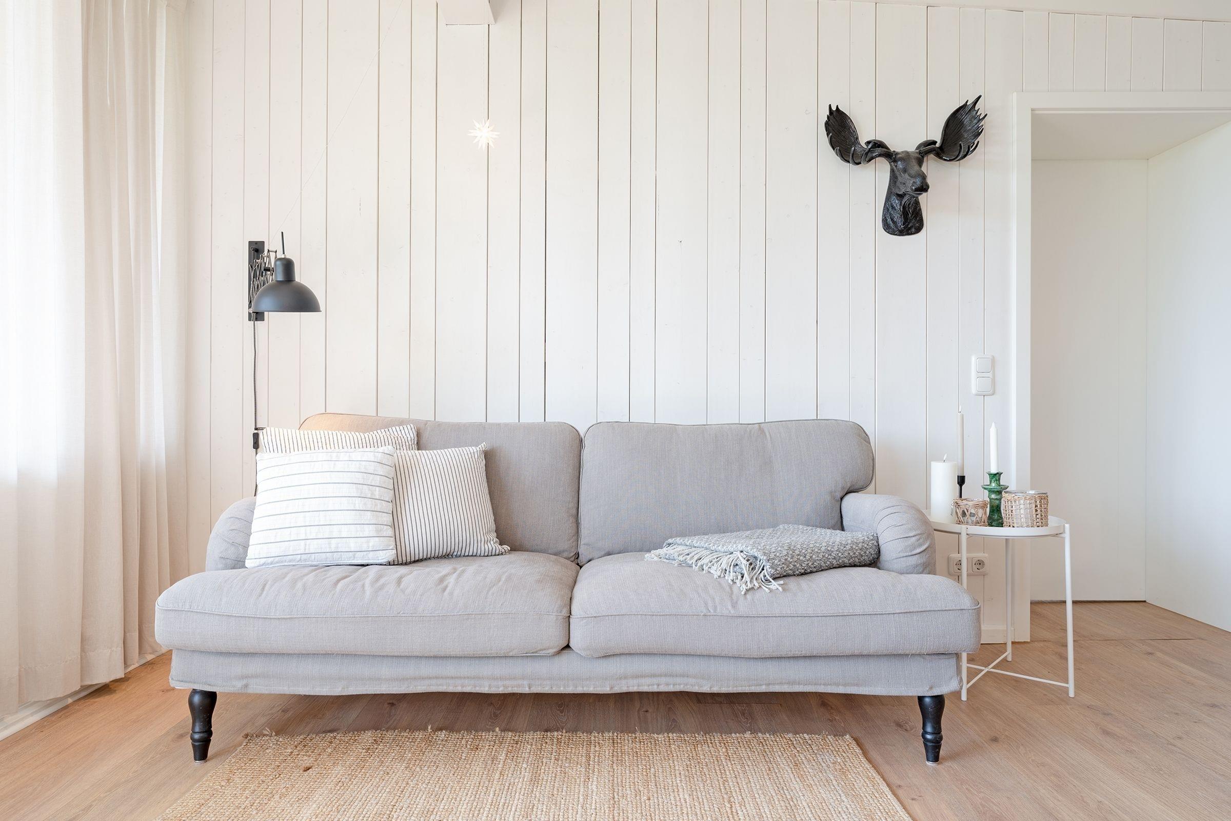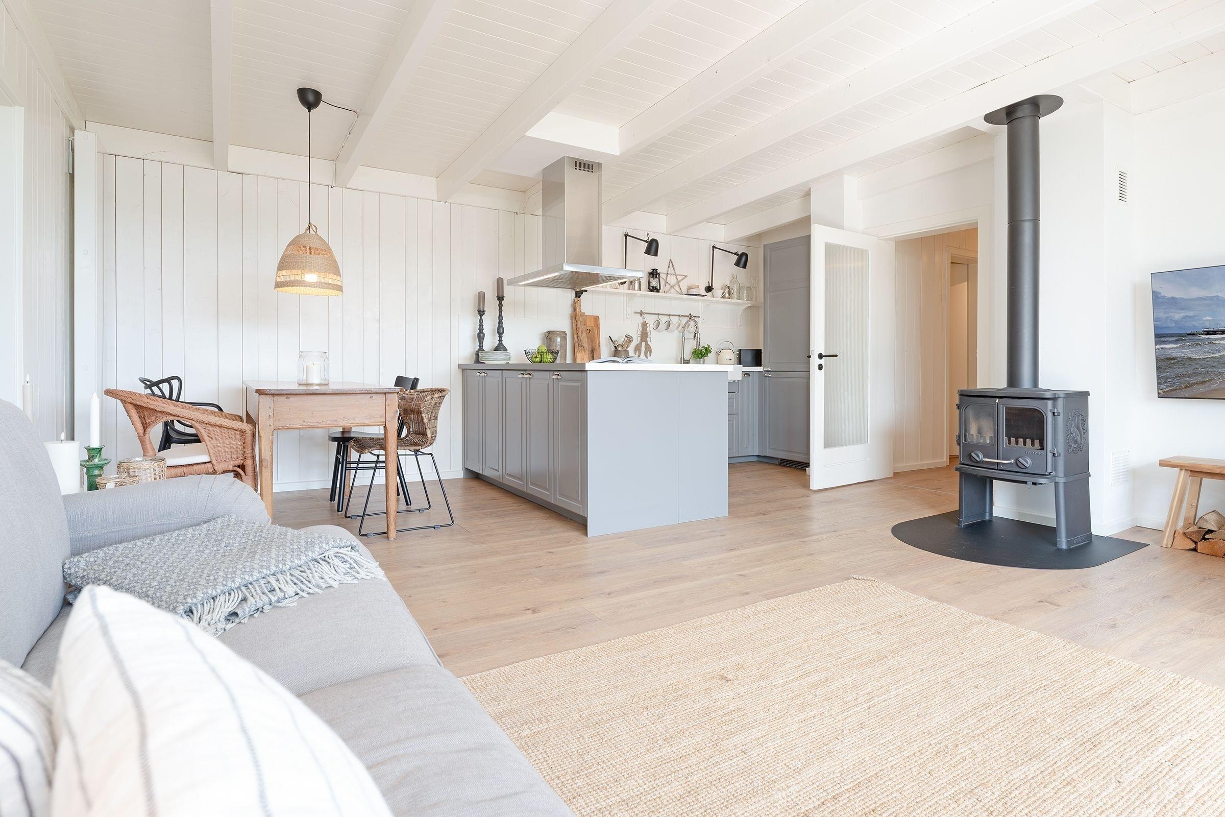 Dieses liebevoll eingerichtete Feriendomizil verfügt über eine moderne Küche inklusive 4-Platten-Induktionskochfeld, Spülmaschine, Kaffeefiltermaschine, Kühlschrank sowie einen separaten Gefrierschrank. Auch ein Kombigerät mit Backofen- und Mikrowellenfunktion steht Ihnen für das Zubereiten von warmen Speisen zur Verfügung. Der fließende Übergang von der Küche in den lichtdurchfluteten Wohn- und Essbereich wird ergänzt durch einen Ofen, der dazu einlädt, gemütliche Stunden mit seinen Liebsten zu verbringen. Darüber hinaus ist der Wohnbereich mit einer Bluetooth-Box, die Sie bequem mit ihrem mobilen Endgerät verbinden können, und einem Smart-TV ausgestattet. In direktem Anschluss an den Wohnbereich erwartet Sie eine große, teilweise überdachte Holzterrasse. Von hier aus gelangen Sie in den großen, eingewachsenen und nicht einsehbaren Garten. Das erste Schlafzimmer bietet neben einem geräumigen Kleiderschrank, Platz für 2 Personen in 2 Einzelbetten (je 90 x 200cm), die je nach Belieben nebeneinander oder separat gestellt werden können. Im zweiten Schlafzimmer befinden sich 2 weitere Einzelbetten (je 90 x 200cm), sowie eine Kommode für Ihre Urlaubsgarderobe. Ihr Urlaub in diesem Ferienhaus wird abgerundet durch eine Wohlfühloase bestehend aus einem Badezimmer mit Waschbecken und Dusche, sowie einem weiteren Bad, ausgestattet mit Waschbecken und WC. An allen Fenstern in diesem Ferienhaus ist Sichtschutz vorhanden, bestehend aus Rollos oder Gardinen.