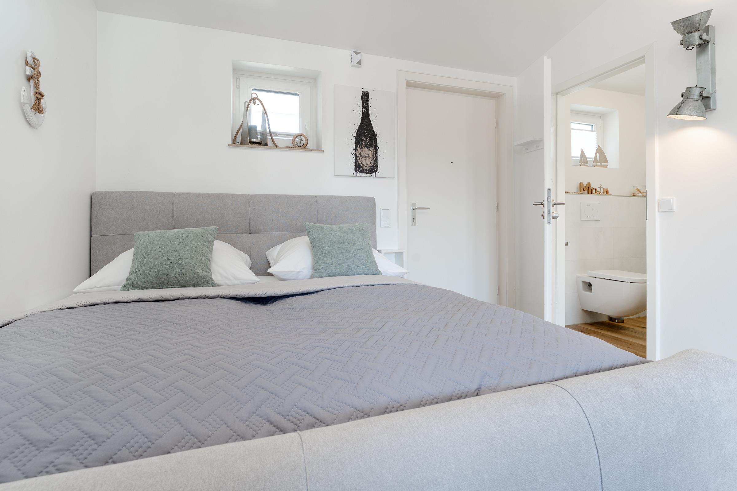 Das komfortables Schlafsofa bietet Raum für erholsame Nächte. Zusätzlich steht im Wohn-/ Schlafbereich ein gemütliches Doppelboxspringbett zur Verfügung.