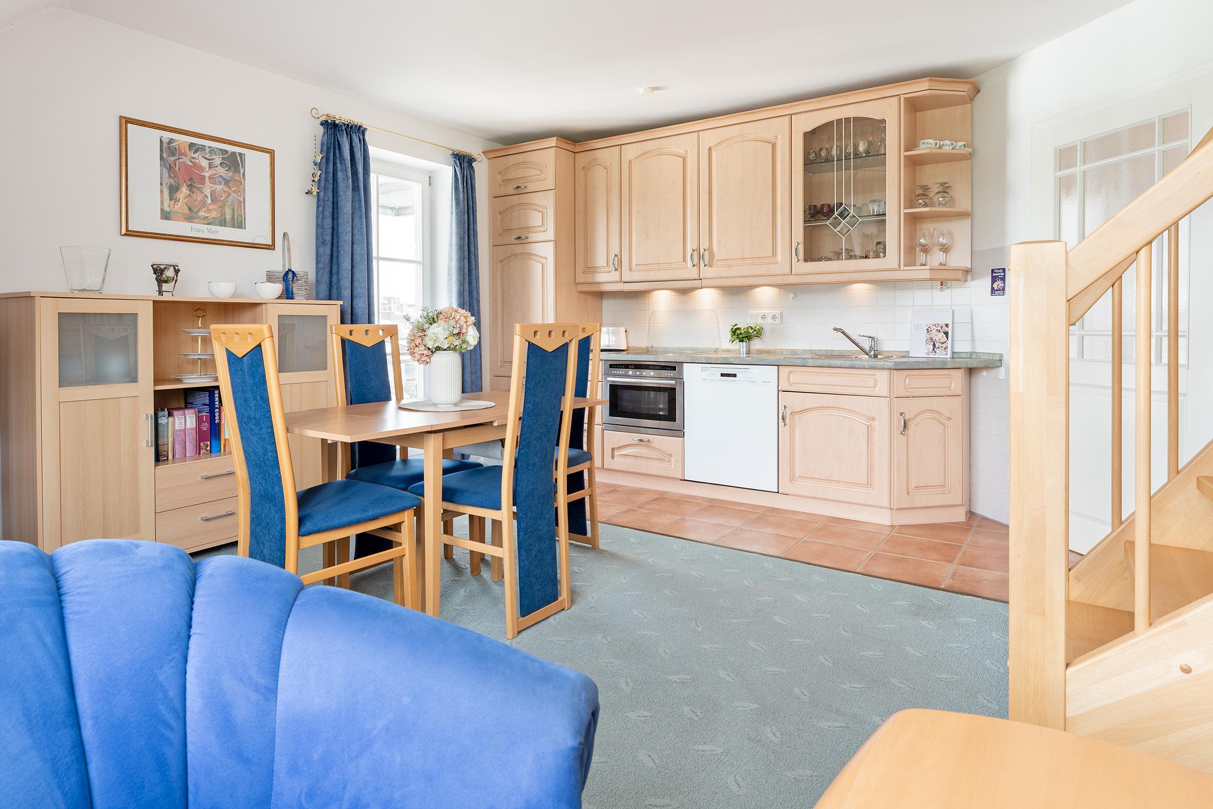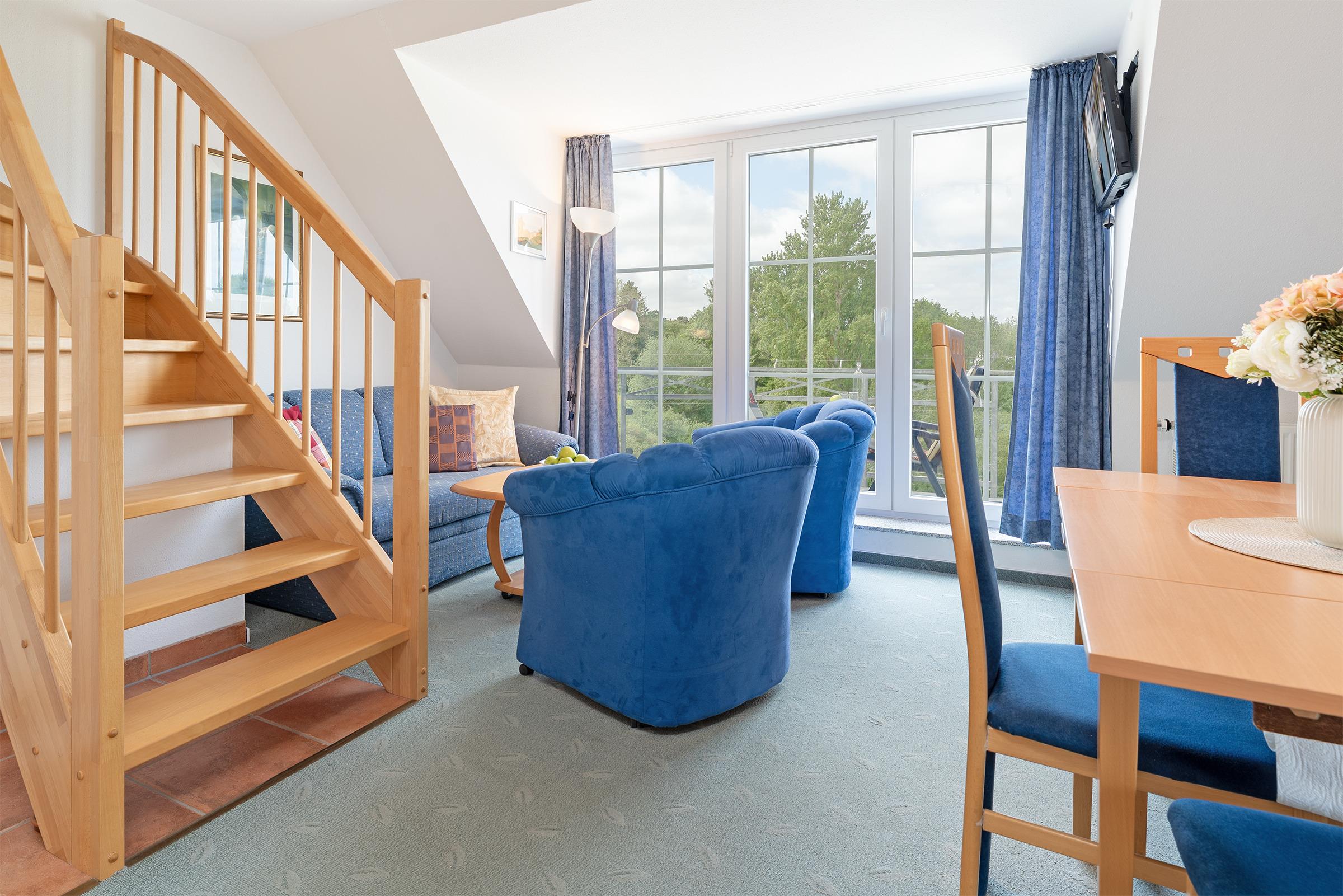 Diese stilvolle Ferienwohnung in der dritten Etage bietet Ihnen alles, was Sie für einen erholsamen Urlaub an der Ostsee benötigen – inklusive herrlichem Meerblick und großzügigem Balkon mit Südwestausrichtung. Im lichtdurchfluteten Wohnbereich erwarten Sie bequeme Sitzgelegenheiten, zwei TVs, CD-Player, Radio und WLAN. Große Fenster sorgen für eine freundliche Atmosphäre und erlauben Ihnen einen traumhaften Blick auf die Ostsee. Der angrenzende, überdachte Balkon lädt mit Gartenmöbeln zum Verweilen in der Sonne ein – perfekt für entspannte Stunden mit einem guten Buch. Die offene Küche ist bestens ausgestattet mit Ceranherd, Backofen, Mikrowelle, Kühlschrank mit Gefrierfach, Kaffeemaschine, Wasserkocher, Toaster, Eierkocher und Mixer. Am Esstisch findet die ganze Familie Platz. Zwei separate Schlafzimmer garantieren ruhige Nächte – beide Schlafzimmer verfügen über Doppelbetten (140x200 cm und 180x200 cm). Im Badezimmer finden Sie eine Dusche mit Wanne, Waschbecken, WC, Kosmetikspiegel sowie Haartrockner.
