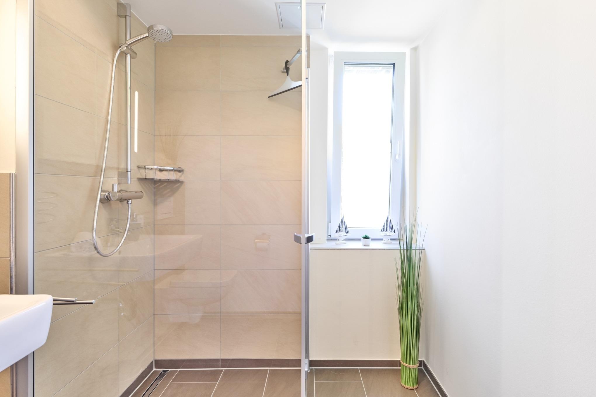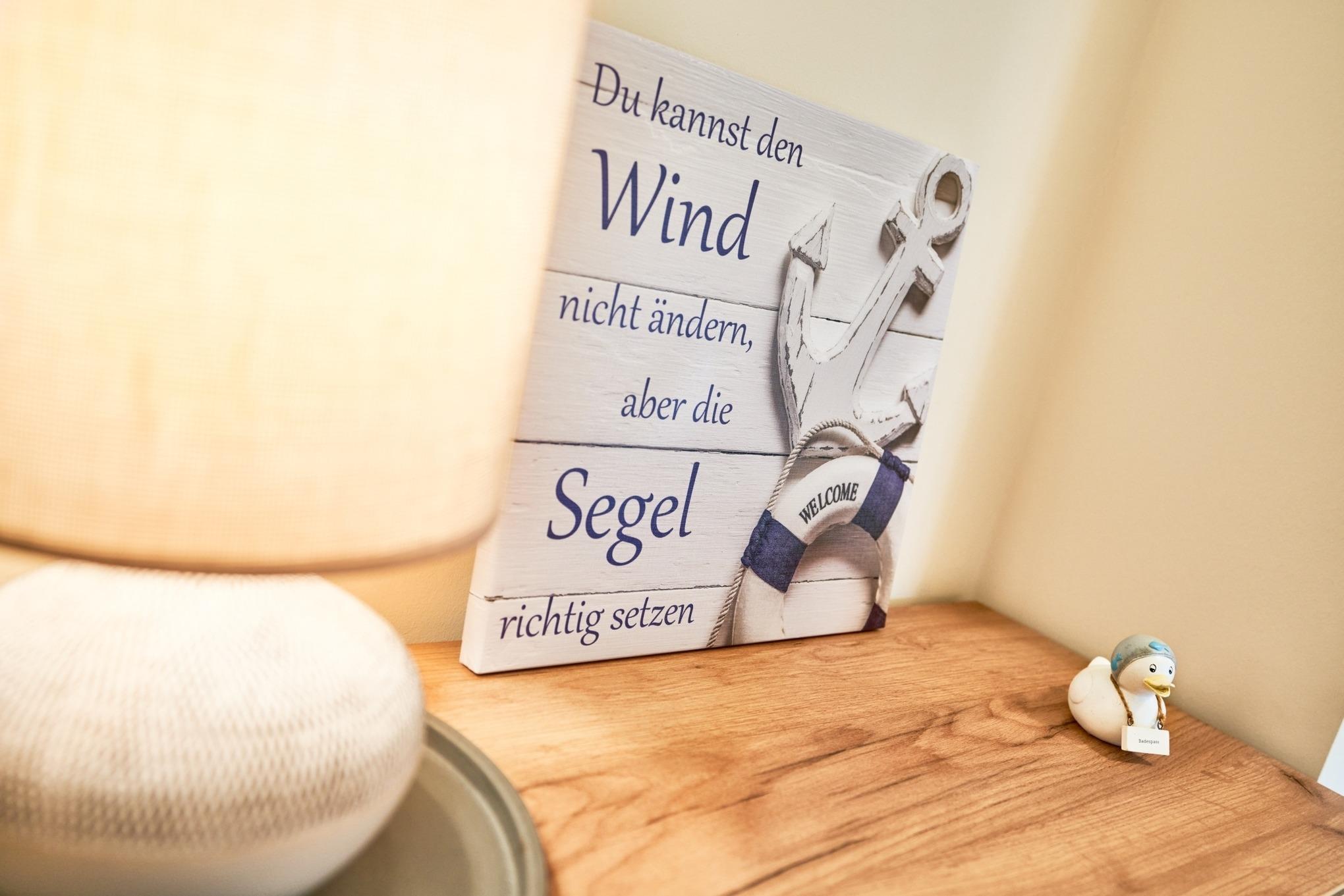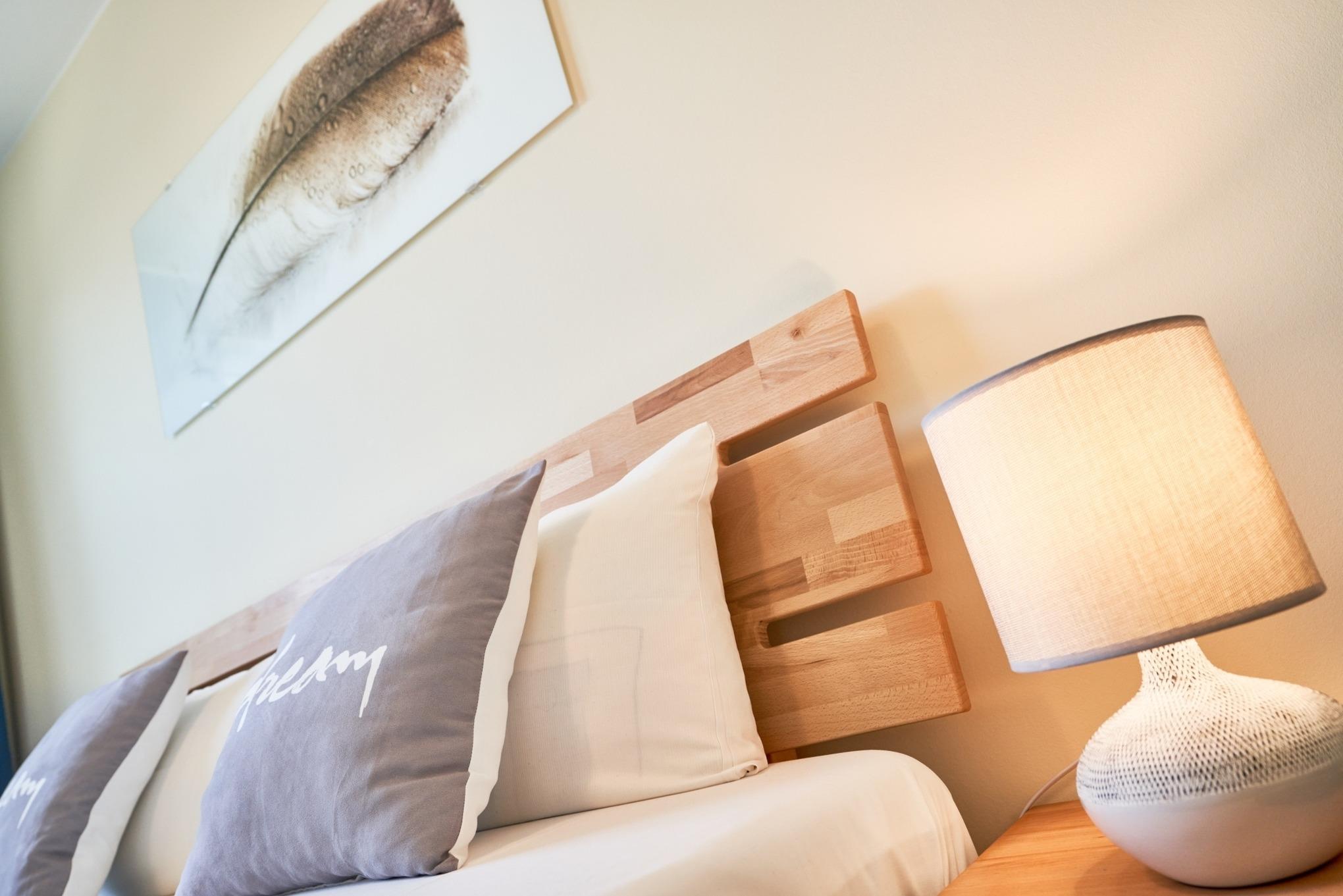 Die offene Küche ist komplett ausgestattet und lässt keine Wünsche offen. Der Wohn-Essbereich ist hell und freundlich gestaltet. Die bequeme Couch lässt sich in wenigen Handgriffen zu einem Schlafsofa umgestalten. Ein Flachbildschirm sowie eine Stereoanlage und freies WLAN sind selbstverständlich. Der Esstisch lädt zum gemütlichen Verweilen ein. Im Schlafzimmer steht ein bequemes Doppelbett mit Einzelmatratzen (0,90 x2,00m) sowie ein geräumiger Schrank. Auch im Schlafzimmer ist ein Flachbildfernseher für Sie angebracht. Das Badezimmer verfügt u. a. über eine großzügige, bodentiefe Dusche und einen zusätzlichen Handtuchheizkörper. Es gibt einen Abstellraum.