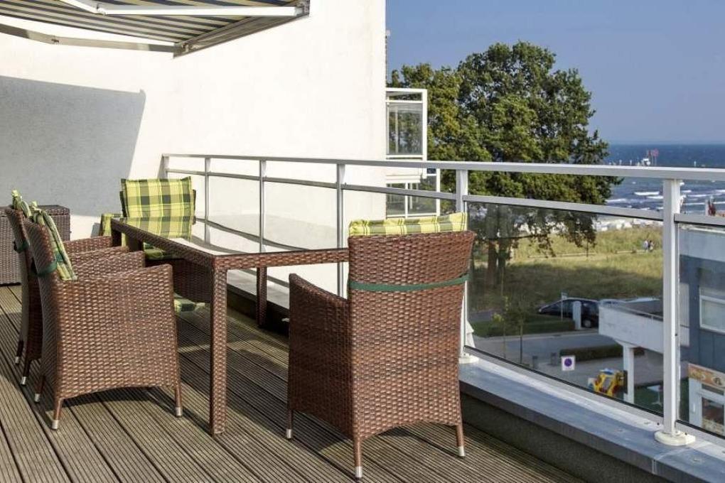 Helle Ferienwohnung mit 2 Dachterrassen, Teilmeerblick und Tiefgaragenstellplatz in Scharbeutz.