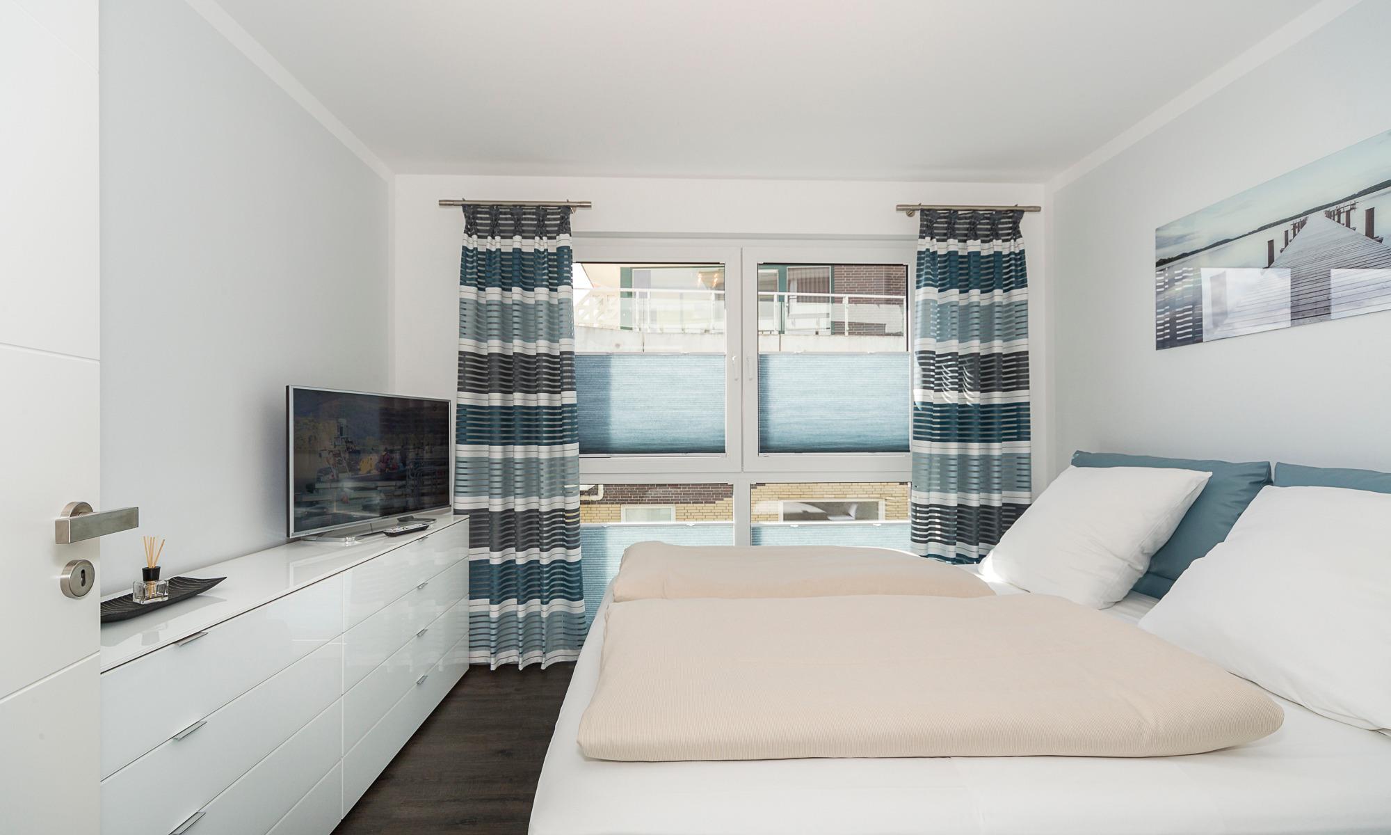 Alle Räume haben Außenrollläden. 100 % Meerblick. Neueste Smart-Home-Steuerung. Zwei Bäder, Whirlpool, 2 Schlafzimmer. Kostenloses WLAN, Kinderreisebett und Hochstuhl, Strandkorb gegenüber am Strand (saisonbedingt 15.05. – 15.09.). Diese Ferienwohnung ist mit viel Liebe ausgestattet, sie lässt Sie Ihren Urlaub genießen. Besonders für Allergiker ist diese Wohnung gut geeignet, da sie eine reine Nichtraucher-Ferienwohnung ist und Haustiere nicht erlaubt sind. Für Ihre Fahrräder ist Platz im großen Fahrradkeller im Hause. Eine Waschmaschine und ein Wäschetrockner befinden sich im Gemeinschaftskeller und können von allen Bewohnern kostenfrei benutzt werden; der Schlüssel ist bei Holm Ferienwohnungen im Büro erhältlich.