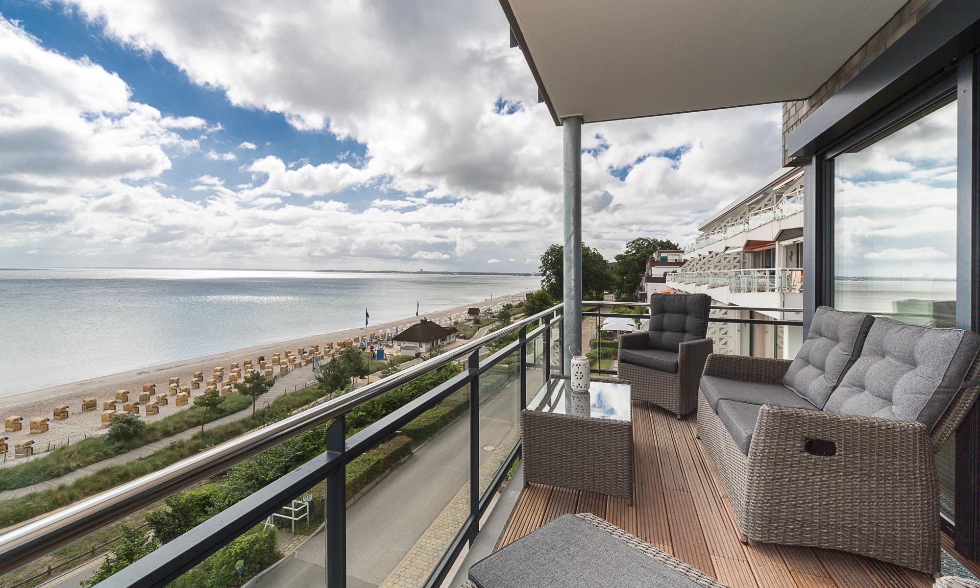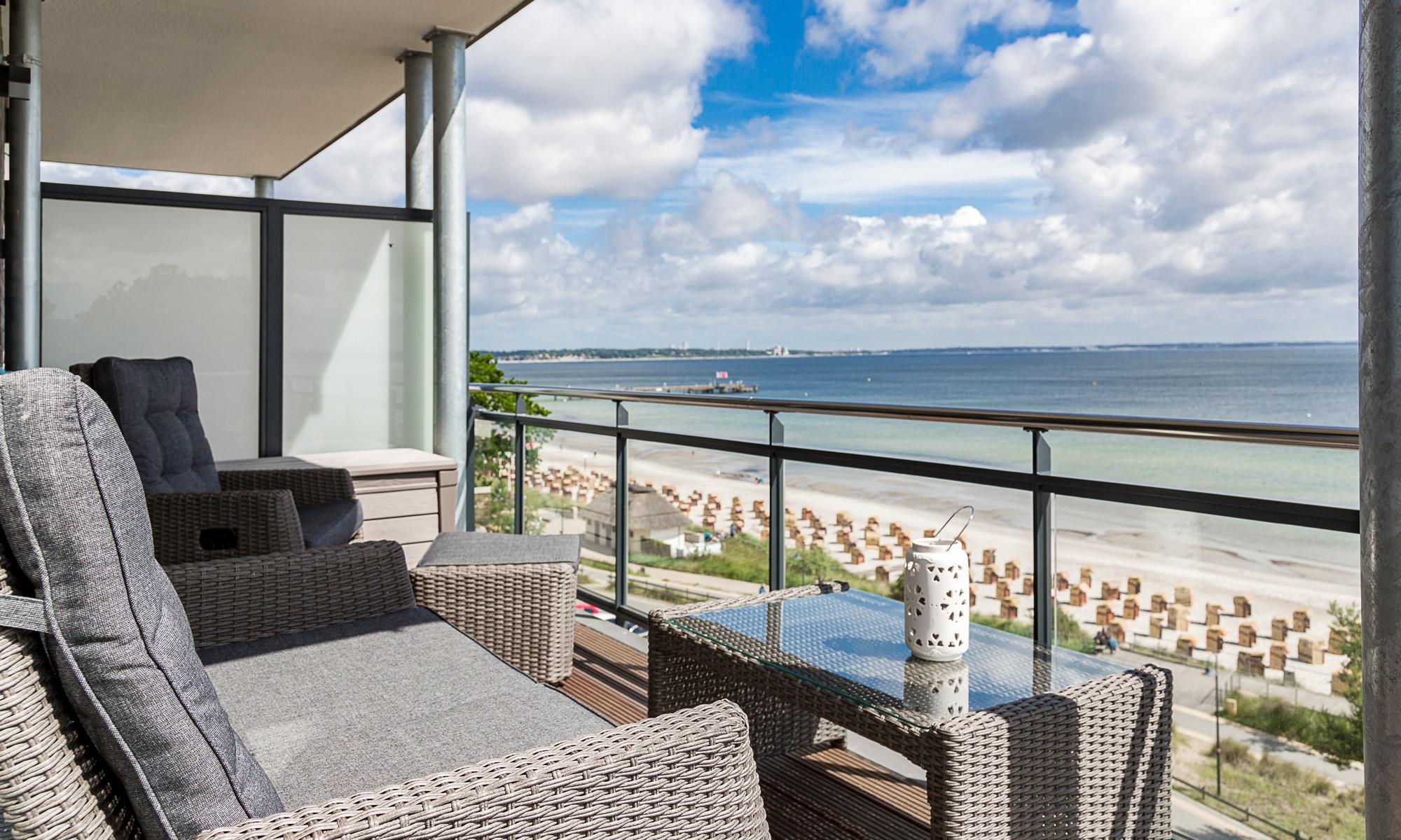 Exklusive Ferienwohnung in Scharbeutz mit 100 % Meerblick, Whirlpool und Balkon für entspannte Urlaubstage.