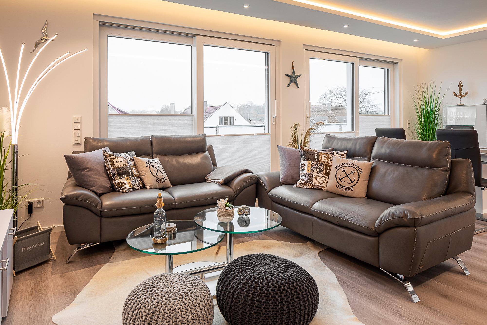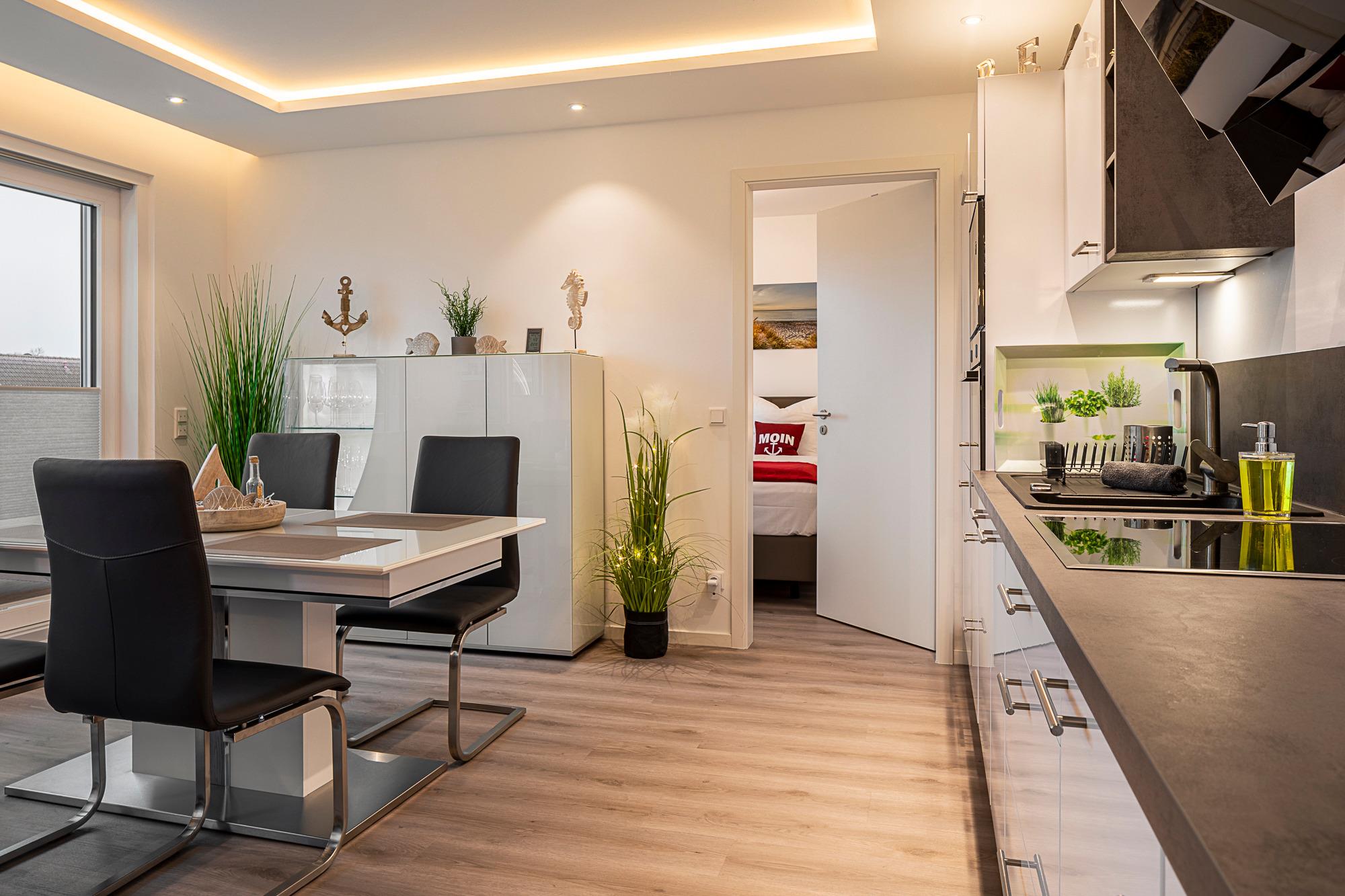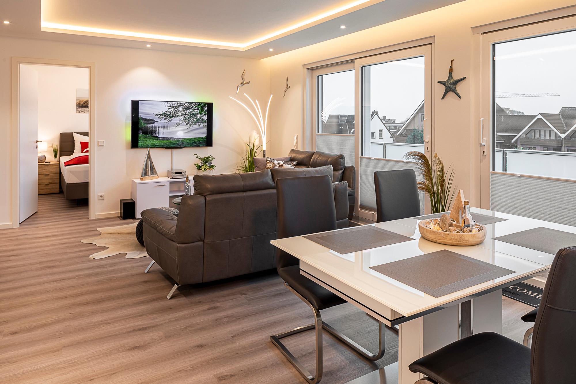 Moderne 3-Zimmer-Ferienwohnung mit Dachterrasse und Strandkorb in Scharbeutz für bis zu 4 Gäste.