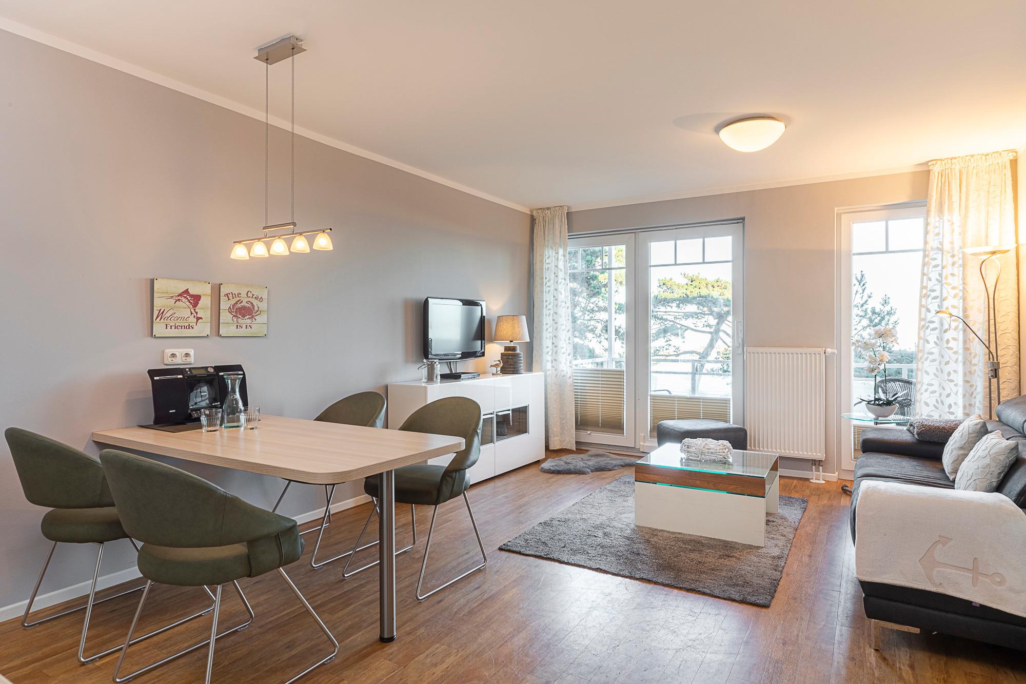 2-Zimmer-Ferienwohnung, ca. 56 m², Balkon mit Ostseeblick, PKW-Stellplatz, Fahrstuhl, für 2 Personen.